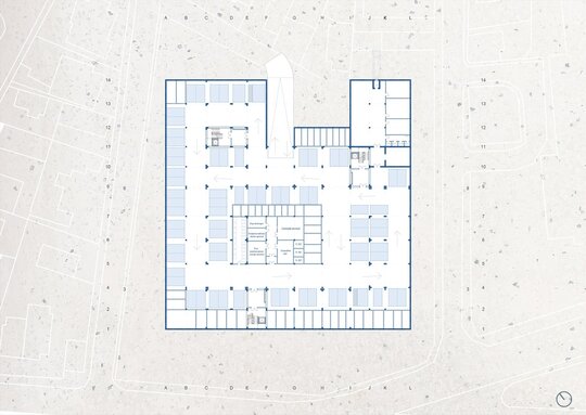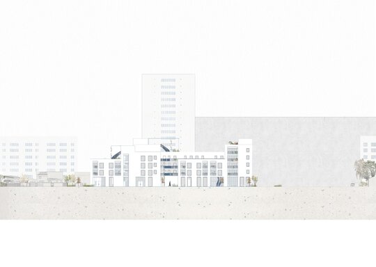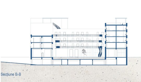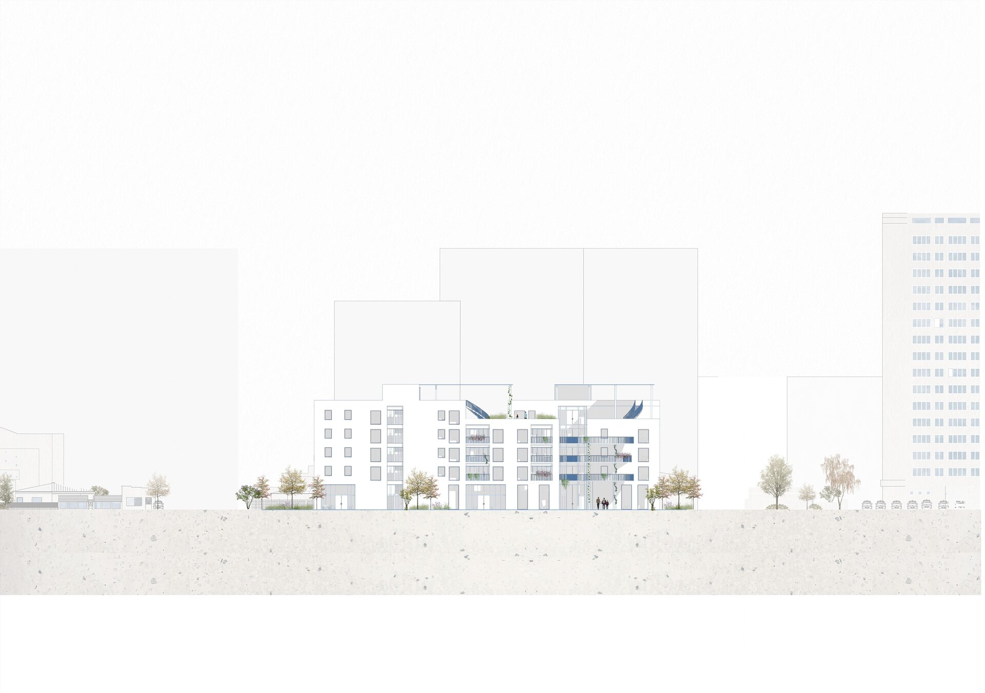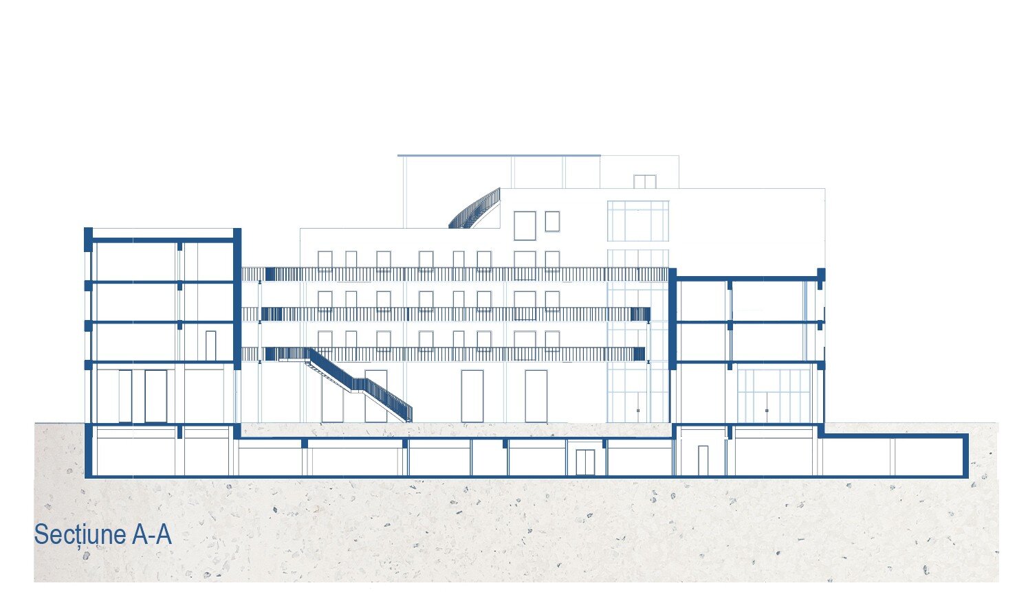 Părțile cele mai expuse ale parterului înalt, cele de pe străzile Toporaşi şi Ştefan Vodă, sunt oferite întregii populații, având funcțiuni publice, cum ar fi o creşă, o florărie sau un ateller creativ. Odată ce intri în profunzimea sitului, funcțiunile parterului devin destinate comunității, locuri mai intime, anume o bucătărie comună, un centru comunitar şi un spațiu de studiu.