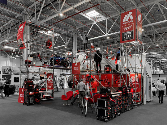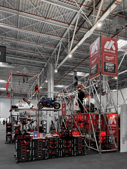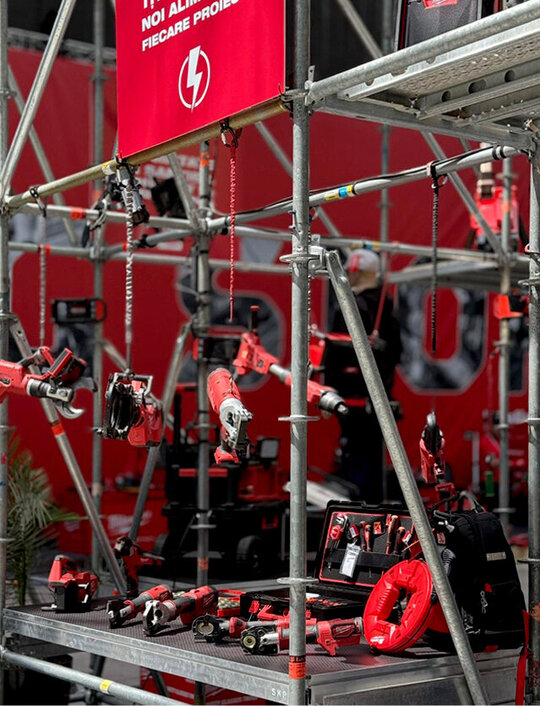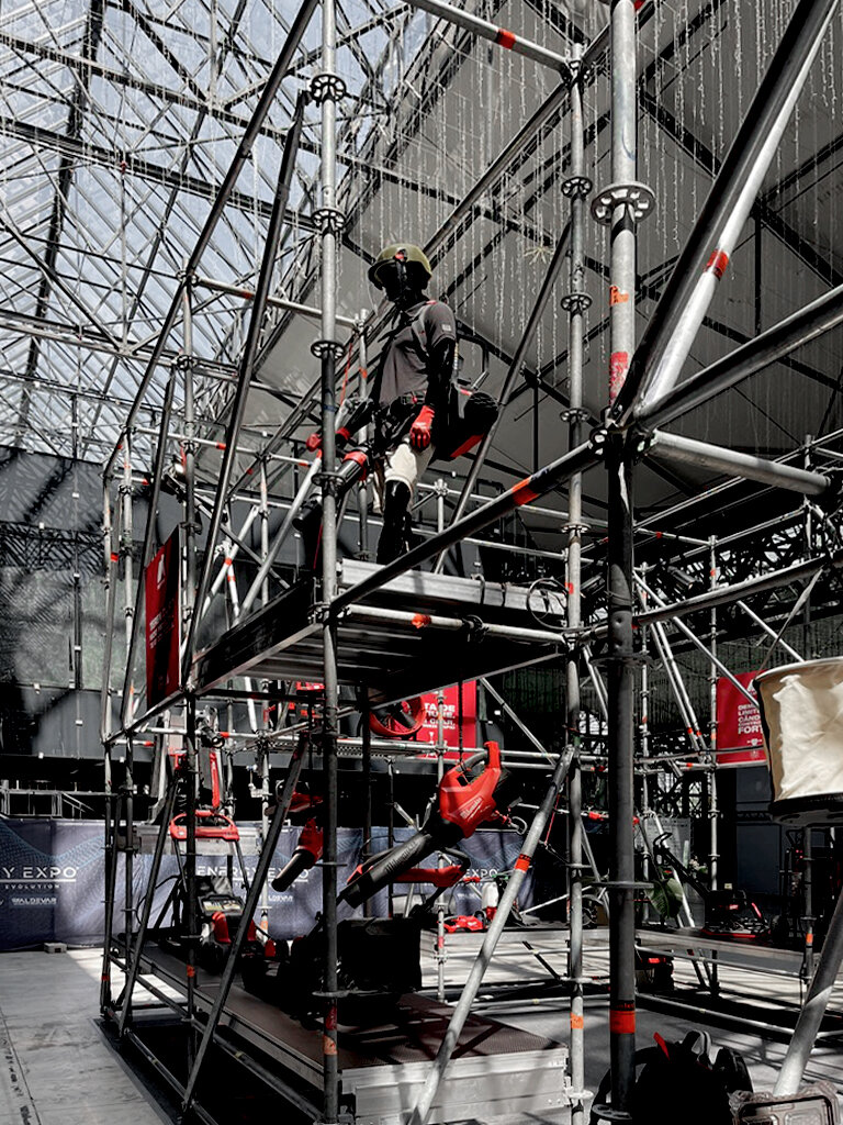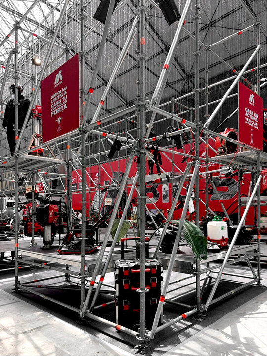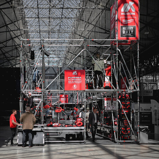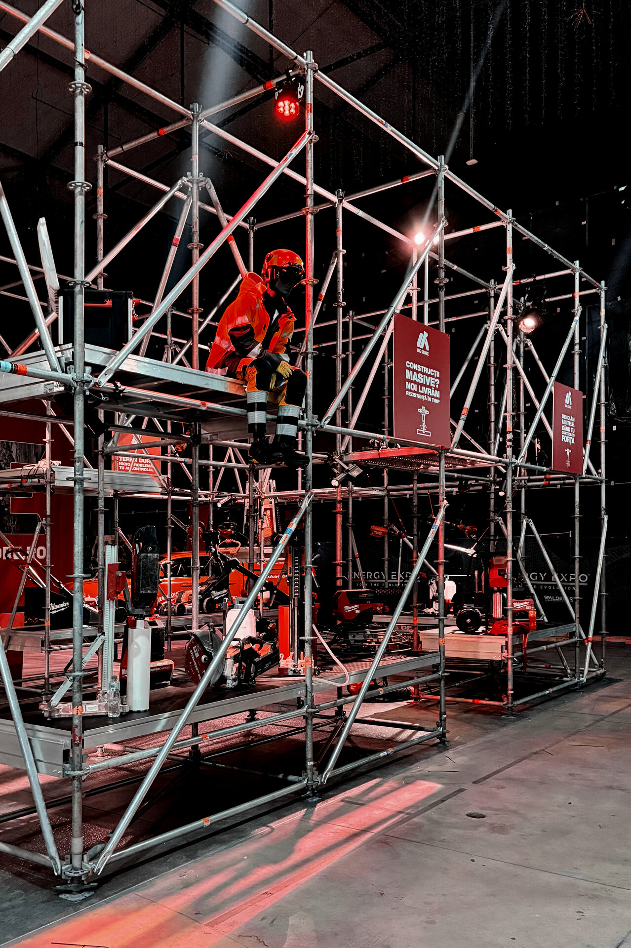 Suport de schelă pentru festival în construcții. La târguri de tehnologie creativă.