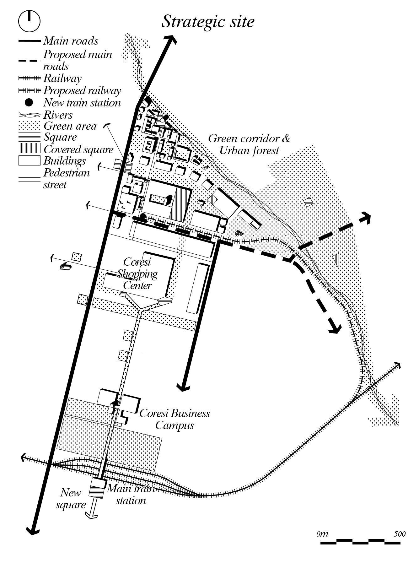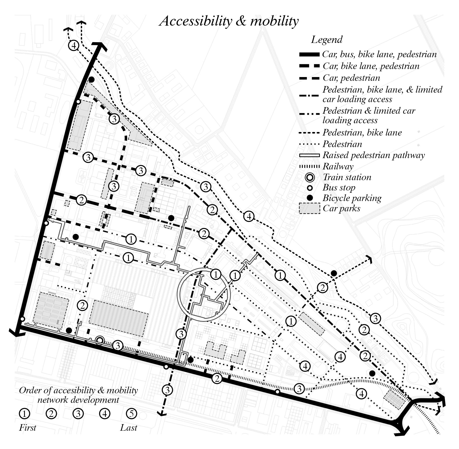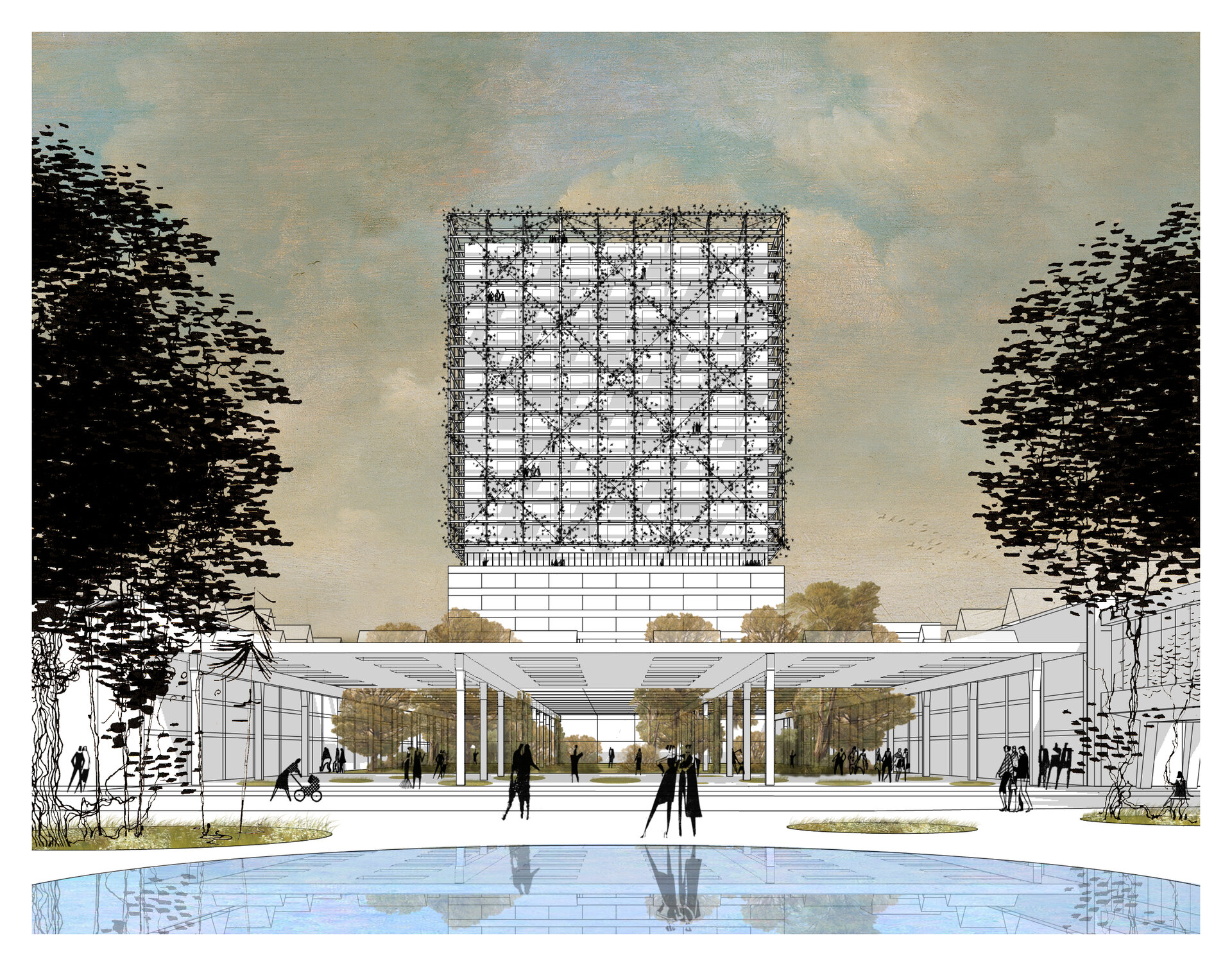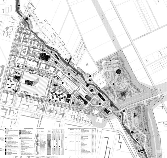 Urmele fostului design al spațiului public au fost readuse la viață într-un colaj de istorii, șinele au devenit poteci, noile pavilioane presărate în peisaj creează noduri de activitate și puncte de interes, combinând trecutul cu prezentul, generând un cadru pentru viitor. Pentru un design incluziv în natură, a fost propusă o viziune holistică de combinare a arhitecturii cu peisajul, clădirile ca parte a ecosistemului urban. Fiecare clădire poate prelua rolul unei stânci, al unui deal împădurit, al unui câmp sau chiar al unei păduri, în funcție de înălțimea, tipul sau fațada sa.