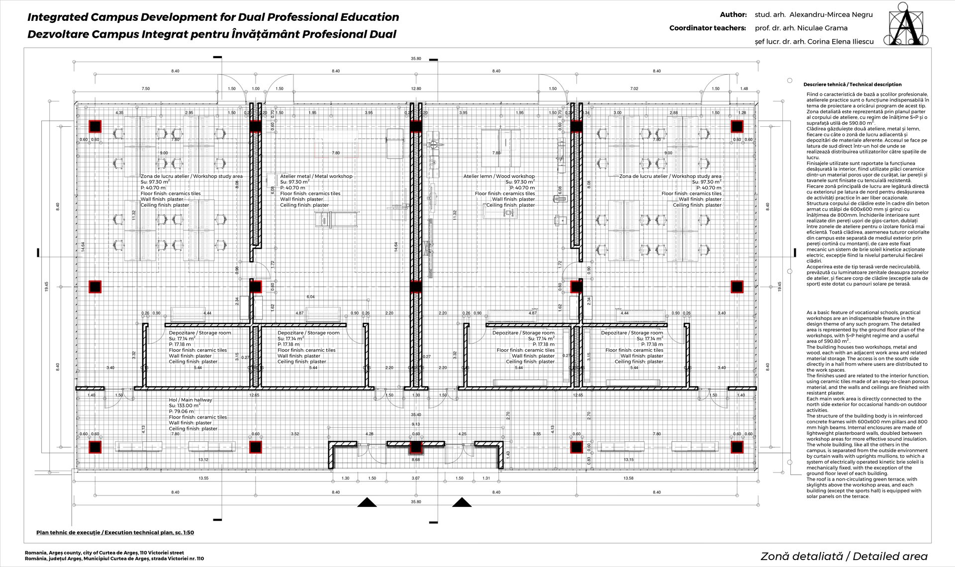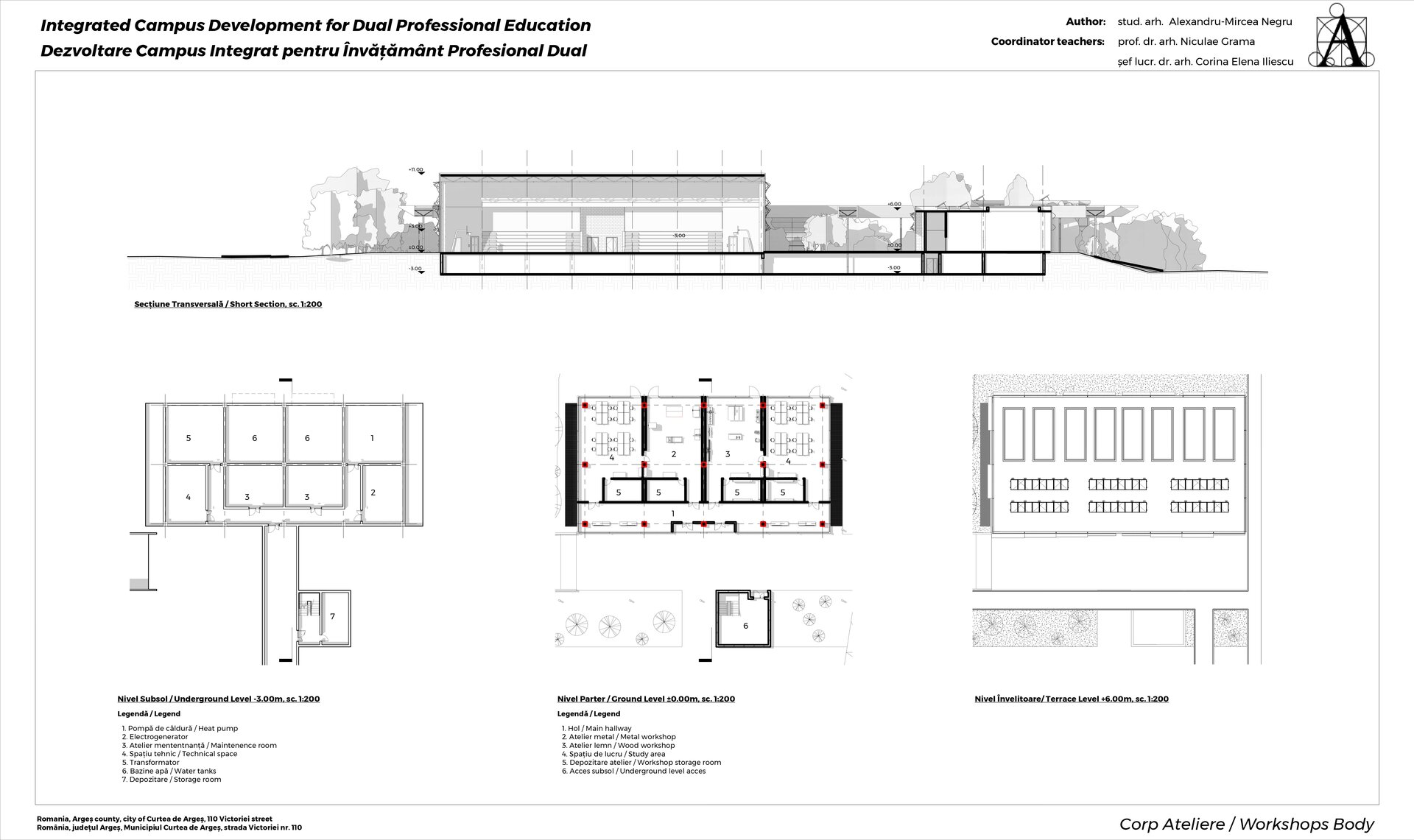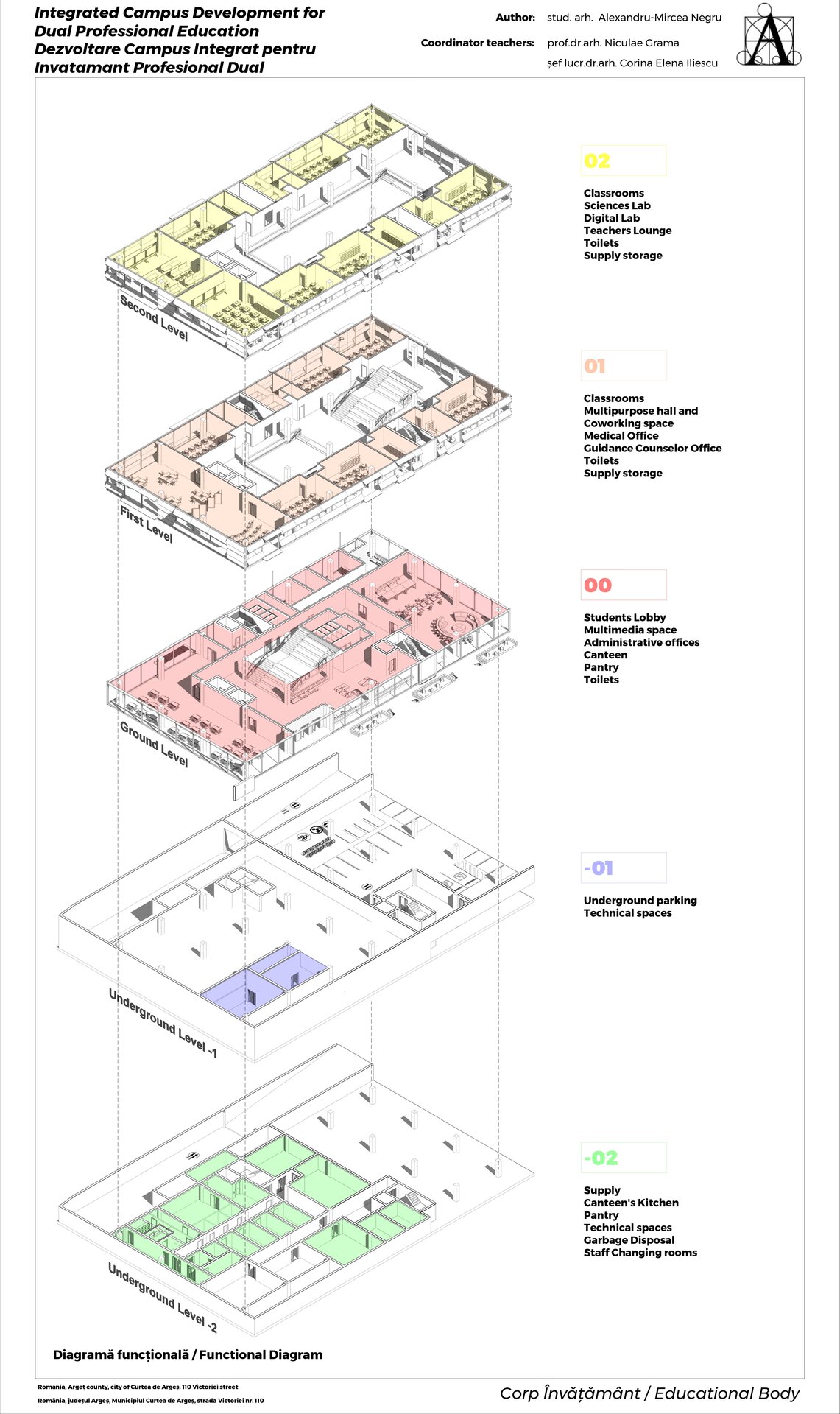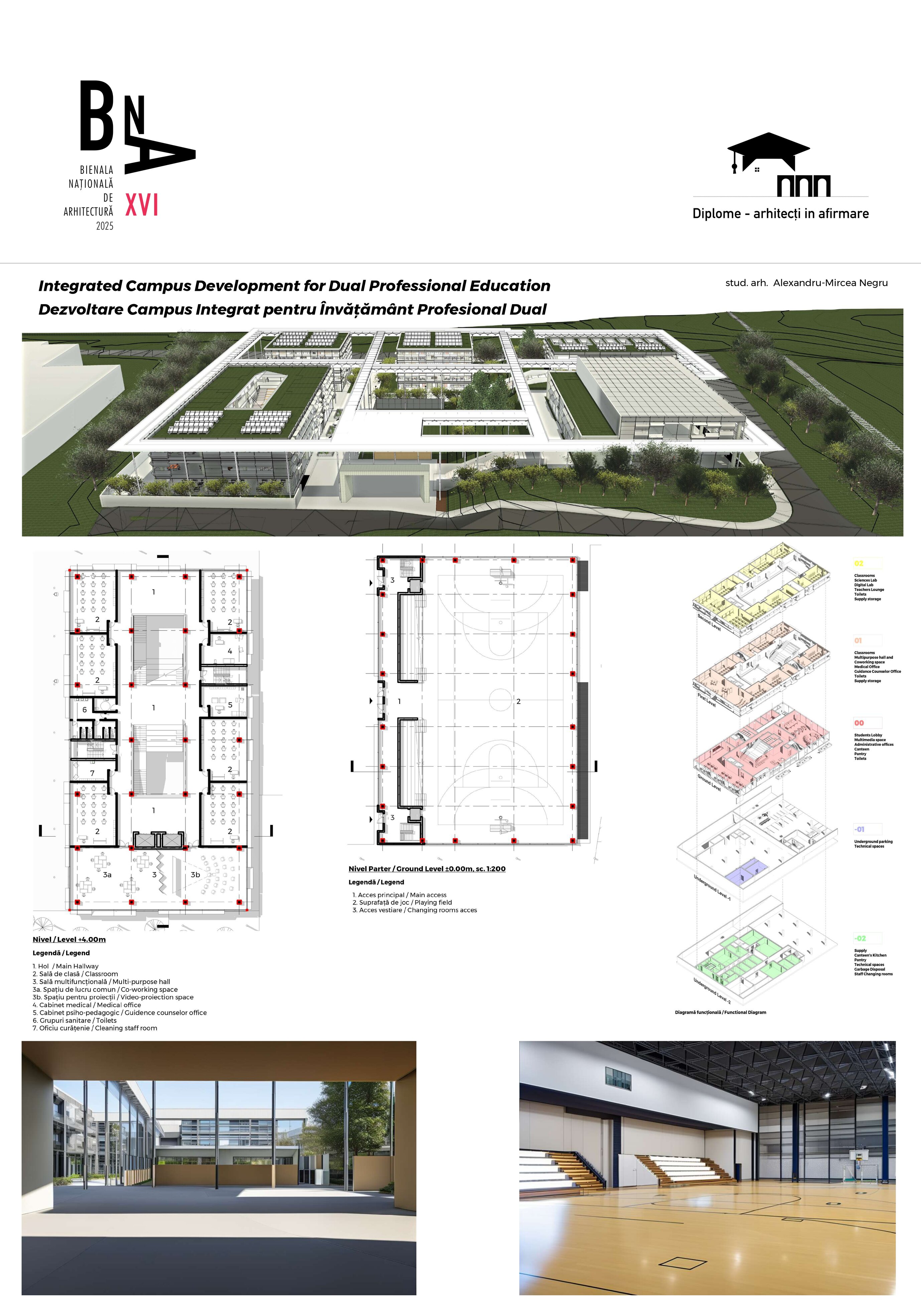 Infrastructura campusului este proiectată să fie accesibilă pentru toți elevii, inclusiv pentru cei cu dizabilități, și să încurajeze mobilitatea pietonală și ciclismul. Acest proiect de diplomă nu este doar un exercițiu arhitectural, ci și o viziune asupra viitorului învățământului profesional. Prin crearea unui spațiu educațional