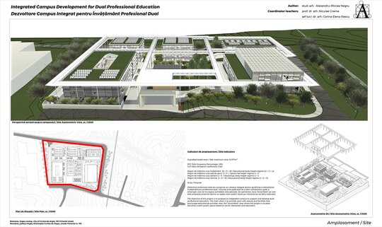 Proiectul propune crearea unui campus integrat pentru învățământul profesional dual, destinat pregătirii practice și teoretice a elevilor în diverse meserii. Conceptul central al acestui campus este de a oferi un mediu educațional coerent și unitar, care să sprijine dezvoltarea profesională și personală a elevilor prin facilități moderne și funcționale.
