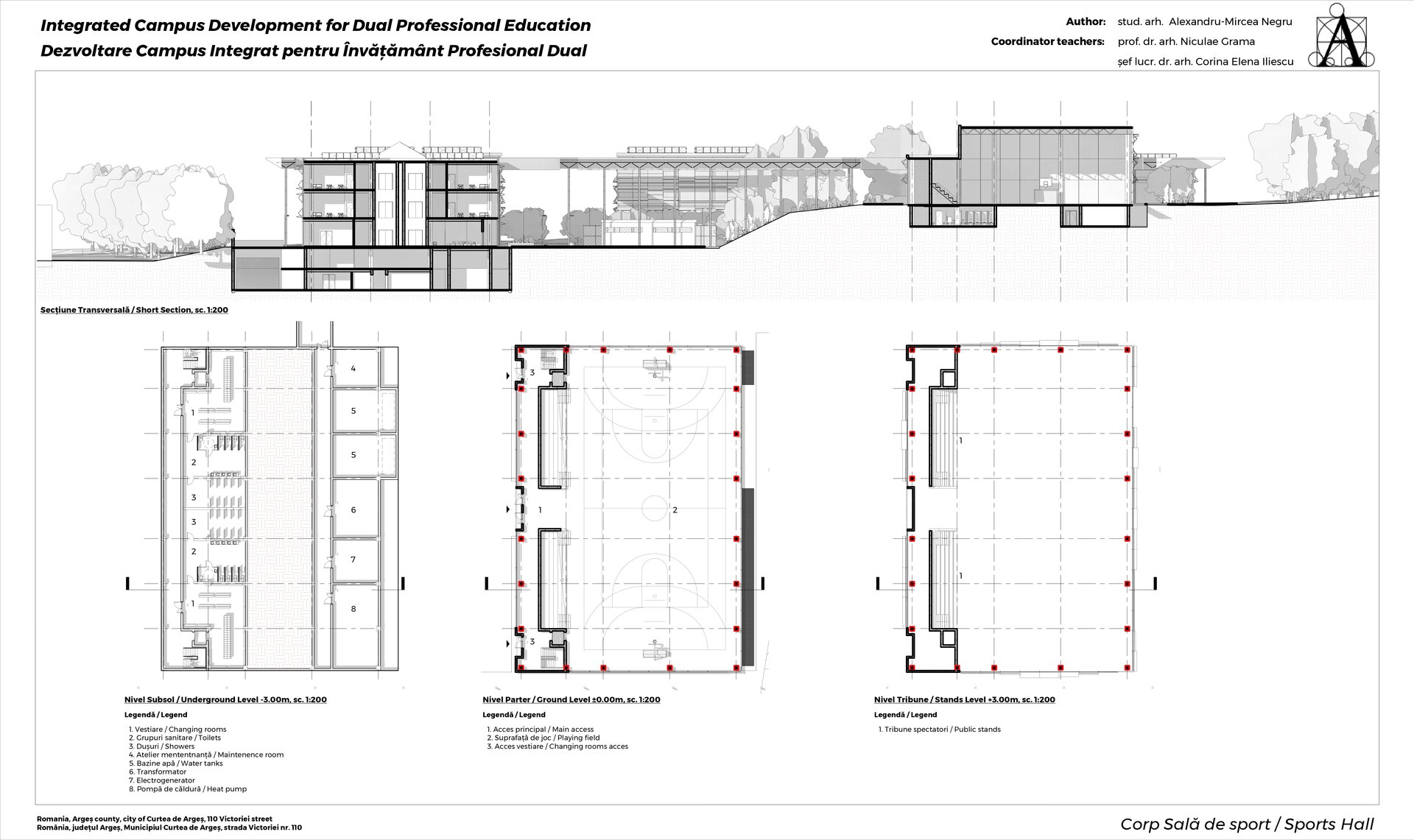 Funcțiuni: Terenuri de sport interioare, vestiare.