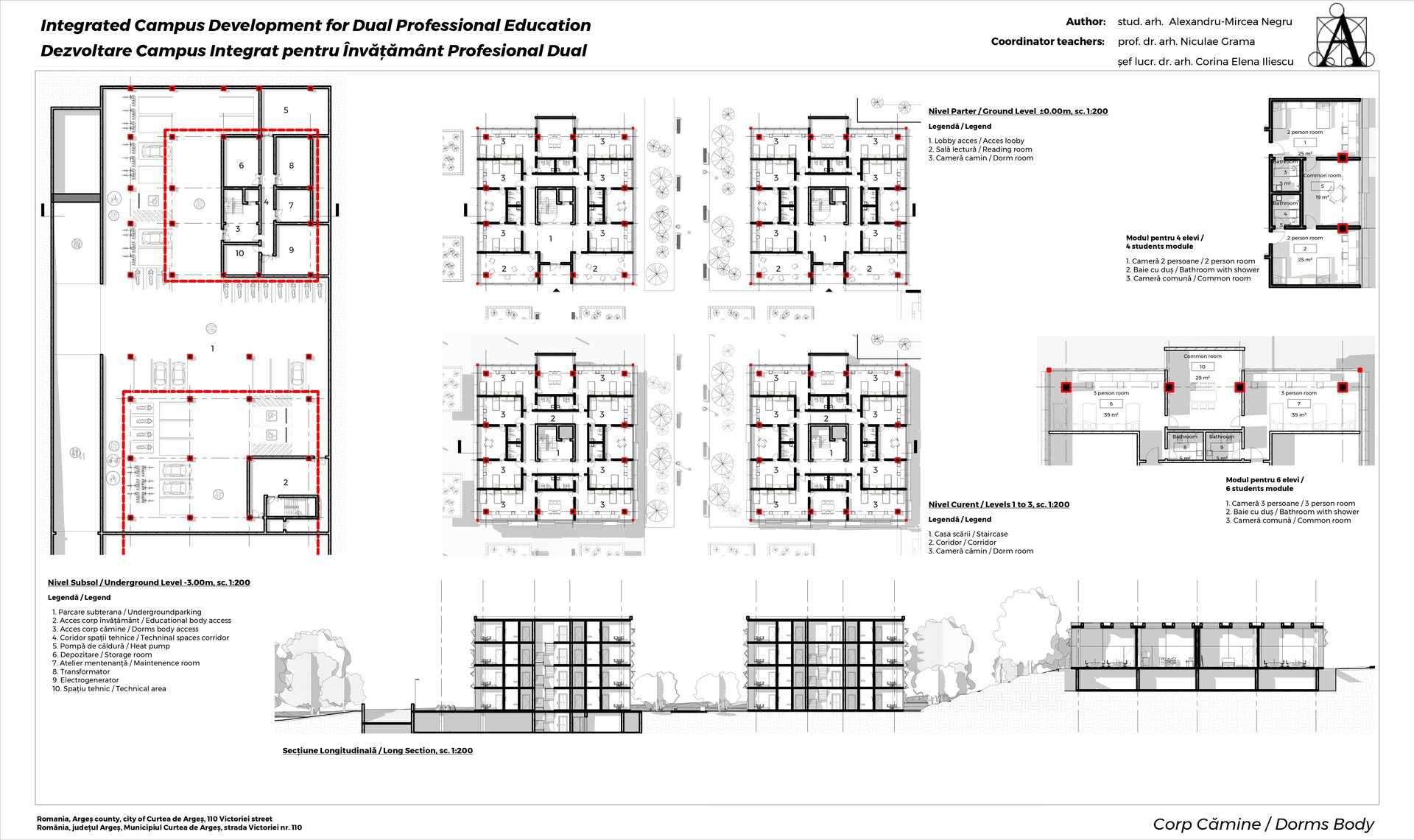 Funcțiuni: Dormitoare, săli de studiu, săli de recreere, spații comune.