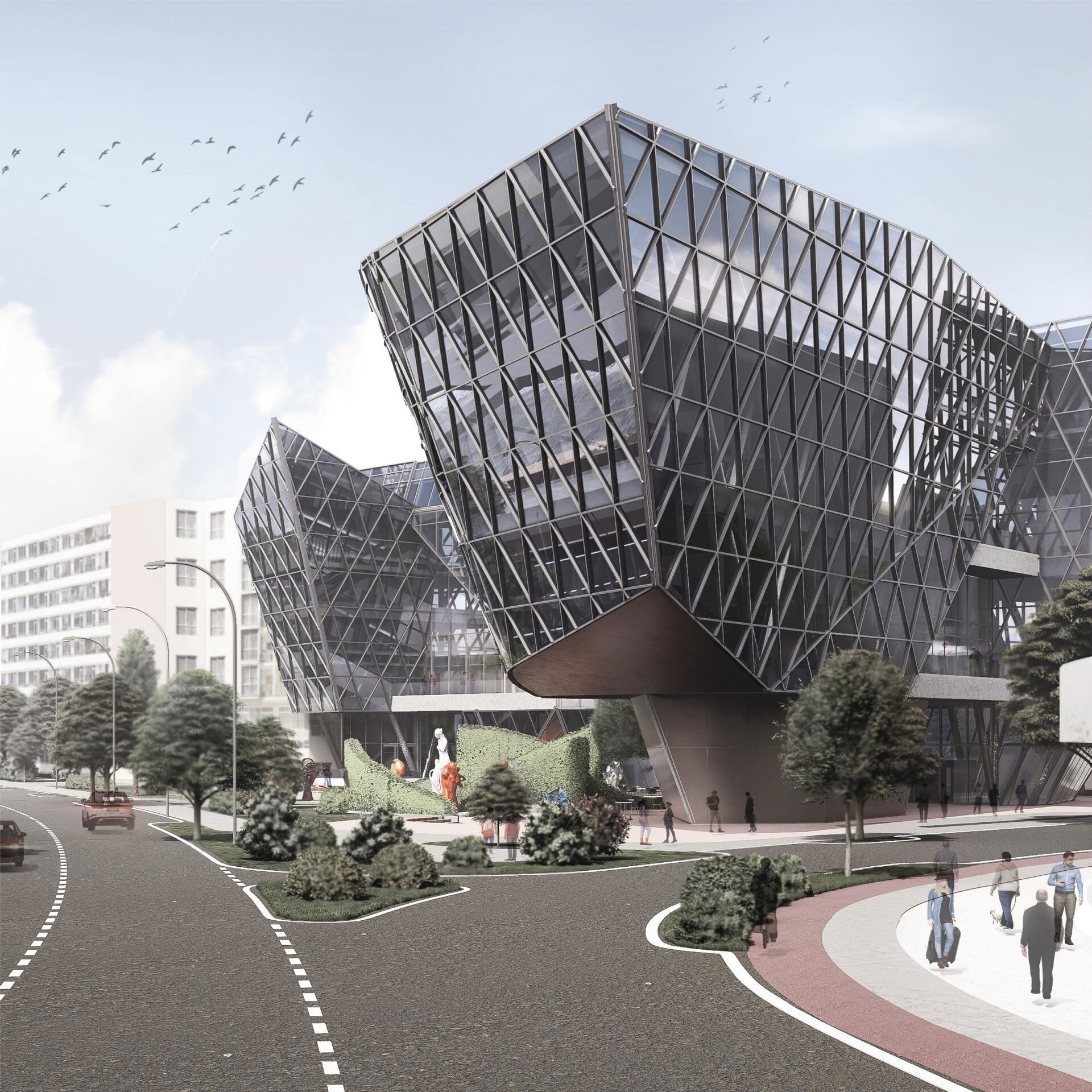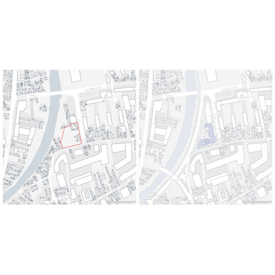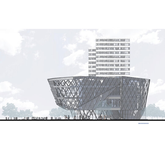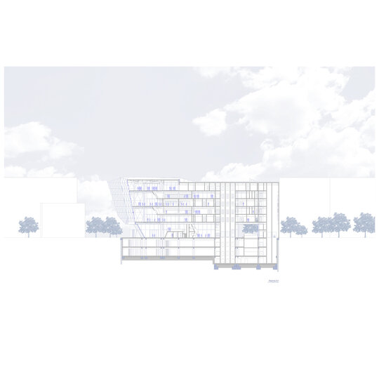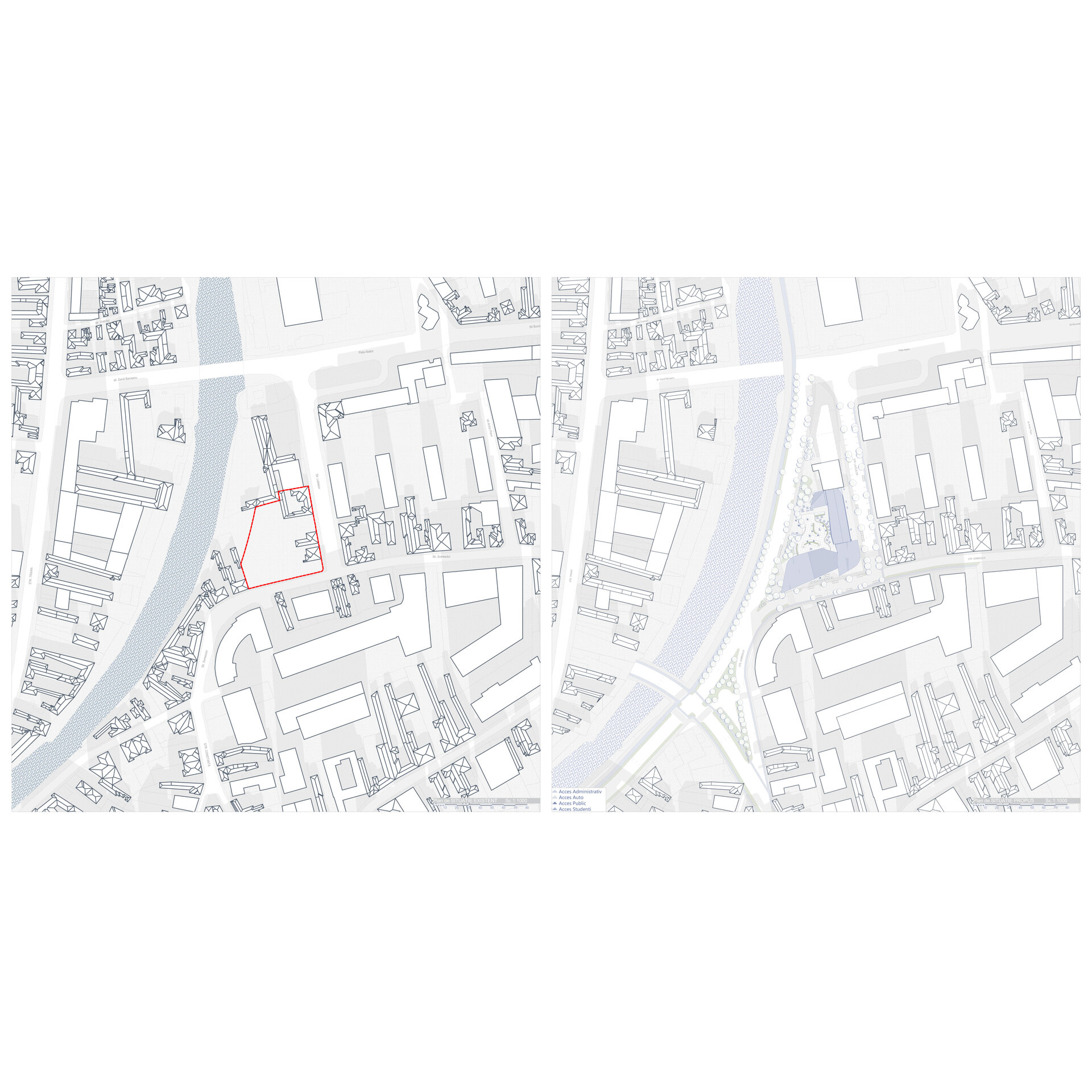 Situl se învecinează, la nord, cu o clădire cu regim de înălțime P+7 (aproximativ 25 m). Perimetral, este delimitat de străzi. Soluția de fundare prevede realizarea de piloți forați în proximitatea străzilor din partea estică, sudică și nordică, în apropierea clădirii vecine. În zona vestică, distanța dintre clădire și strada adiacentă permite utilizarea fundațiilor izolate.