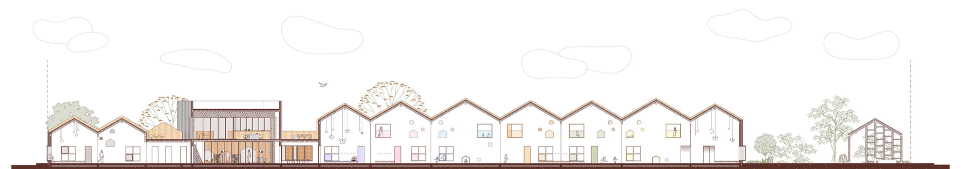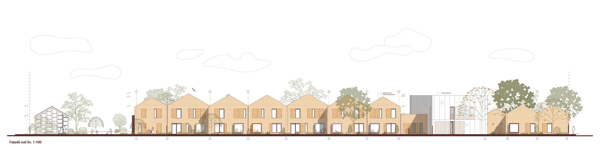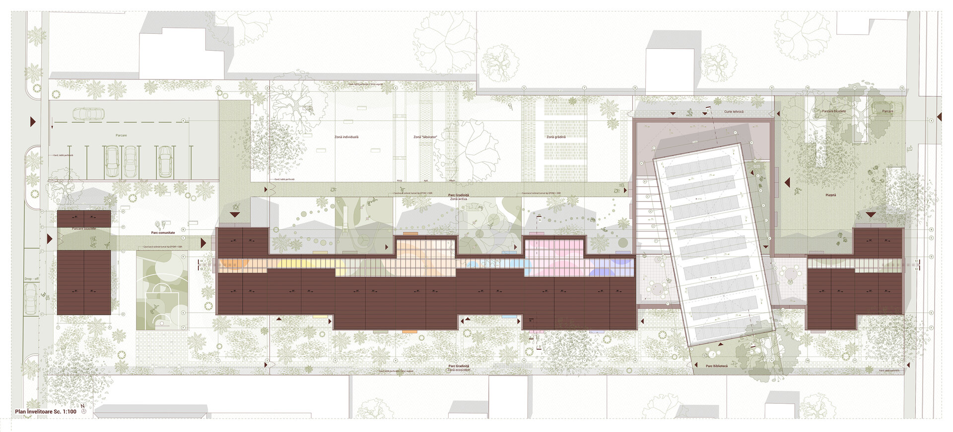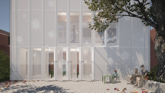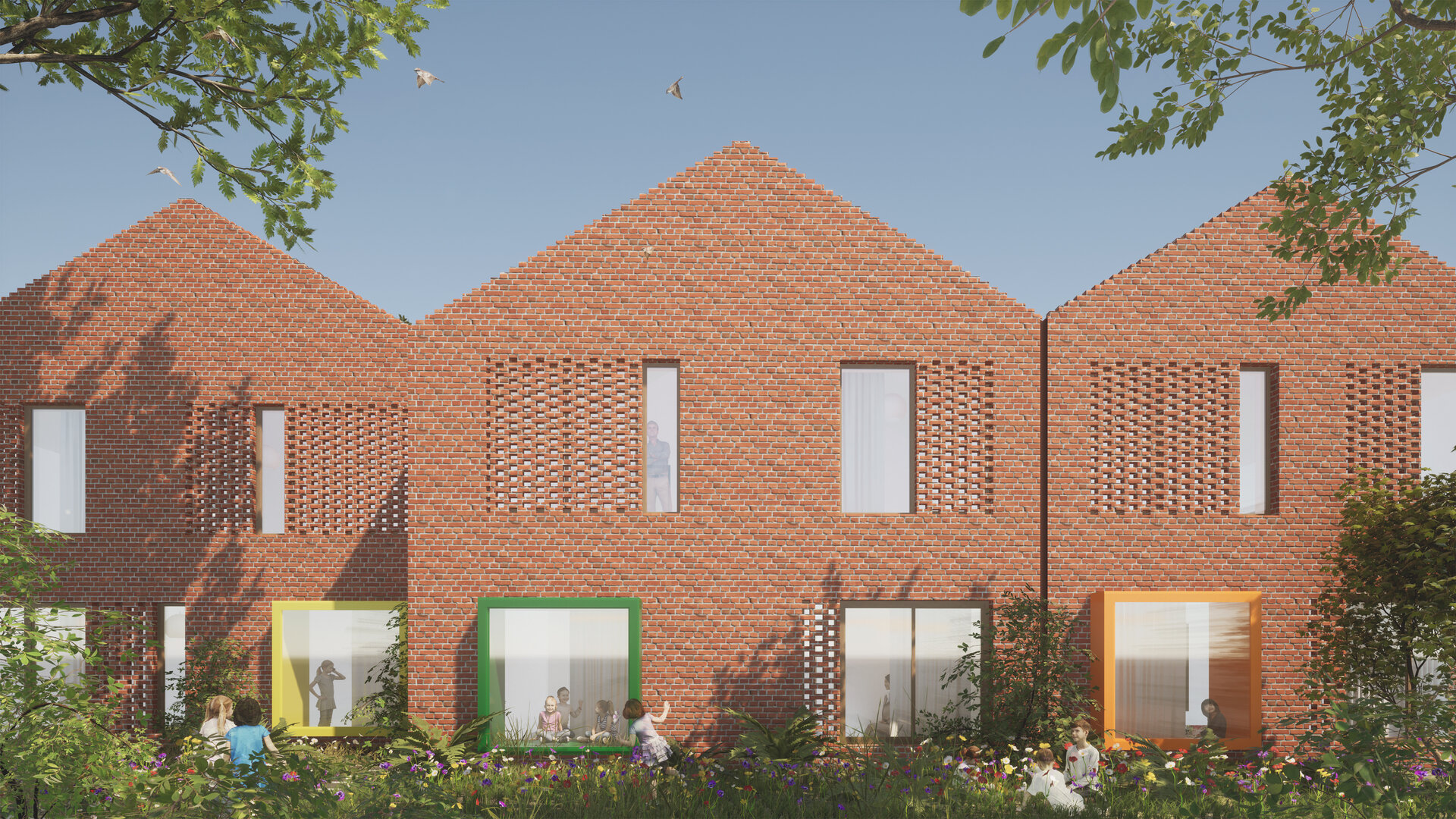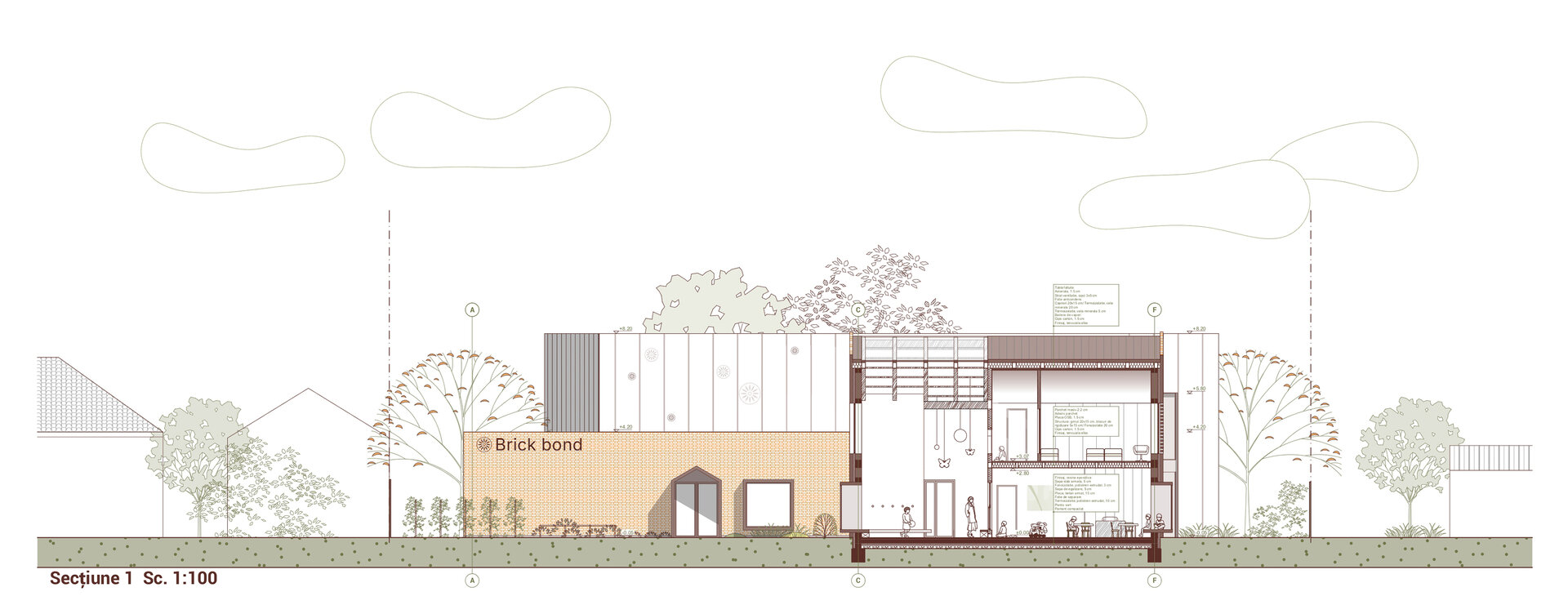 Proiectul Brick Bond răspunde pierderii identității și spiritului comunitar în cartierul Fratelia, Timișoara. Conceptul se bazează pe strada ca spațiu interior protejat, care unește oamenii. Sunt valorizate elemente locale precum geamul, băncuța și ușa casei, iar cărămida refolosită de la fostul cămin cultural devine un zid simbolic al continuității. Volumul rotit, care găzduiește biblioteca și spațiul multifuncțional, marchează istoria cartierului. Interiorul simplu, alb, oferă copiilor libertate de exprimare, în timp ce culoarea subliniază elementele-cheie, creând identitate pentru fiecare „căsuță”.