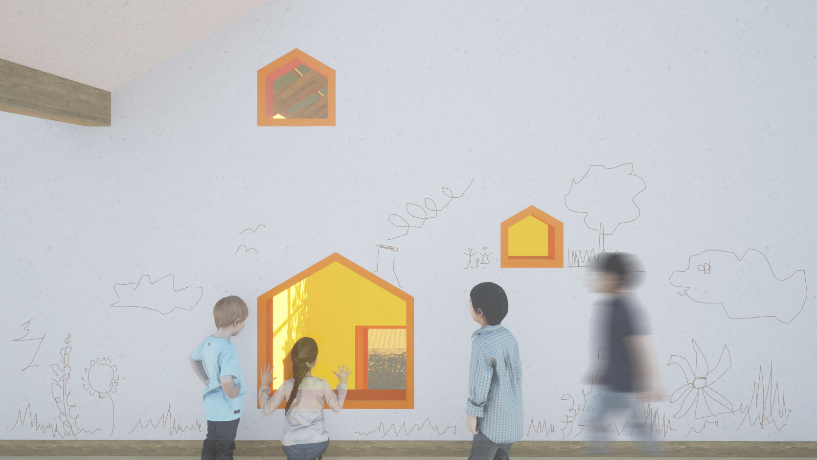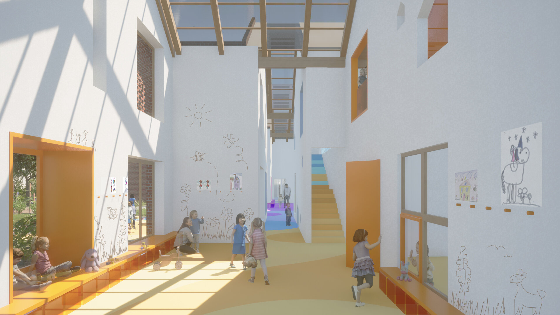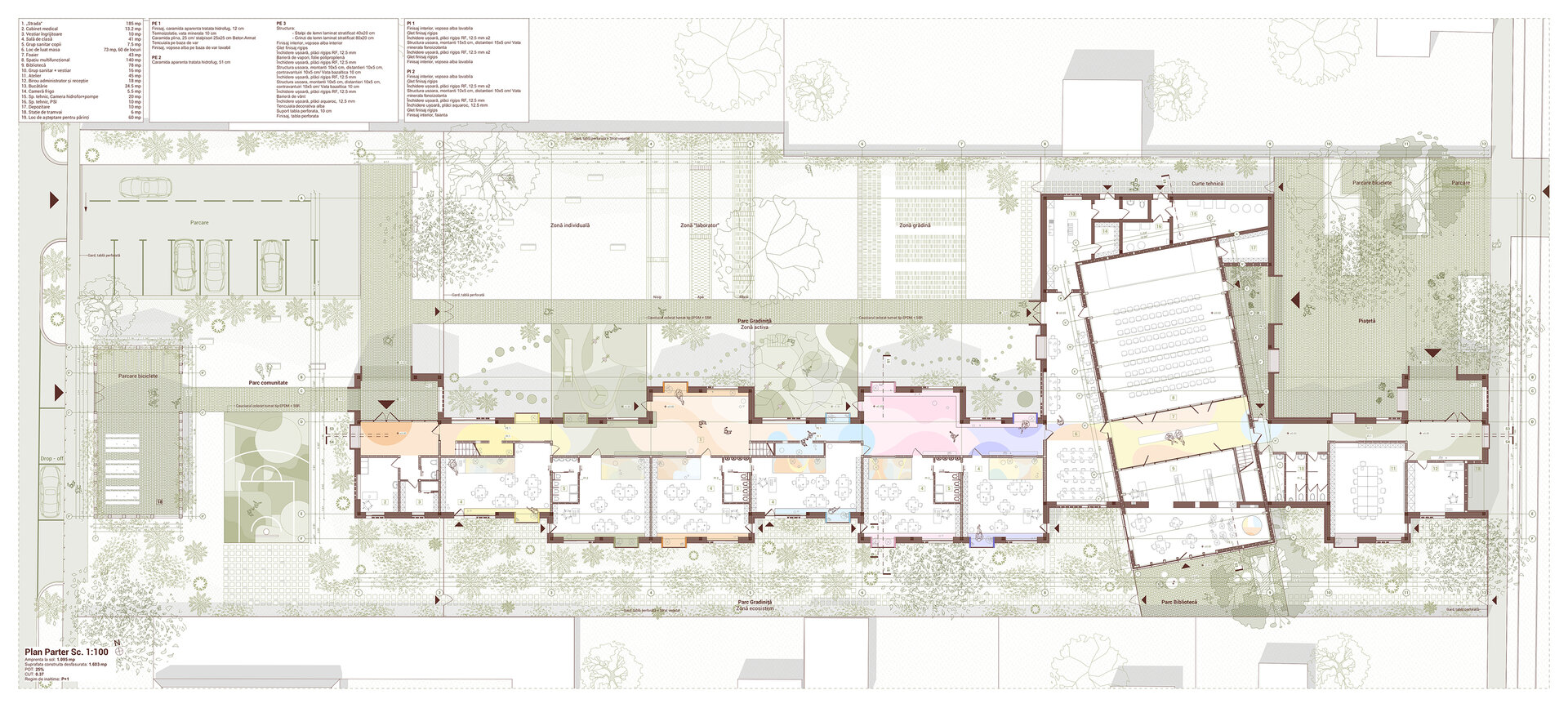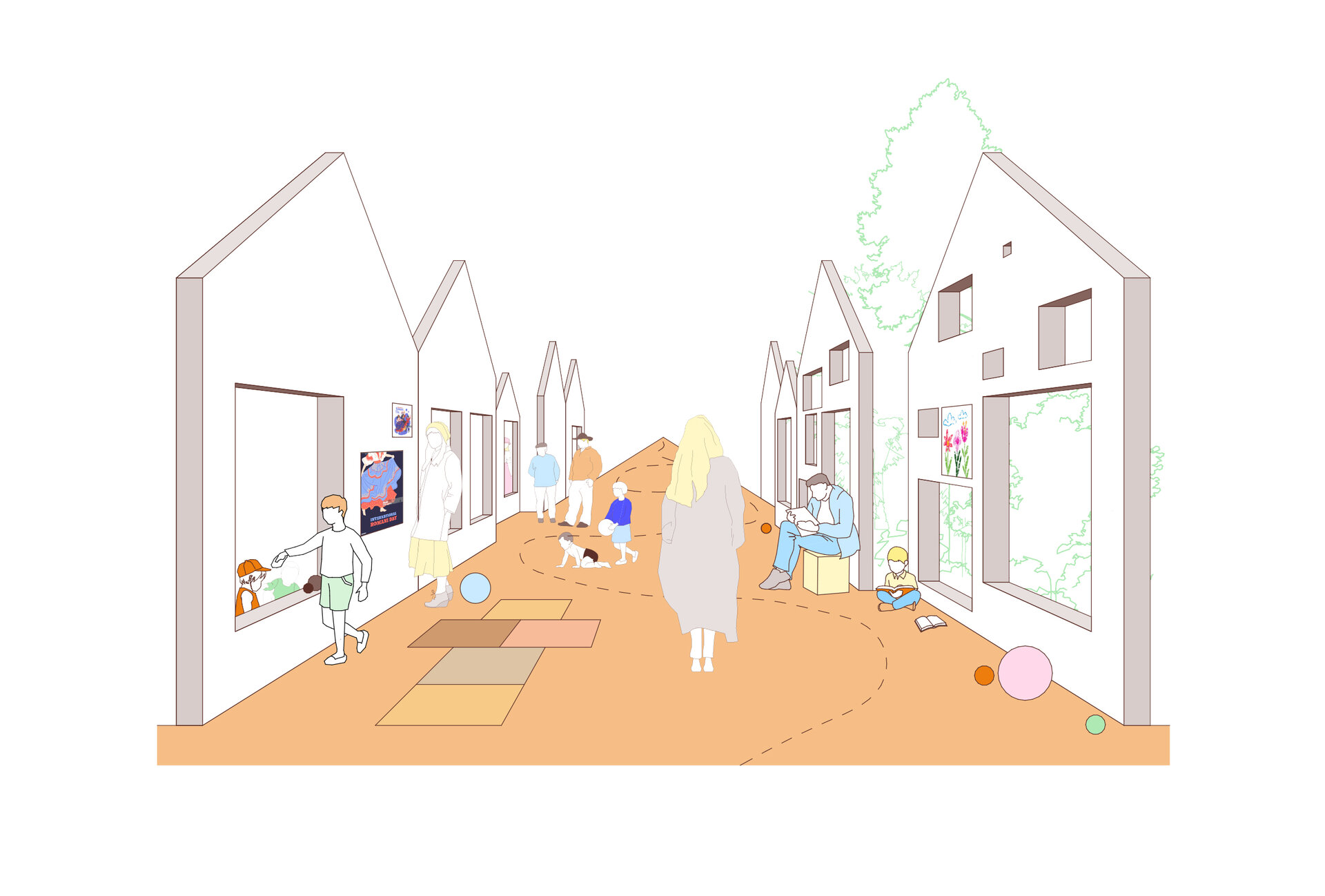 Proiectul Brick Bond răspunde pierderii identității și spiritului comunitar în cartierul Fratelia, Timișoara. Conceptul se bazează pe strada ca spațiu interior protejat, care unește oamenii. Sunt valorizate elemente locale precum geamul, băncuța și ușa casei, iar cărămida refolosită de la fostul cămin cultural devine un zid simbolic al continuității. Volumul rotit, care găzduiește biblioteca și spațiul multifuncțional, marchează istoria cartierului. Interiorul simplu, alb, oferă copiilor libertate de exprimare, în timp ce culoarea subliniază elementele-cheie, creând identitate pentru fiecare „căsuță”.