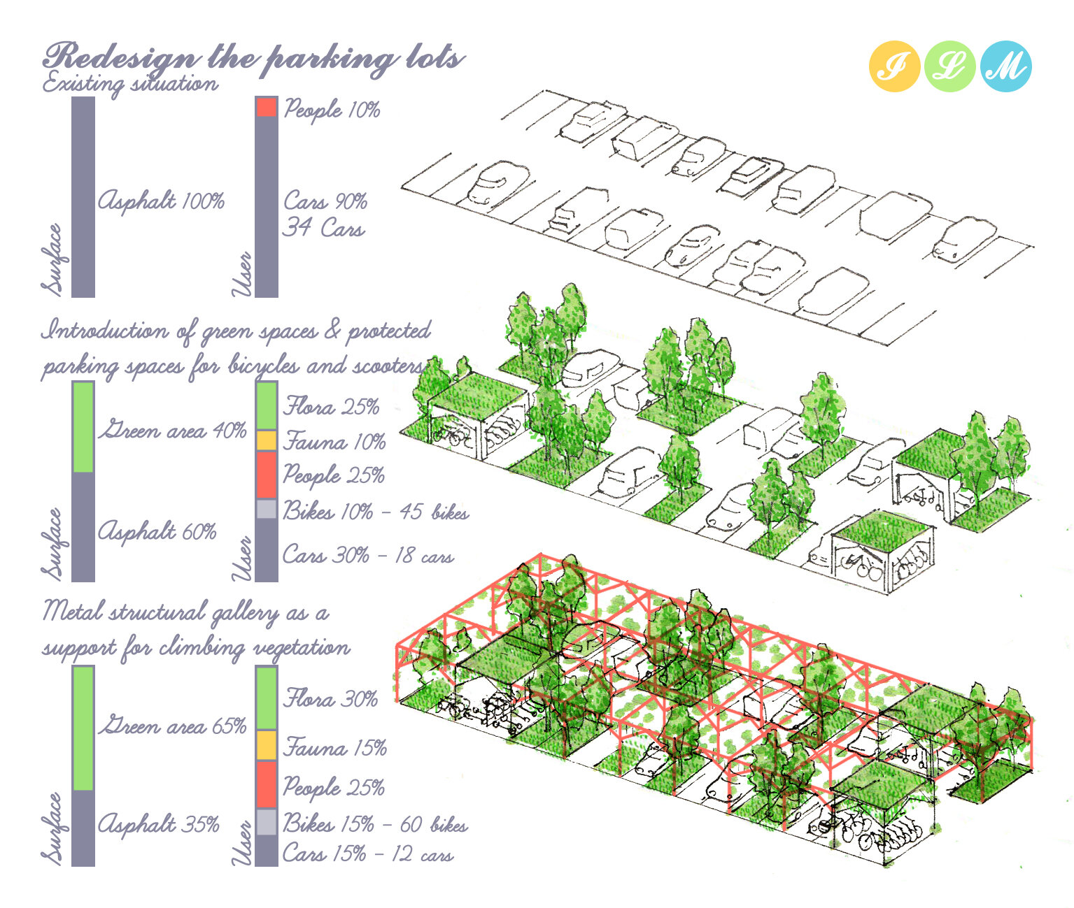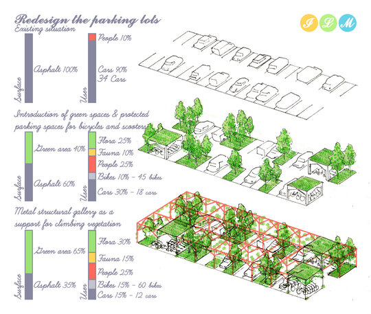 Se estimeaza o reducere de aproximativ 80% a utilizarii masinilor personale, trecandu-se la mobilitate usoara, utilizarea in comun a masinilor si transportul public, astfel incat 70% din zonele de parcare pot fi transformate din spatii minerale impermeabile in spatii proiectate pentru un oras viu, imbunatatind calitatile urbane si ridicand calitatea generala a vietii.