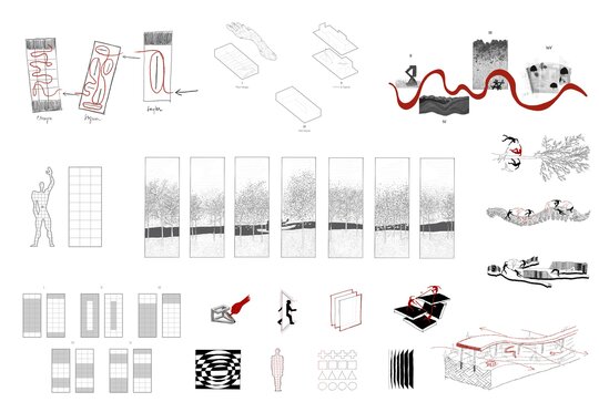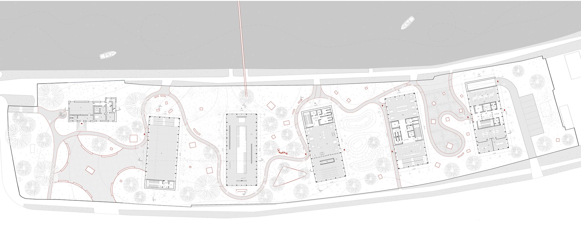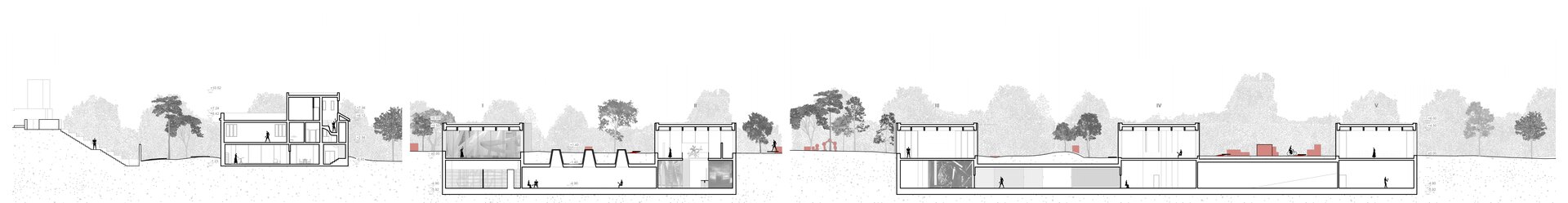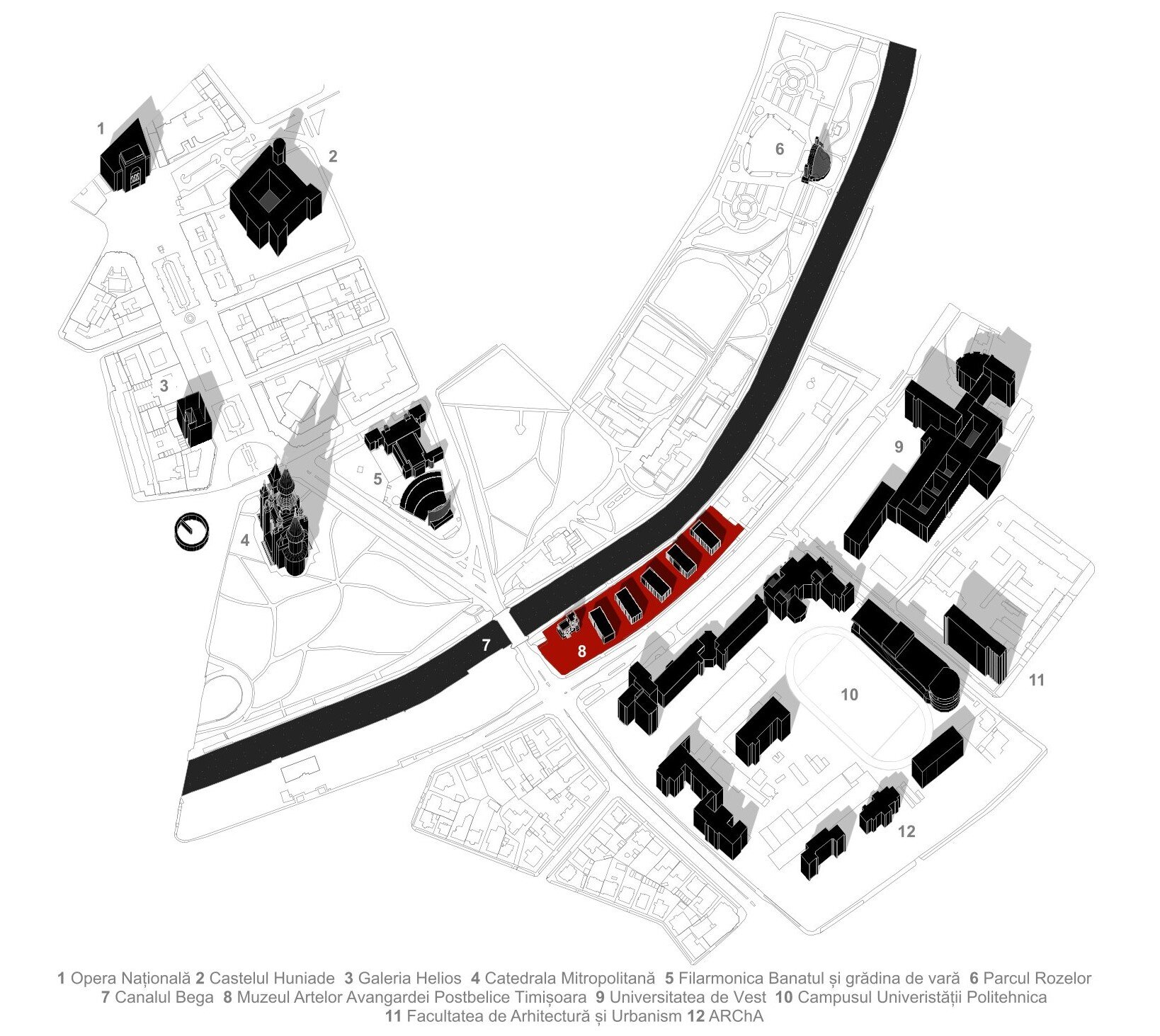 Volumetria muzeului este compusă dintr-o serie de cinci corpuri distincte la nivelul parterului, ușor rotite, fiecare reprezentând un episod autonom al parcursului muzeal, atât din punct de vedere funcțional, cât și spațial. Rotirea volumelor nu este una arbitrară, ci este definită de dorința de a orienta volumele după traseul reperului major al sitului, Bega. Astfel, se consolidează relația dintre arhitectură și contextul natural. Rotirea volumelor este subtilă, aproape imperceptibilă la nivelul ochiului, dar suficient încât individualitatea fiecărui volum să fie marcată, astfel susținând conceptul de secvențențialitate distinctă.
