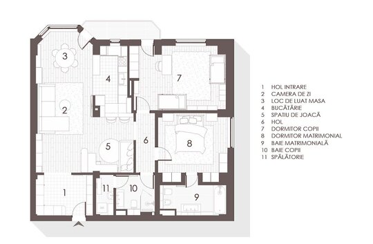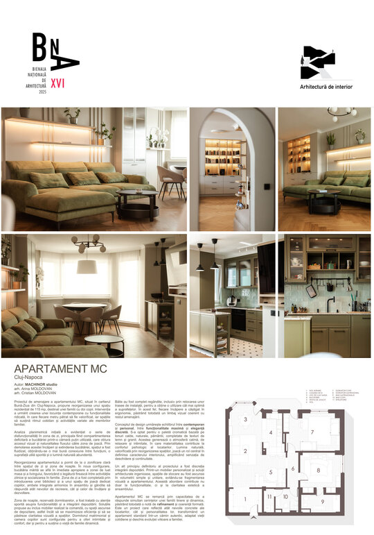 Apartamentul MC se remarcă prin capacitatea de a răspunde simultan cerințelor unei familii tinere și dinamice, păstrând totodată o notă de rafinament și coerență formală. Este un proiect care reflectă atât nevoile concrete ale locatarilor, cât și personalitatea lor, transformând un apartament standard într-un cămin autentic, adaptat vieții cotidiene și deschis evoluției viitoare a familiei.