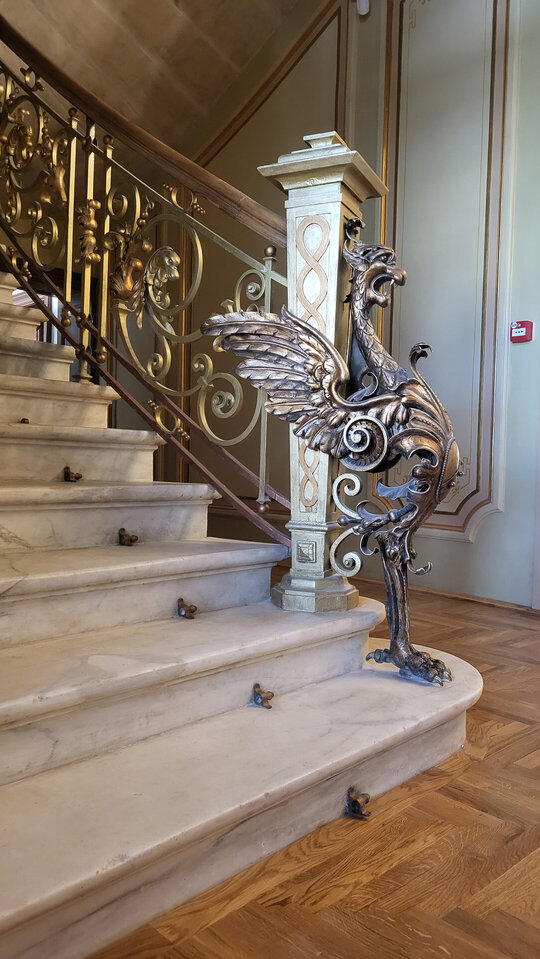 Clădirea, având subsol, parter și două niveluri, are ținuta unei reședințe deosebite, iar interiorul impresionează prin frumusețea sa desăvârșită. Impunătoarea construcție a fost realizată, se pare, în anul 1890, de către arhitectul francez Albert Galleron, cel care proiectase și alte edificii remarcabile, printre care Ateneul Român din București.