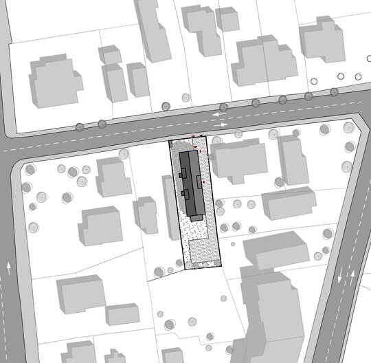 Casa M este amplasată în cartierul Grigorescu al municipiului Cluj-Napoca, o zonă caracterizată de dualitate în ceea ce privește țesului urban și modalitățile de locuire. Reminiscențele vechiului cartier Donath se citesc în case unifamiliale și vile elegante ale secolului trecut, care se împletesc cu locuințe colective cu regimuri de înălțime între P+4 și P+9 construite în anii 1960. Restructurarea șaizecistă este atribuită arhitectului clujean Augustin Presecan, apreciată pentru amplasarea aerisită a construcțiilor și dotarea cartierului cu spații pentru comunitate, servicii de proximitate și dotări de învățământ.