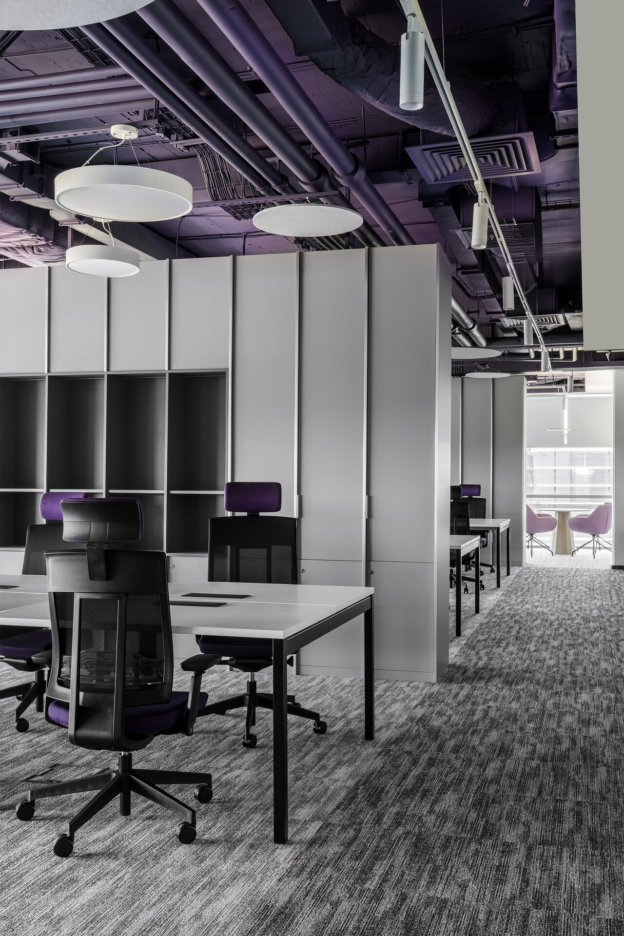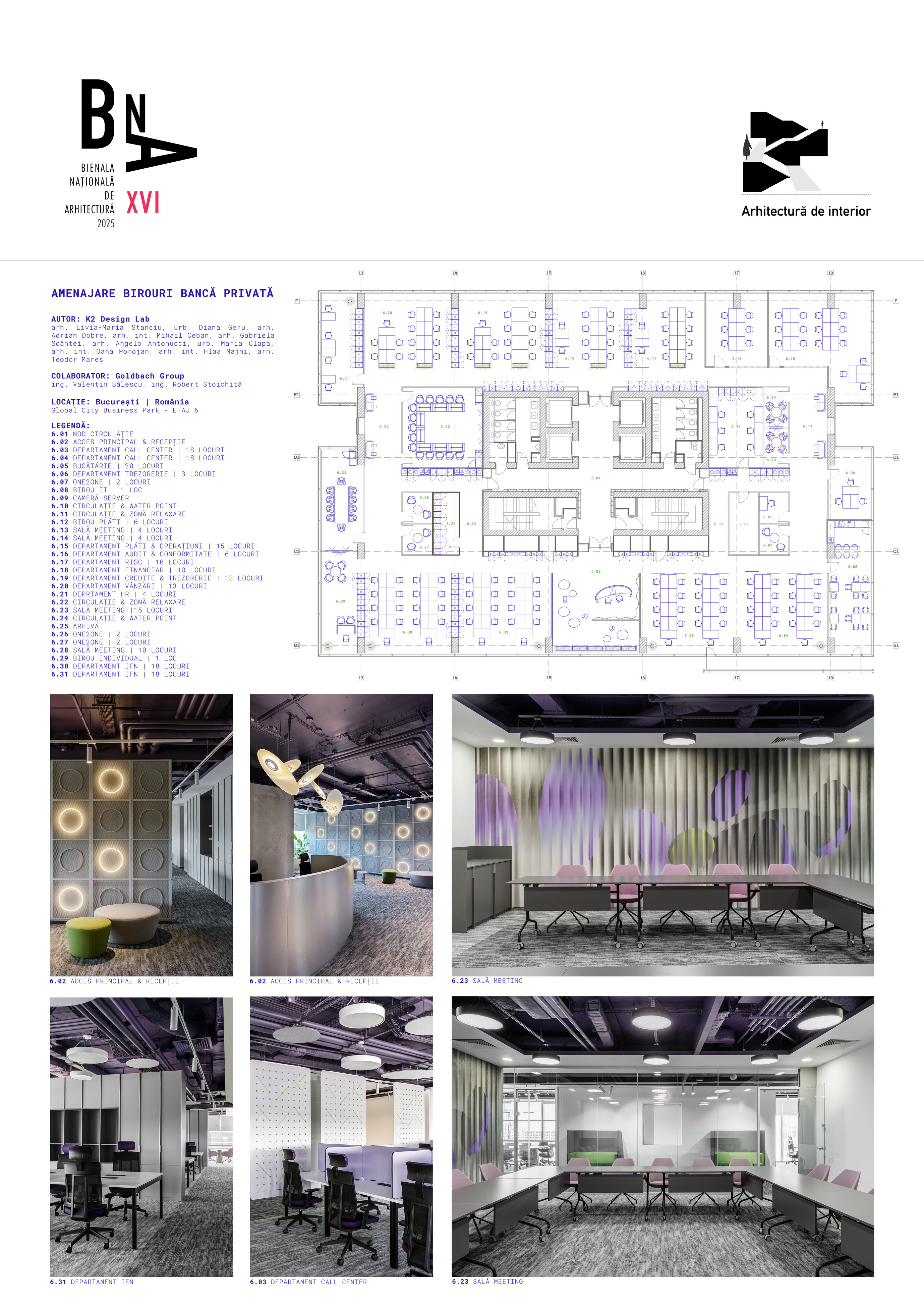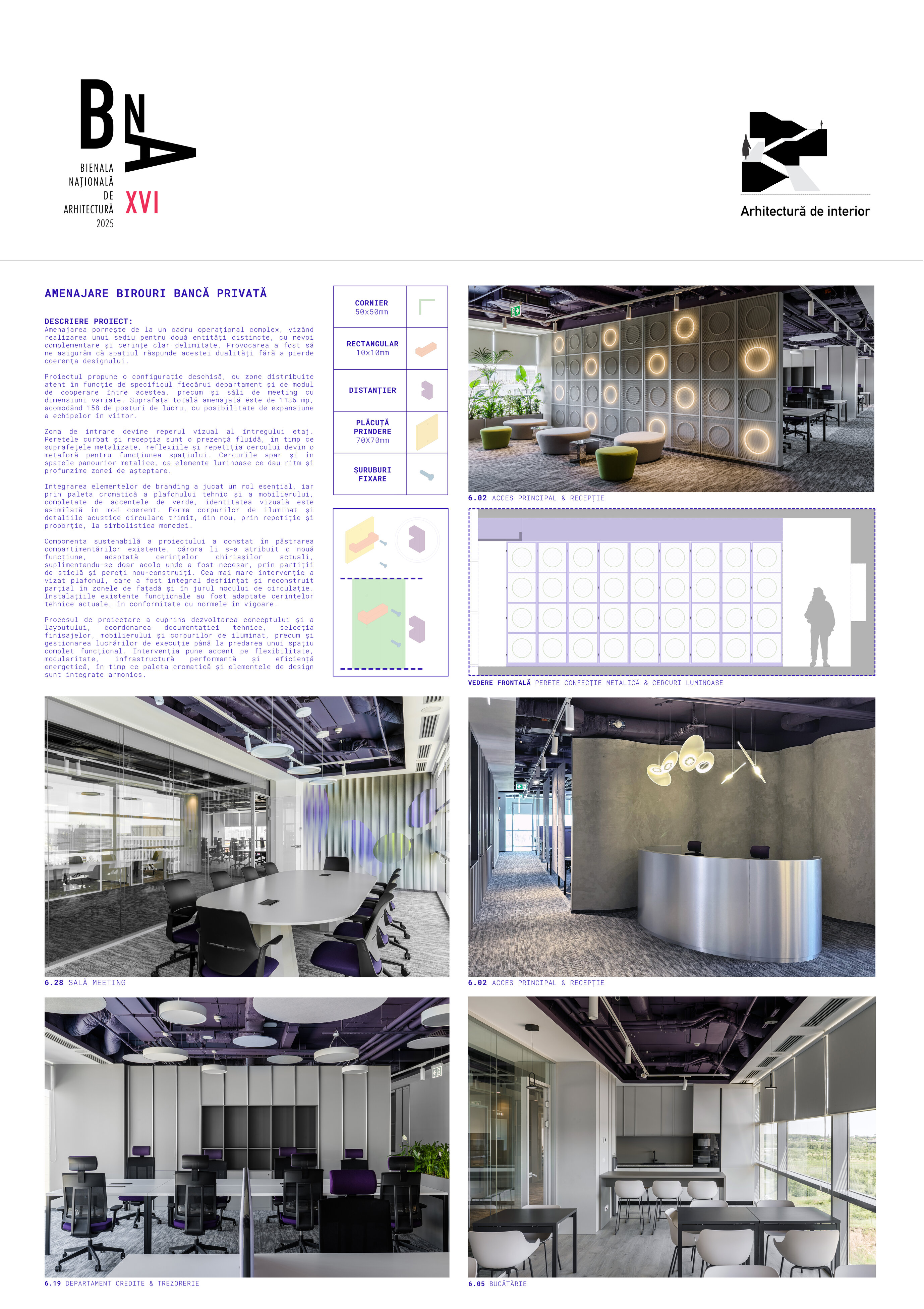 Procesul de proiectare a cuprins dezvoltarea conceptului și a layoutului, coordonarea documentației tehnice, selecția finisajelor, mobilierului și corpurilor de iluminat, precum și gestionarea lucrărilor de execuție până la predarea unui spațiu complet funcțional. Intervenția pune accent pe flexibilitate, modularitate, infrastructură performantă și eficiență energetică, în timp ce paleta cromatică și elementele de design sunt integrate armonios.