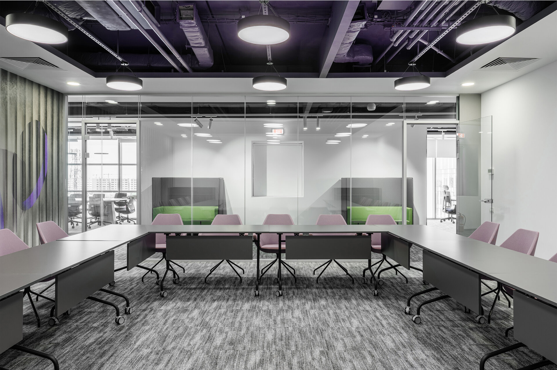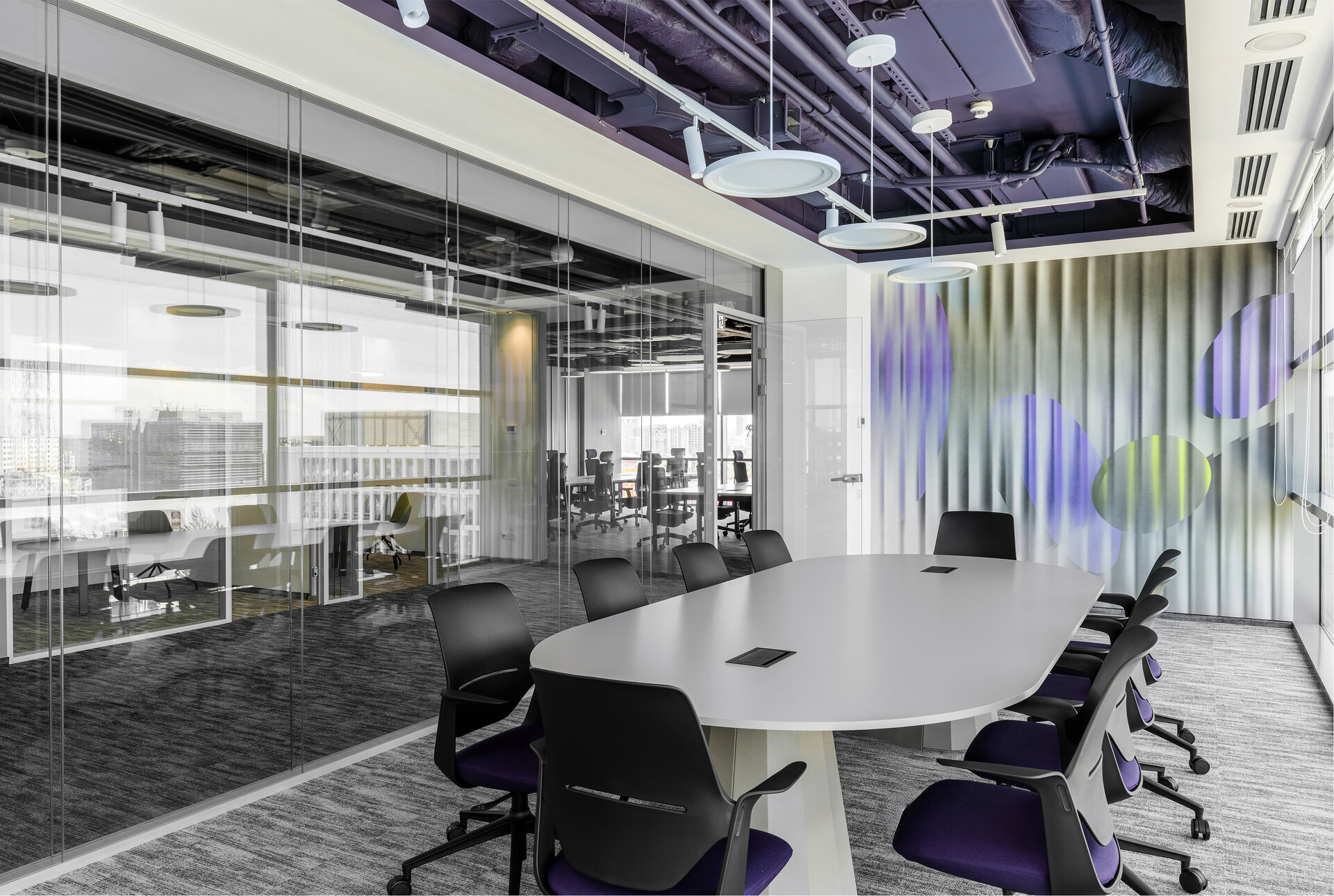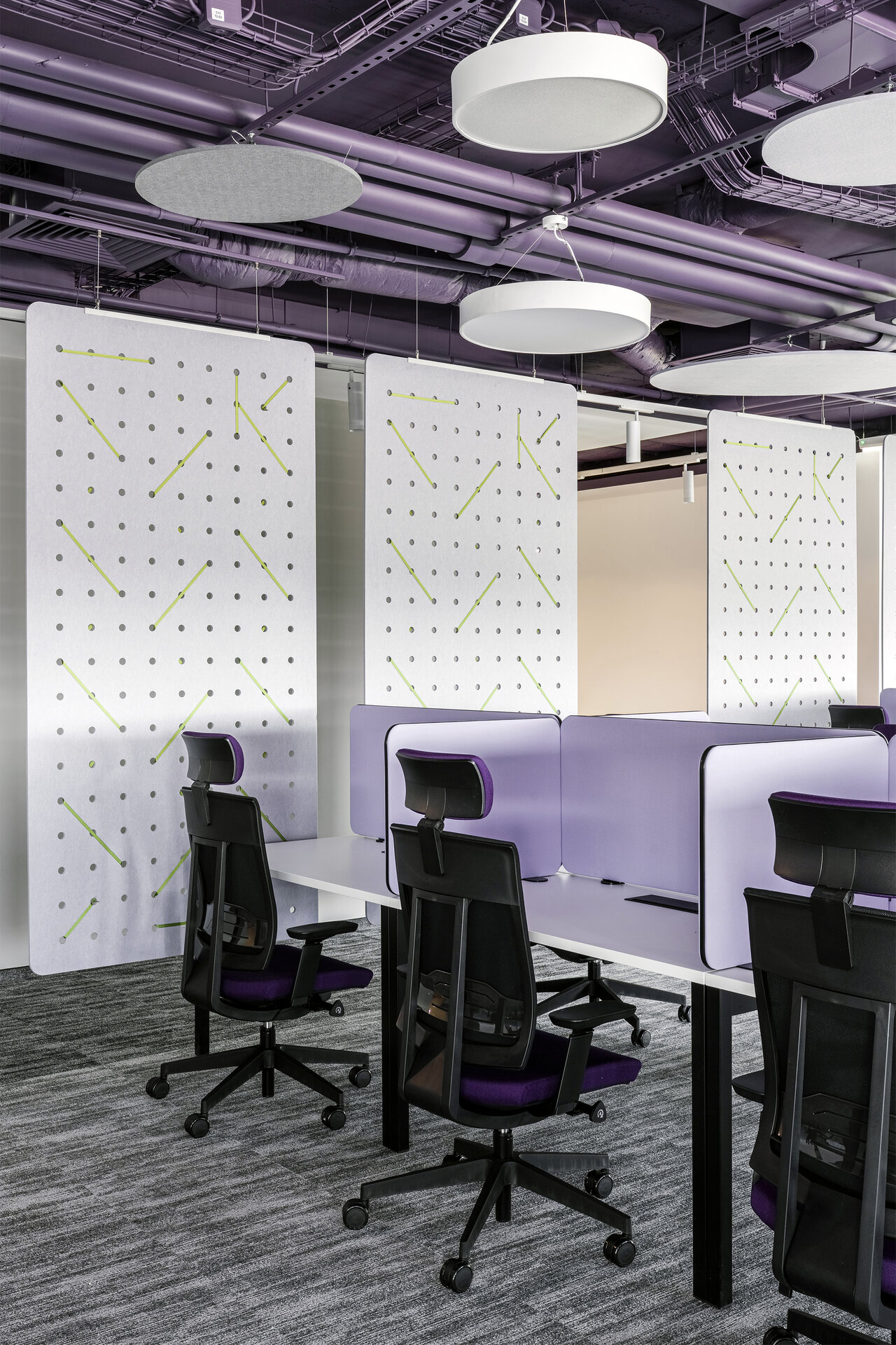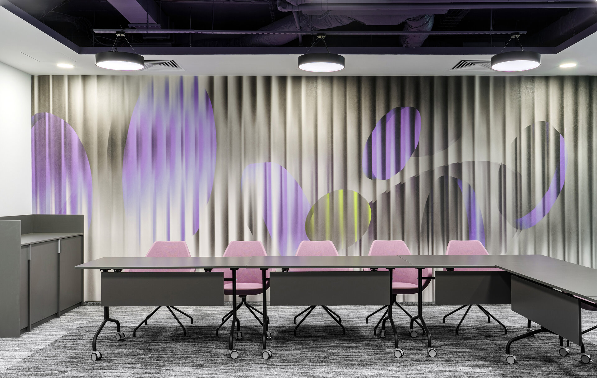 Procesul de proiectare a cuprins dezvoltarea conceptului și a layoutului, coordonarea documentației tehnice, selecția finisajelor, mobilierului și corpurilor de iluminat, precum și gestionarea lucrărilor de execuție până la predarea unui spațiu complet funcțional. Intervenția pune accent pe flexibilitate, modularitate, infrastructură performantă și eficiență energetică, în timp ce paleta cromatică și elementele de design sunt integrate armonios.