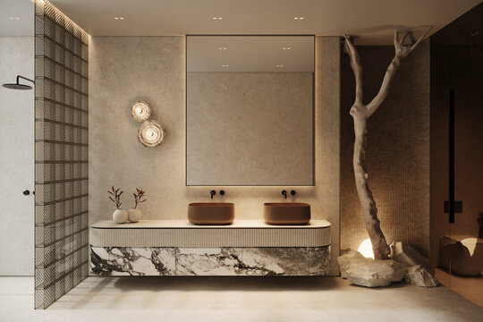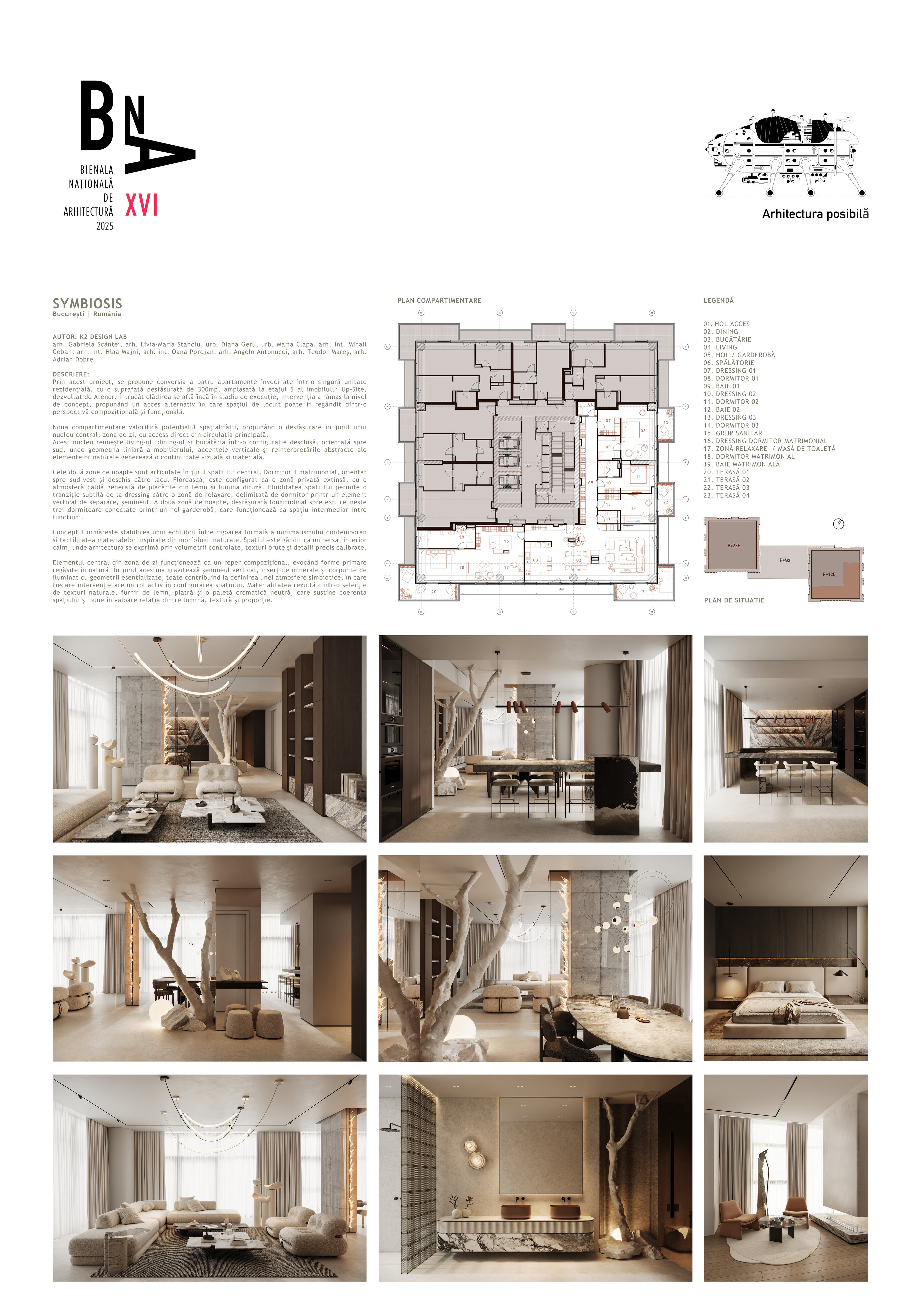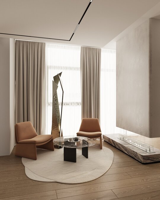 Conceptul urmărește stabilirea unui echilibru între rigoarea formală a minimalismului contemporan și tactilitatea materialelor inspirate din morfologii naturale. Spațiul este gândit ca un peisaj interior calm, unde arhitectura se exprimă prin volumetrii controlate, texturi brute și detalii precis calibrate.