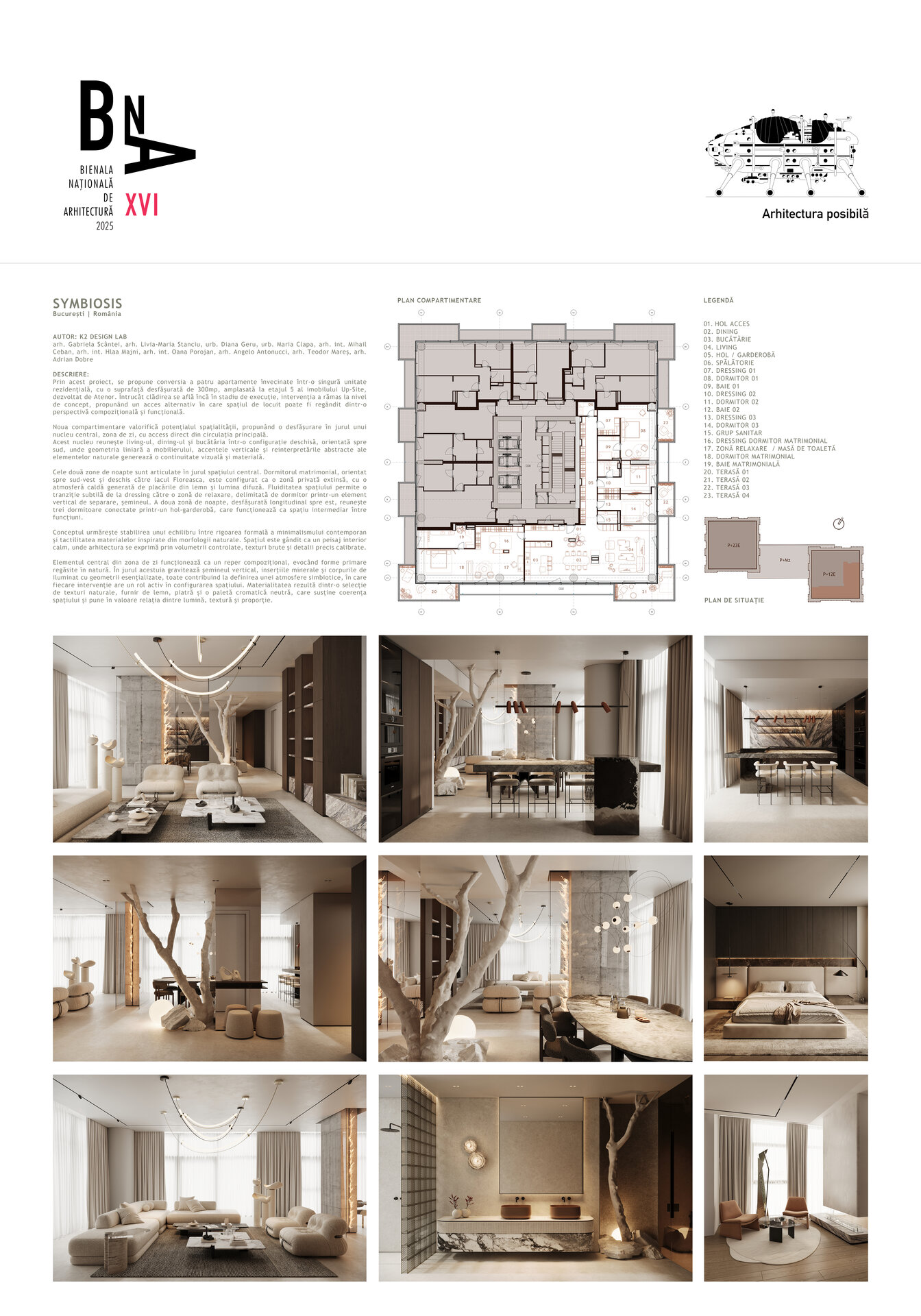 Prin acest proiect, se propune conversia a patru apartamente învecinate într-o singură unitate rezidențială, cu o suprafață desfășurată de 300mp, amplasată la etajul 5 al imobilului Up-Site, dezvoltat de Atenor. Întrucât clădirea se află încă în stadiu de execuție, intervenția a rămas la nivel de concept, propunând un acces alternativ în care spațiul de locuit poate fi regândit dintr-o perspectivă compozițională și funcțională.