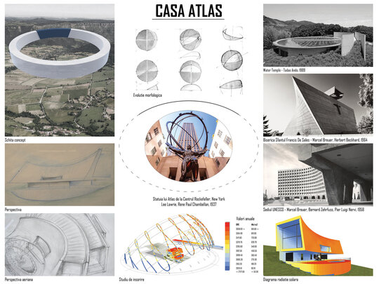 Casa Atlas reprezintă o serie de considerente și urmări, datorate în primul rând “greutății” susținute prin tectonica logicii formale și materiale, dar și ca atlas de principii, idei, tehnci și alegeri cartografiate prin cercetarea aprofundată a unei exprimări oneste a arhitecturii, care să îndeplinească toate cerințele timpului nostru și care să fie realizabile în contextul actual.