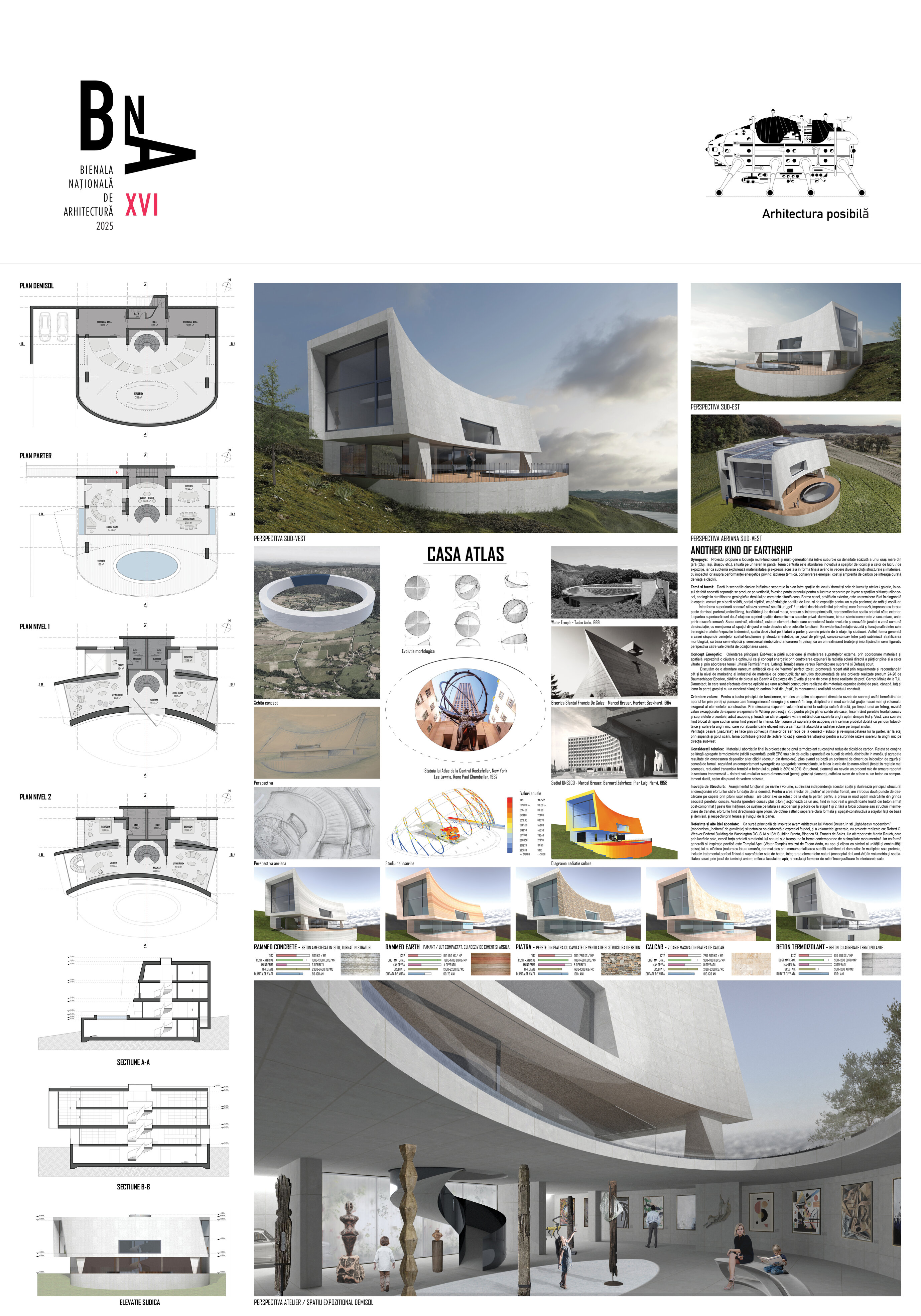 Proiectul propune o locuință multi-funcțională și multi-generatională într-o suburbie cu densitate scăzută a unui oraș mare din țară (Cluj, Iași, Brașov etc.), situată pe un teren în pantă. Tema centrală este abordarea inovativă a spațiilor de locuit și a celor de lucru / de expoziție, iar ca subtemă explorează materialitatea și expresia acesteia în forma finală având în vedere diverse soluții structurale și materiale, cu impactul lor asupra performanței energetice privind: izolarea termică, conservarea energiei, cost și amprentă de carbon pe intreaga durată de viață a clădirii.