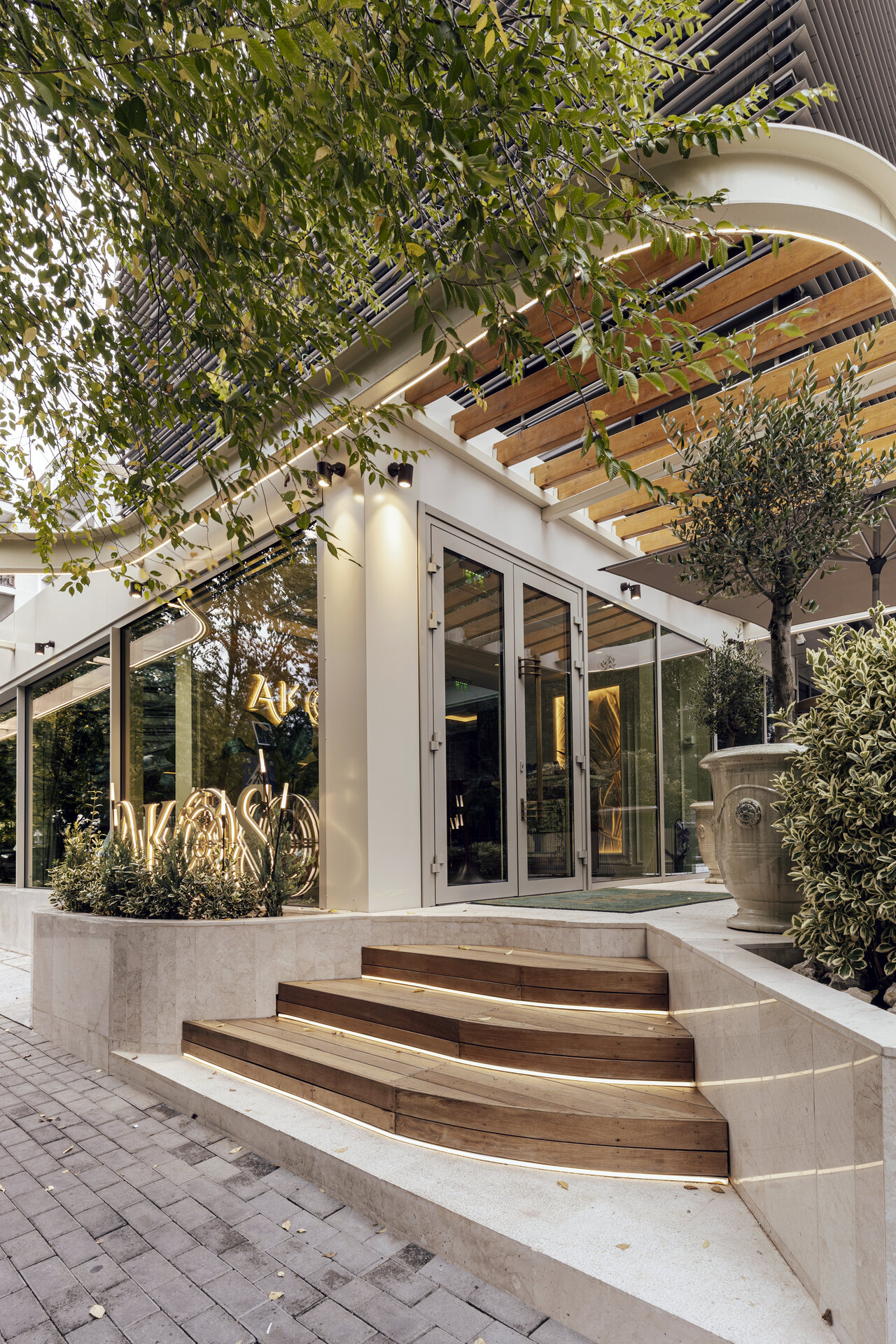Materialele naturale, liniile fluide și detaliile de inspirație mediteraneană definesc experiența sofisticată oferită de restaurantul Akos, unde designul modern se îmbină armonios cu tradițiile.