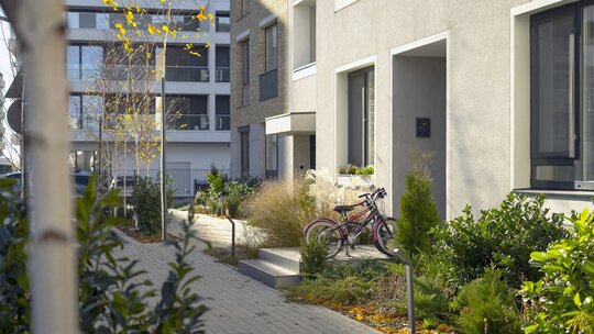 Locuințele de la parter, cu ferestrele spațiilor active (bucătării, birouri, camere de zi) orientate spre zonele publice, activează frontul urban și contribuie la supravegherea naturală a spațiilor comune, consolidând siguranța percepută și sentimentul de apropiere între vecini.