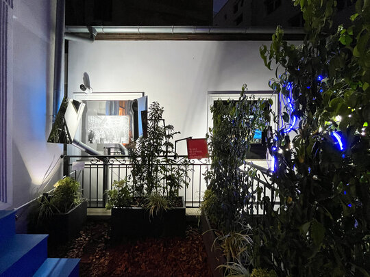 Locul în care a fost montată instalația are un caracter absurd: o terasă circulabilă de 4mp care corespunde unei camere de la etajul 1 al galeriei /SAC Berthelot, a rezultat din extinderea cu o cameră a locuinței vecine de la parter. Terasa, deși avea parapet, era nefuncțională: legătura cu interiorul se făcea printr-un gol de fereastră.