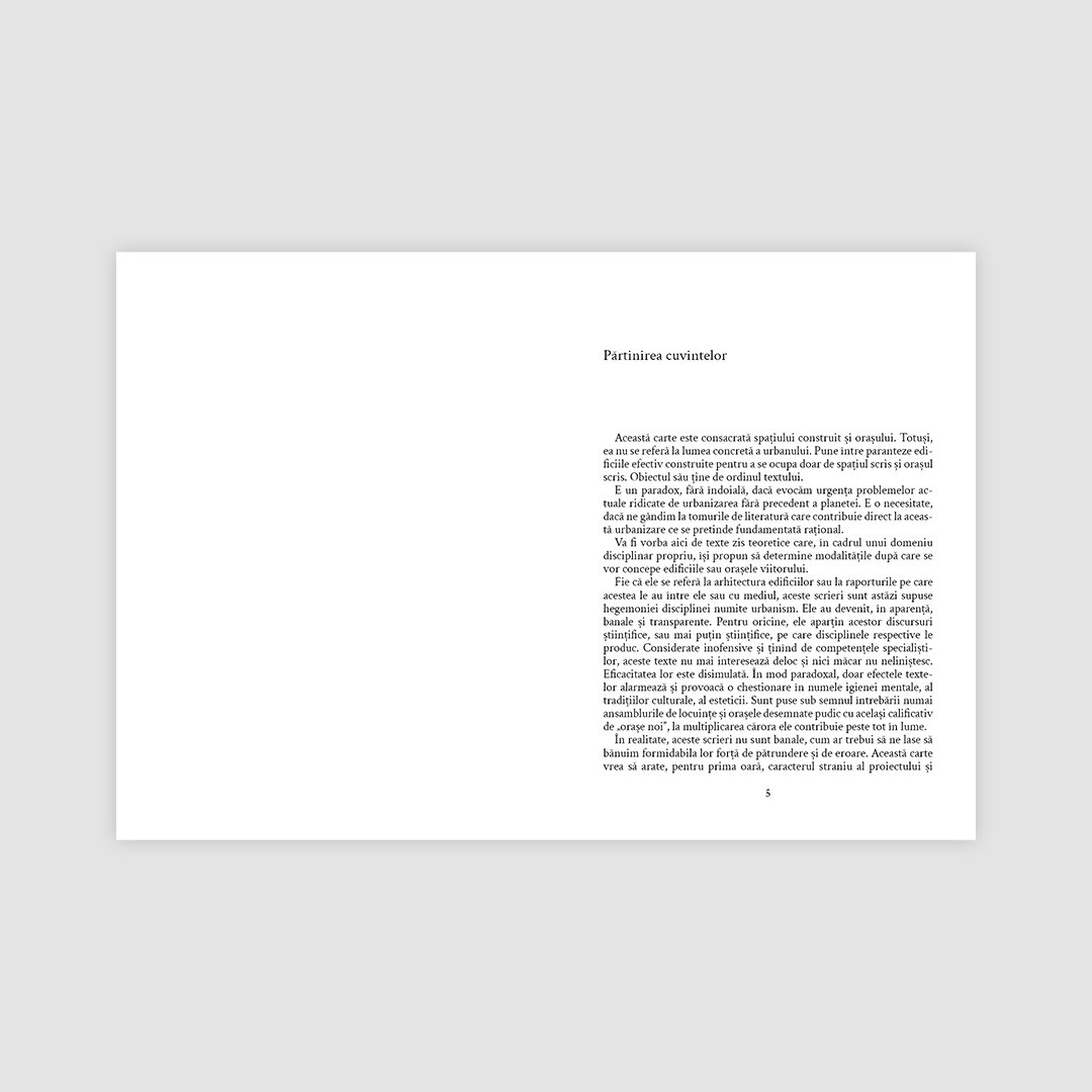 Autoarea se întreabă unde se găsesc rațiunile și formele «prime» ale discursului despre oraș, cele după care s-a construit în secolul al XIX-lea «teoria de urbanism», adică acea categorie discursivă a unei discipline «ne-recunoscută și ne-numită» până când Cerdà nu o botează și înzestrează cu pretenția explicită «de a crea operă științifică prin aproprierea metodologiilor proprii științei». Dar în noua cercetare, autoarea nu mai este interesată de opțiunile axiologice ale scriitorilor pe care îi supune discuției, ci caută să definească adevărata natură a discursului, vrea să descopere «ce sunt cu adevărat textele urbanismului» în geneza lor, cu «intențiile secrete pe care le ascund pretențiile lor explicite și ideologiile lor neexprimate».