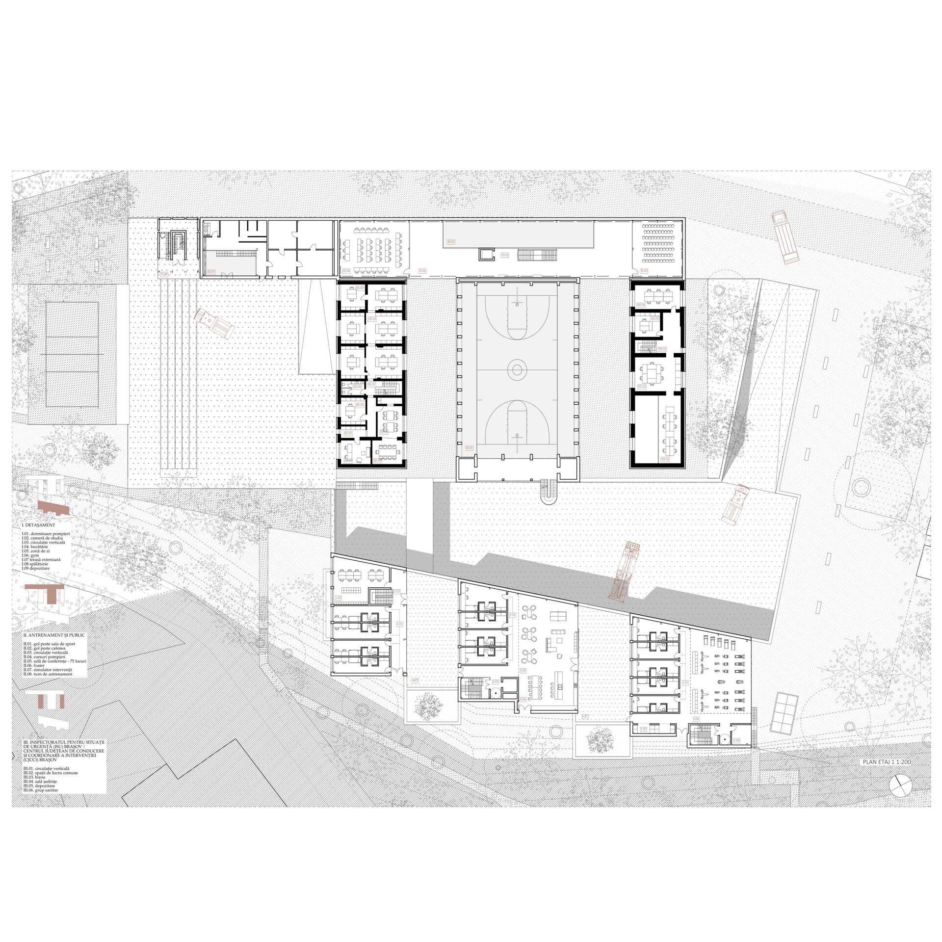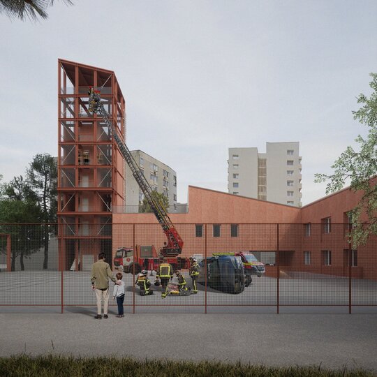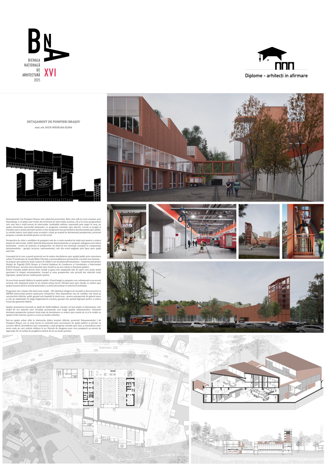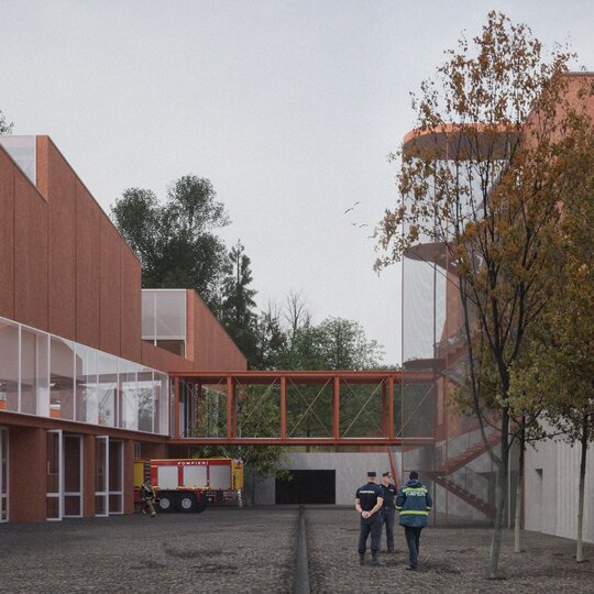 Într-un spațiu urban aflat la intersecția dintre tesuturi diferite, proiectul Detașamentului I de Pompieri Brașov are ca scop lucrul cu contextul prin succesiunea de spații publice și private cu caracter diferit, deschiderea spre comunitate a unui program orientat spre sine, și semnalarea unor nevoi reale pe care cadrele militare le au. Dincolo de imaginea unor eroi, pompierii au nevoie de siguranță, fie că vorbim de pregătirea zilnică, fie de un mediu prielnic.