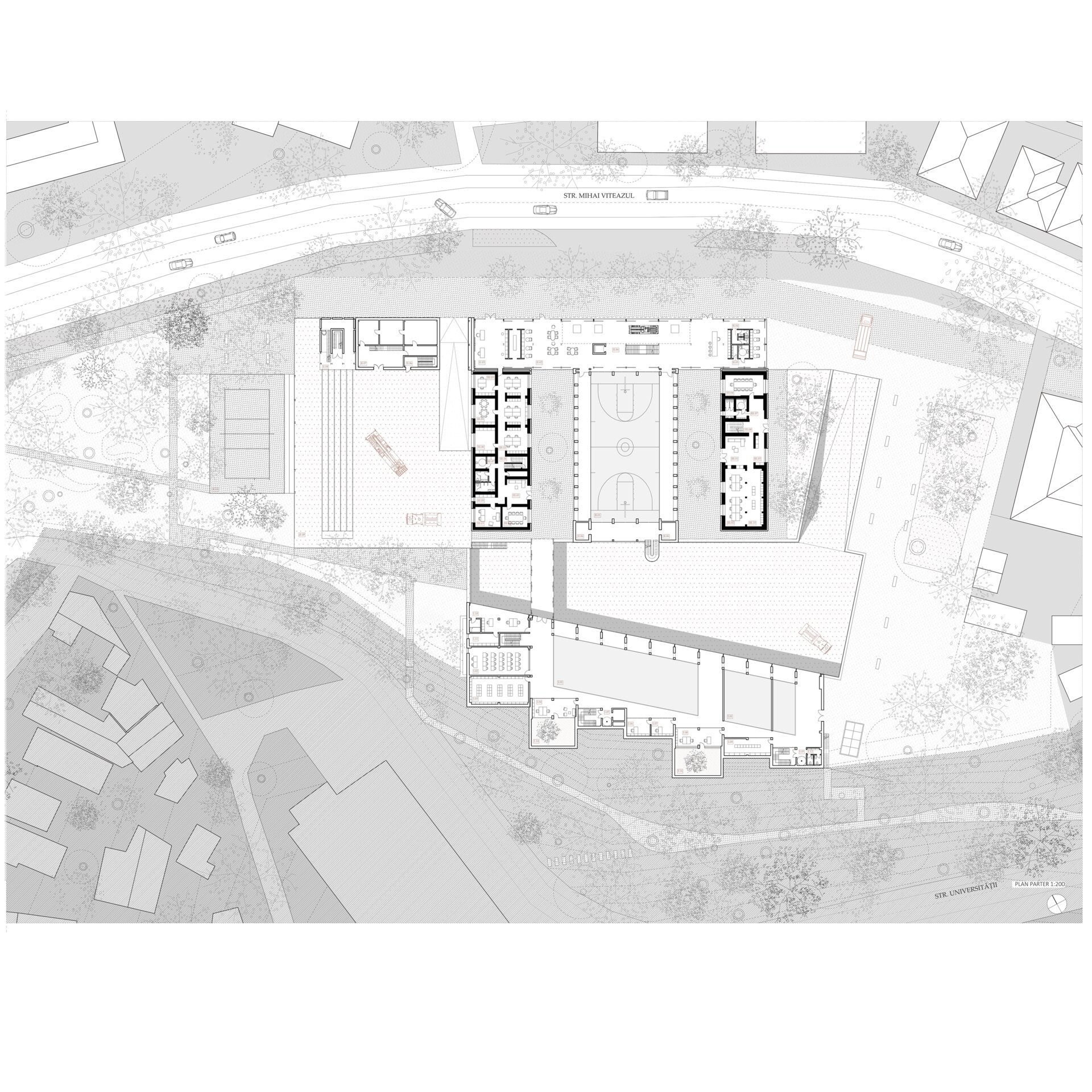 Conceptul de la care a pornit proiectul are în vedere deschiderea spre spațiul public prin conectarea colinei Transilvania de strada Mihai Viteazul, și permeabilizarea perimetrală a incintei nou formate.