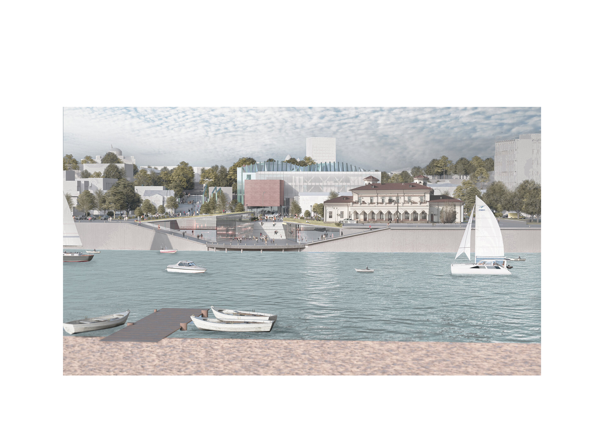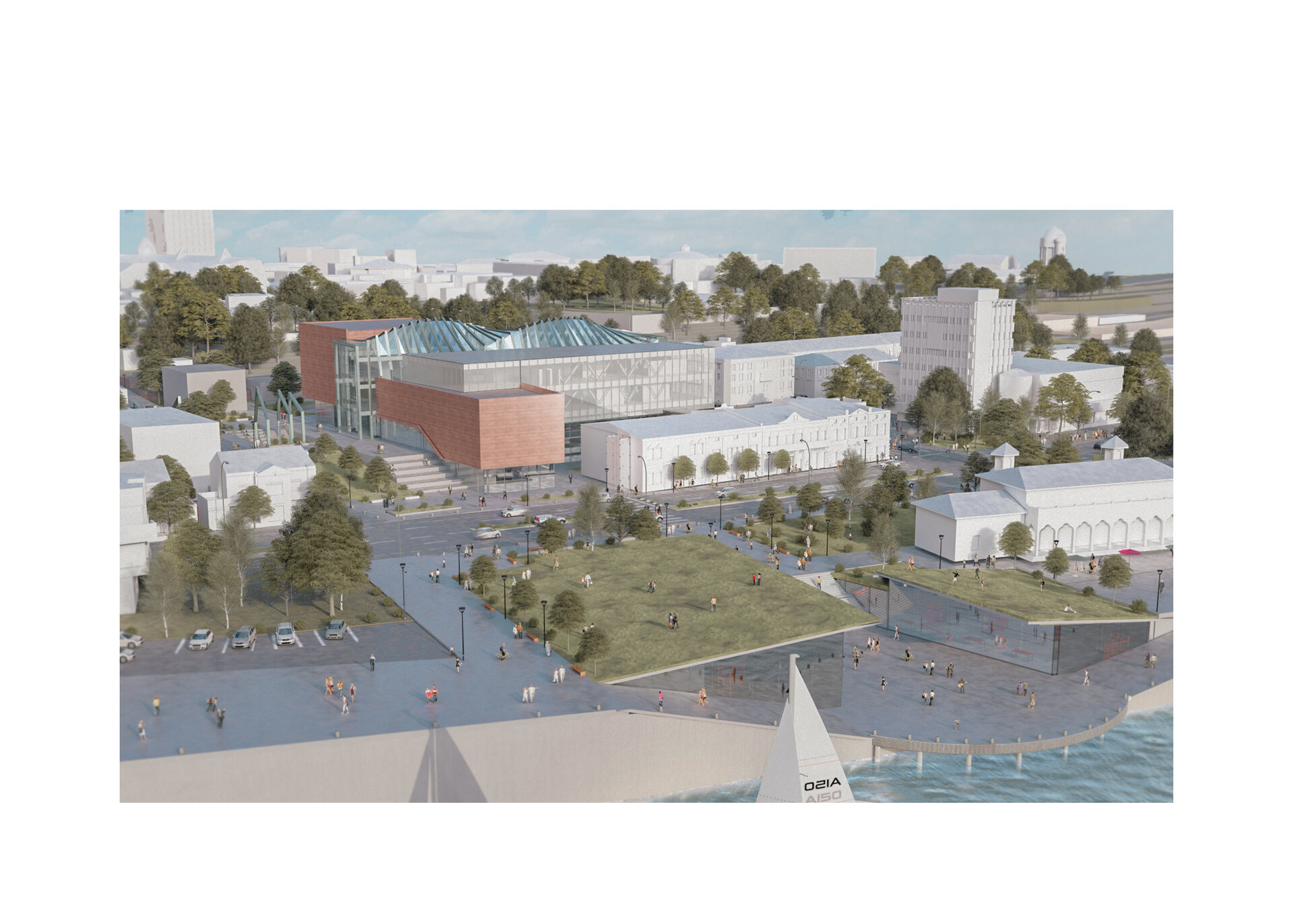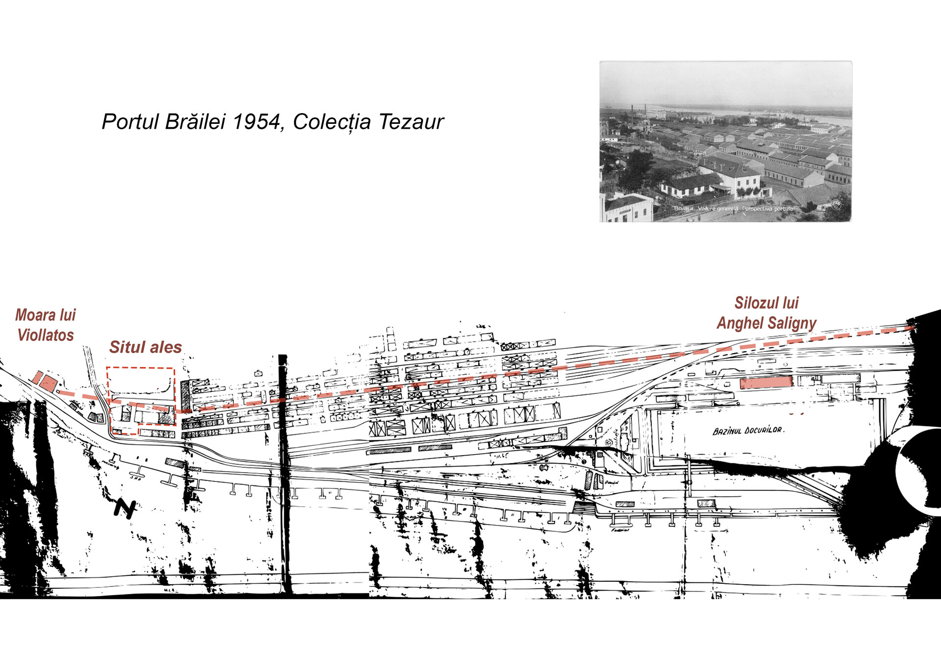 Situl ales se află la intersecția a două axe importante: unul unește halele cu moara Violattos, traversând o expoziție cu utilaje ce obisnuiau să circule pe acest drum. Acest ax se materializează și la suprafață, devenind un corp rosiatic cu o zonă expozițională dedicată morii Violattos și Insulei Mari, fiind un volum care priveste spre acestea. Celălalt ax, axul ,,apă-pământ", leagă centrul Brăilei de faleză, intersectând axul agriculturii sec. XIX și, prin trecerea cu bacul a propunerii PUG, axul continuă până pe Insula Mare. De-a lungul său se desfășoară în subteran o expoziție de acvacultură și pedologie, studiul solurilor fertile. Expozitiile etajelor superioare sunt orientate către moară, port și Strada Mare, astfel exteriorul devine el însuși exponat, parte integrantă a parcursului muzeal.