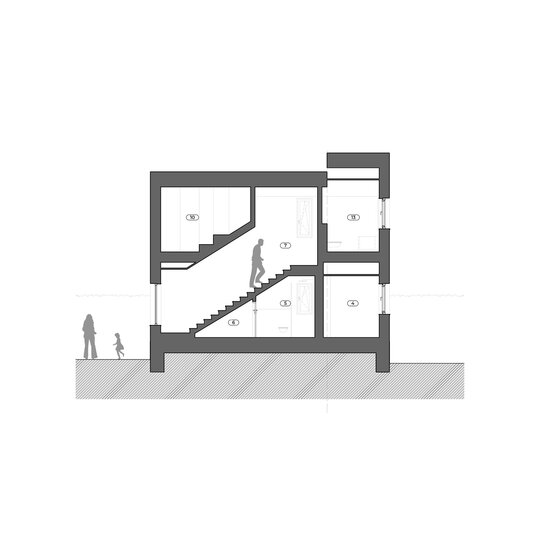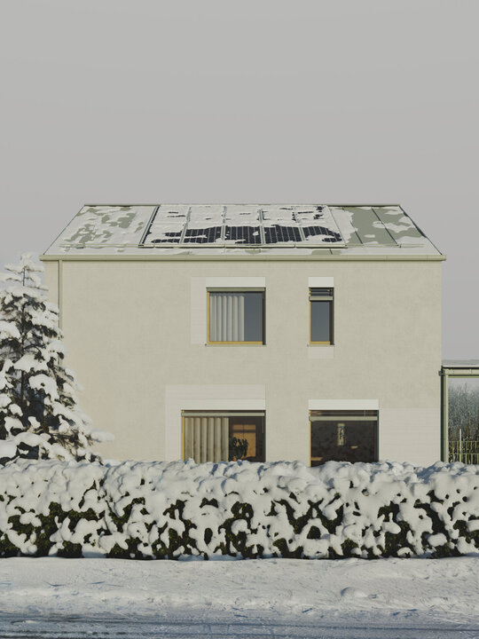 Pe lângă optimizarea volumului, s-a acordat o atenție deosebită eficienței energetice. Amplasarea ferestrelor și orientarea cardinală a locuinței au fost studiate atent pentru a maximiza aportul solar în sezonul rece și pentru a preveni supraîncălzirea vara. În acest sens, răcirea pasivă este asigurată prin utilizarea de jaluzele tip venețiene, care controlează lumina și temperatura interioară. În plus, încăperile cu funcțiuni secundare (precum grupurile sanitare, camera tehnică sau scara) au fost amplasate pe latura de nord, reducând pierderile de căldură și îmbunătățind performanța termică generală.