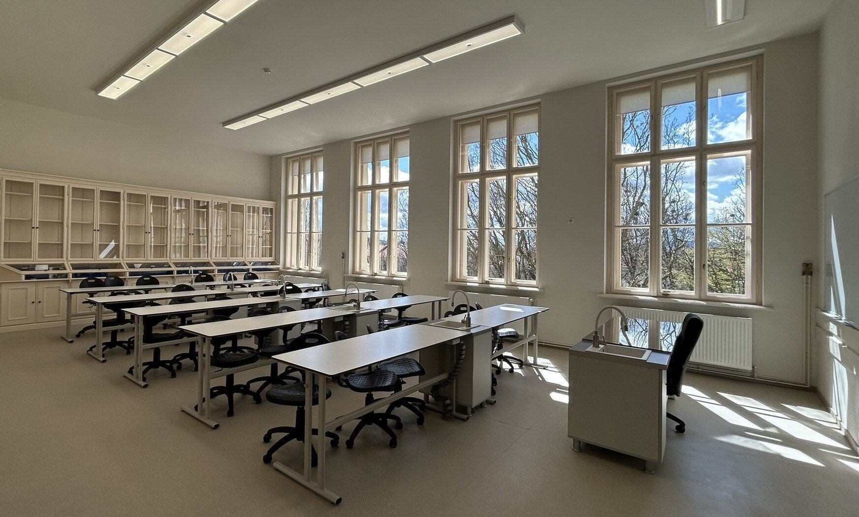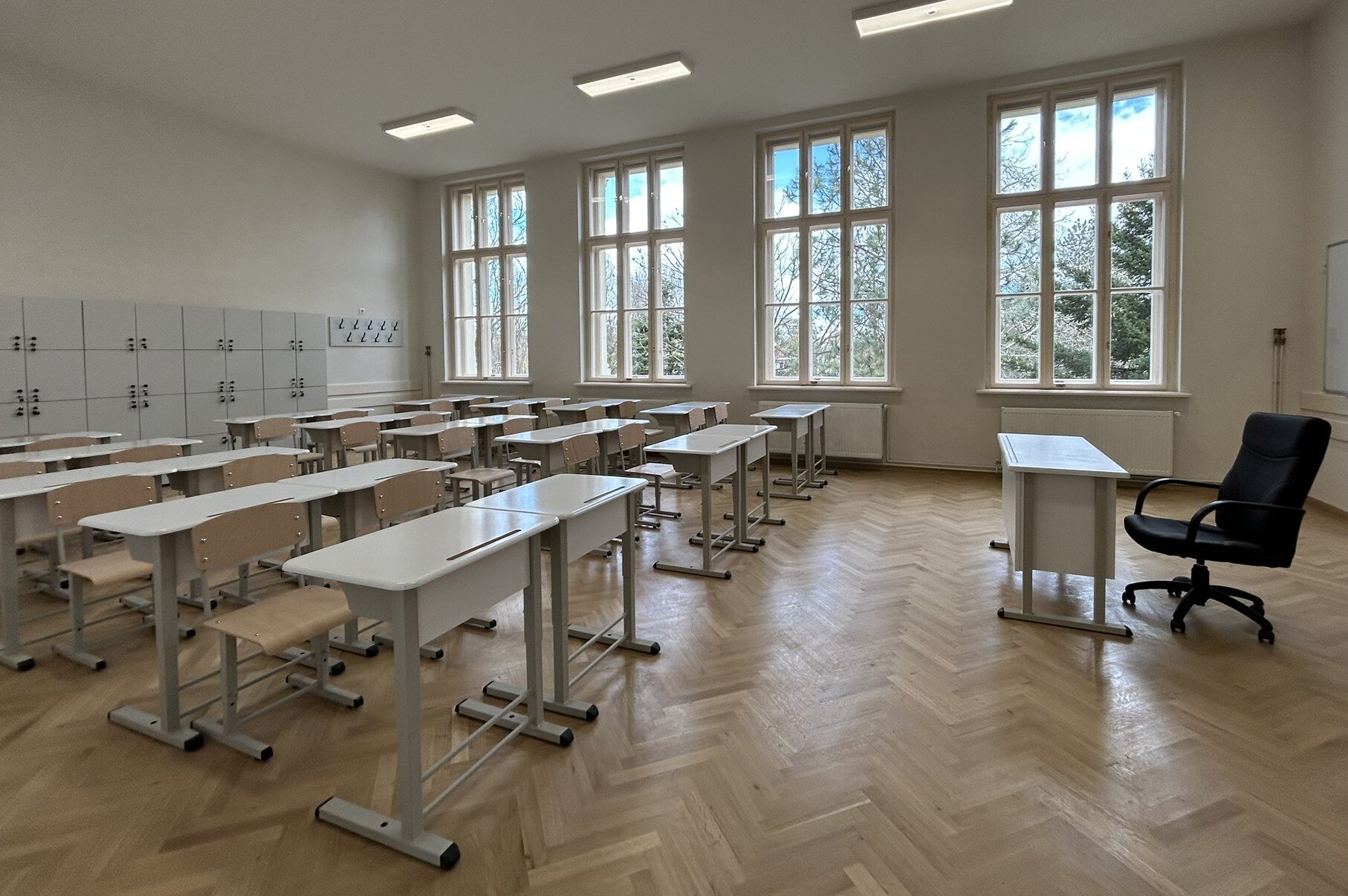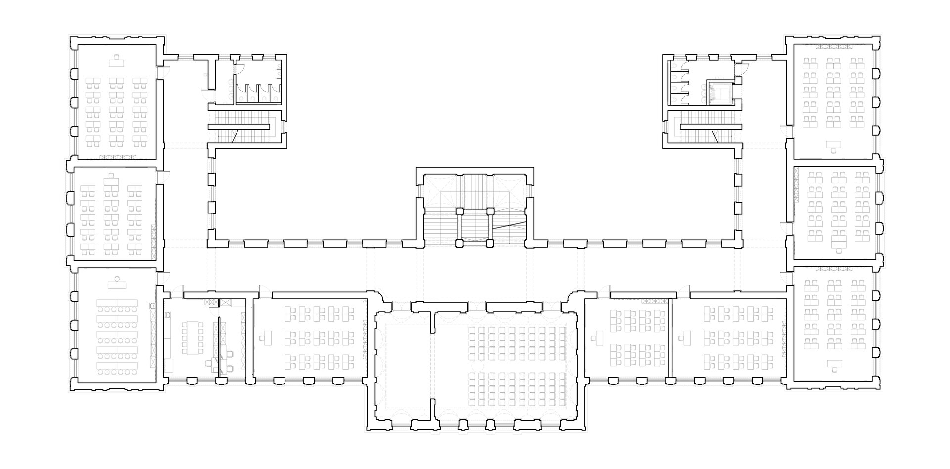 La nivelul tâmplăriilor, a fost posibilă păstrarea și restaurarea tuturor ușilor istorice și a unora dintre tâmplăriile de ferestre, iar cele nou realizate din lemn stratificat respectă detaliile originale, asigurând totodată și cerințele de izolare termică.