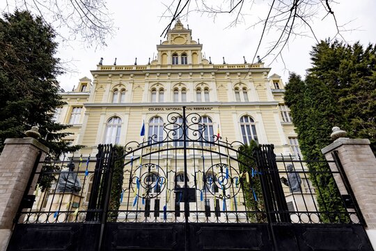 Adiacent faţadei posterioare este organizată curtea propriu-zisă a clădirii, accesul elevilor făcându-se pe ușile secundare dinspre curte. Între incinta colegiului și Bulevardul Republicii se păstrează împrejmuirea istorică realizată din soclu stâlpi de zidărie și panouri din fier forjat.