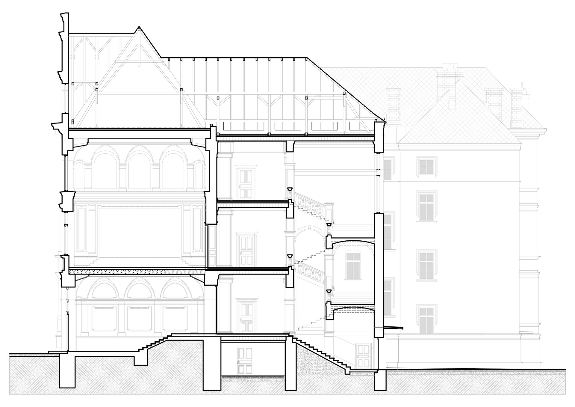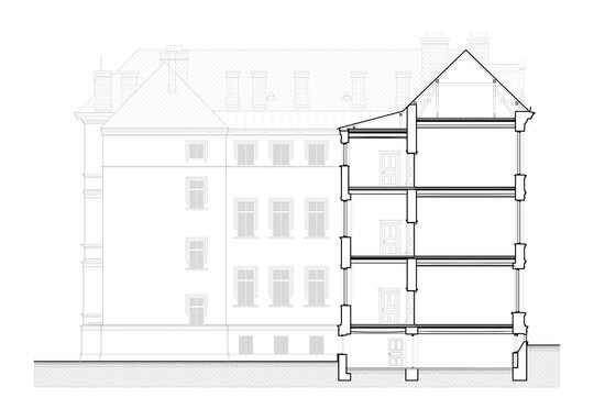 Una dintre cele mai mari provocări pe parcursul proiectării și execuției a fost consolidarea planșeelor istorice tip Wayss, realizate din beton cu nervuri dese, turnate pe corpuri de umplutură din rame de lemn învelite în saltea de trestie. Consolidarea a fost realizată prin introducerea unor profile metalice și realizarea unor suprabetonări, precum și metode contemporane de consolidare a elementelor de beton cu plase din fibre de carbon, respectiv sticlă și mortare de înaltă rezistență pentru reparații. Ca o consecință, a fost necesară modificarea soluțiilor de finisaje la tavane, dar în special la nivelul pardoselilor și scărilor, prin utilizarea unor materiale contemporane precum microterrazzo pe bază de ciment colorat sau microciment.