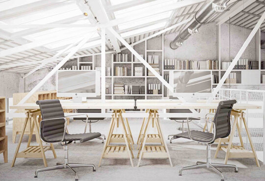 Ventilația naturală se realizează prin implementarea luminatoarelor tip Velux, care asigură o calitate a aerului, dar și o iluminare nordică benefică. Finisajele sunt în mare parte aparente: beton, tencuială decorativă, șapă industrială, metal, tablă, mesh, oferind spațiului un caracter nefinisat specific ideii de lucru și productivitate.