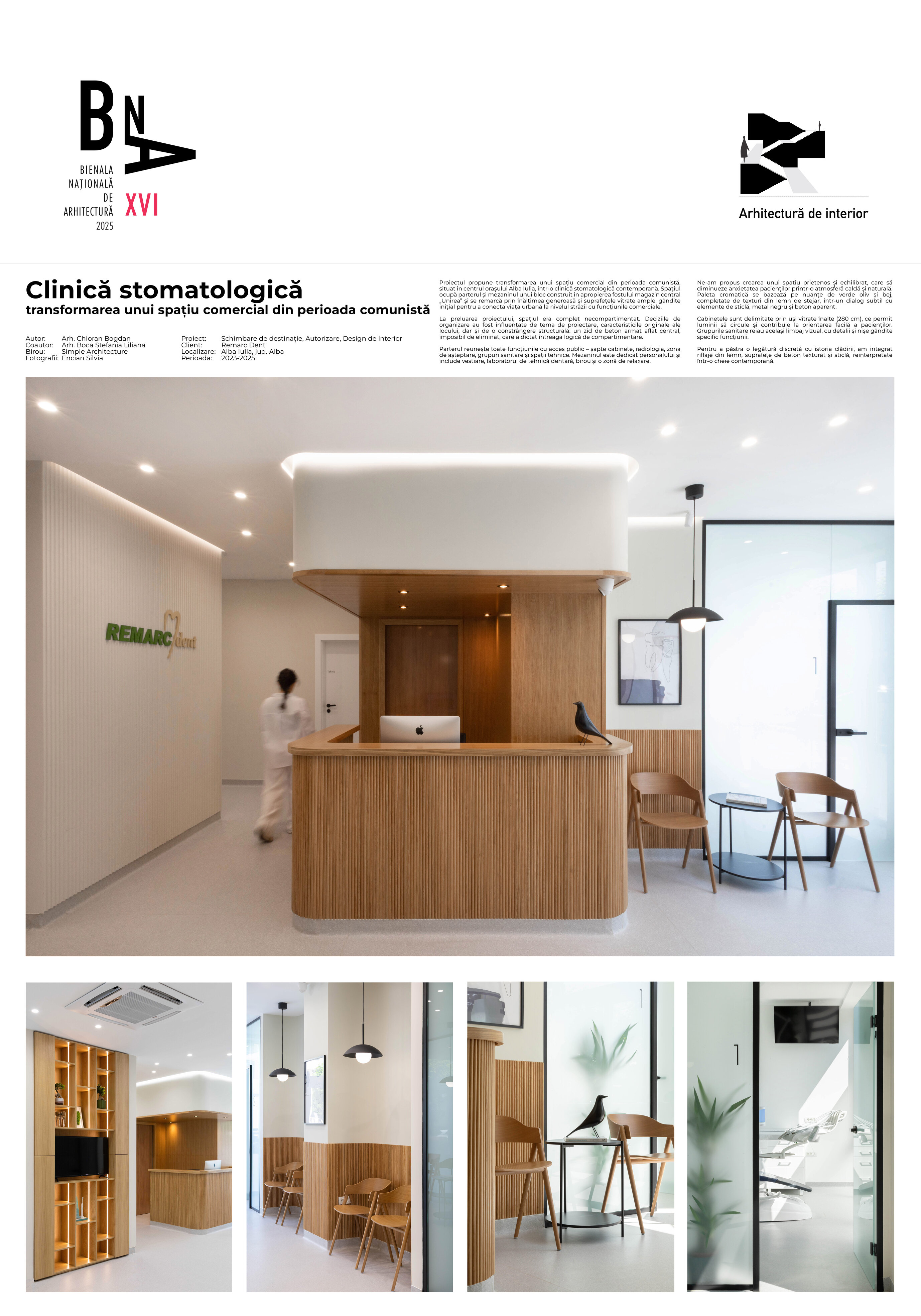 Proiectul propune transformarea unui spațiu comercial din perioada comunistă, situat în centrul orașului Alba Iulia, într-o clinică stomatologică contemporană. Spațiul ocupă parterul și mezaninul unui bloc construit în apropierea fostului magazin central „Unirea” și se remarcă prin înălțimea generoasă și suprafețele vitrate ample, gândite inițial pentru a conecta viața urbană la nivelul străzii cu funcțiunile comerciale.