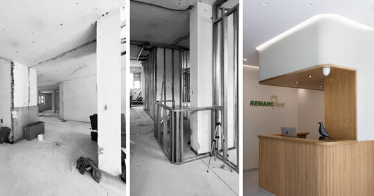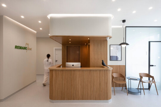 Ne-am propus crearea unui spațiu prietenos și echilibrat, care să diminueze anxietatea pacienților printr-o atmosferă caldă și naturală. Paleta cromatică se bazează pe nuanțe de verde oliv și bej, completate de texturi din lemn de stejar, într-un dialog subtil cu elemente de sticlă, metal negru și beton aparent.