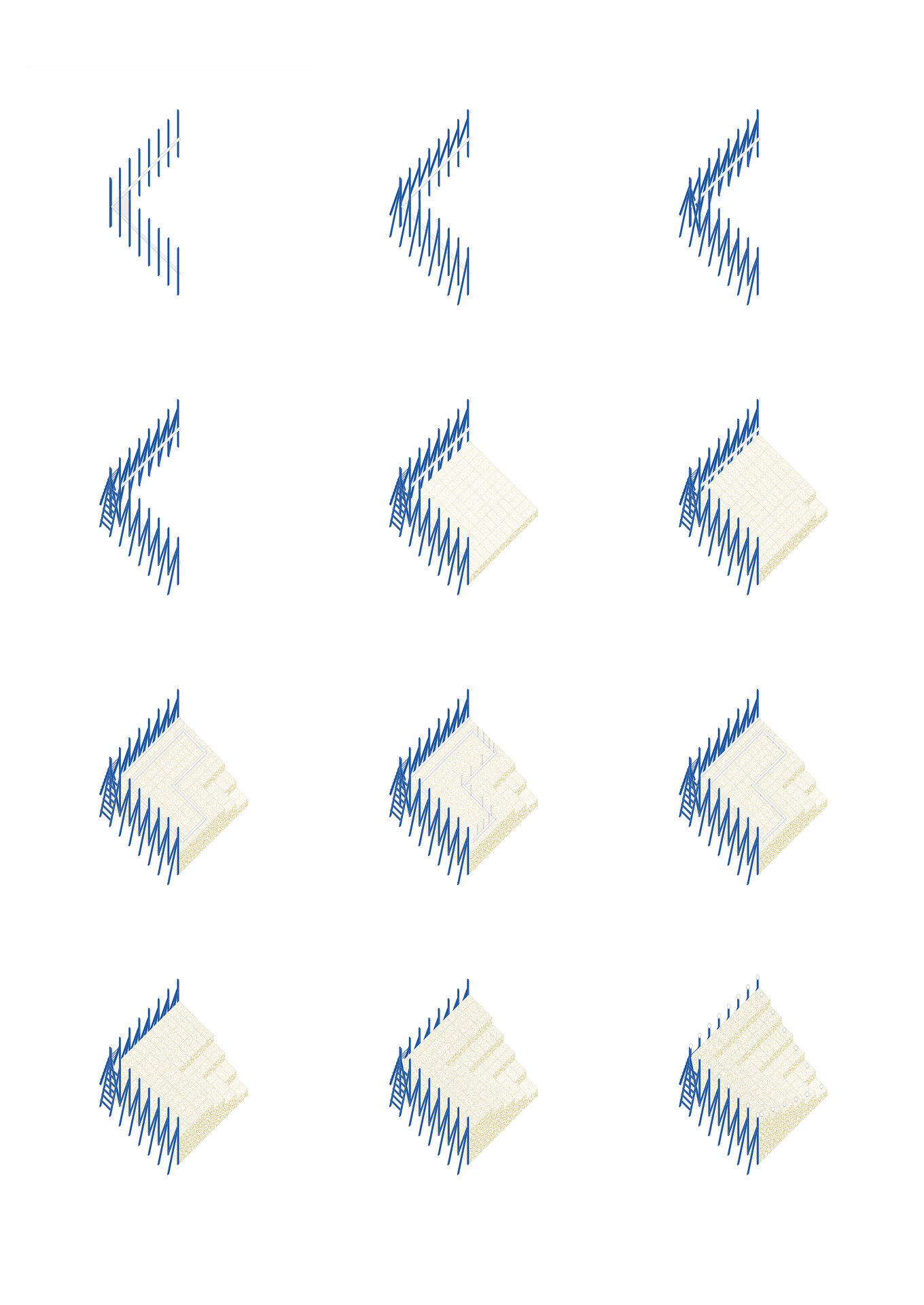 Cele două fețe acționează distinct: fațada opacă marchează pragul, izolarea. Este cea care rămâne intactă, tare, mediază „exteriorului” și protejează prin cele două laturi riguroase și ritmice ale sale, interiorul, configurat ca un amfiteatru către munte. Dubla orientare permite observarea fără exprimarea explicită, creând anticipare. O posibilă interacțiune este escaladarea directă a peretelui exterior prin una dintre cele două scări aflate în colț, iar a doua presupune urcarea pas cu pas a amfiteatrului de fân, pășind, în mod deliberat încet, cu pași mari.
