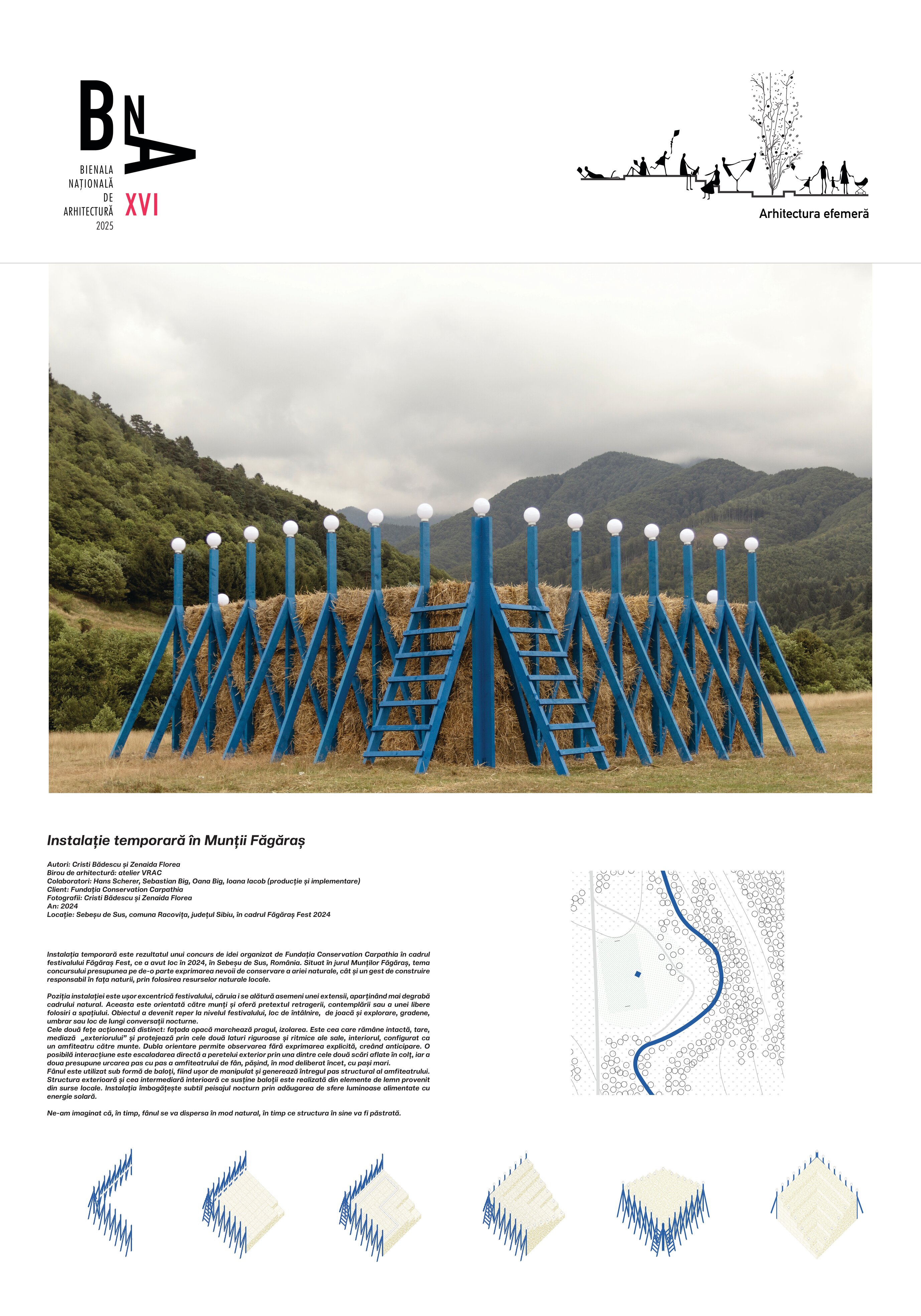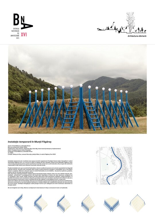 Instalația temporară este rezultatul unui concurs de idei organizat de Fundația Conservation Carpathia în cadrul festivalului Făgăraș Fest, ce a avut loc în 2024, în Sebeșu de Sus, România. Situat în jurul Munților Făgăraș, tema concursului presupunea pe de-o parte exprimarea nevoii de conservare a ariei naturale, cât și un gest de construire responsabil în fața naturii, prin folosirea resurselor naturale locale.