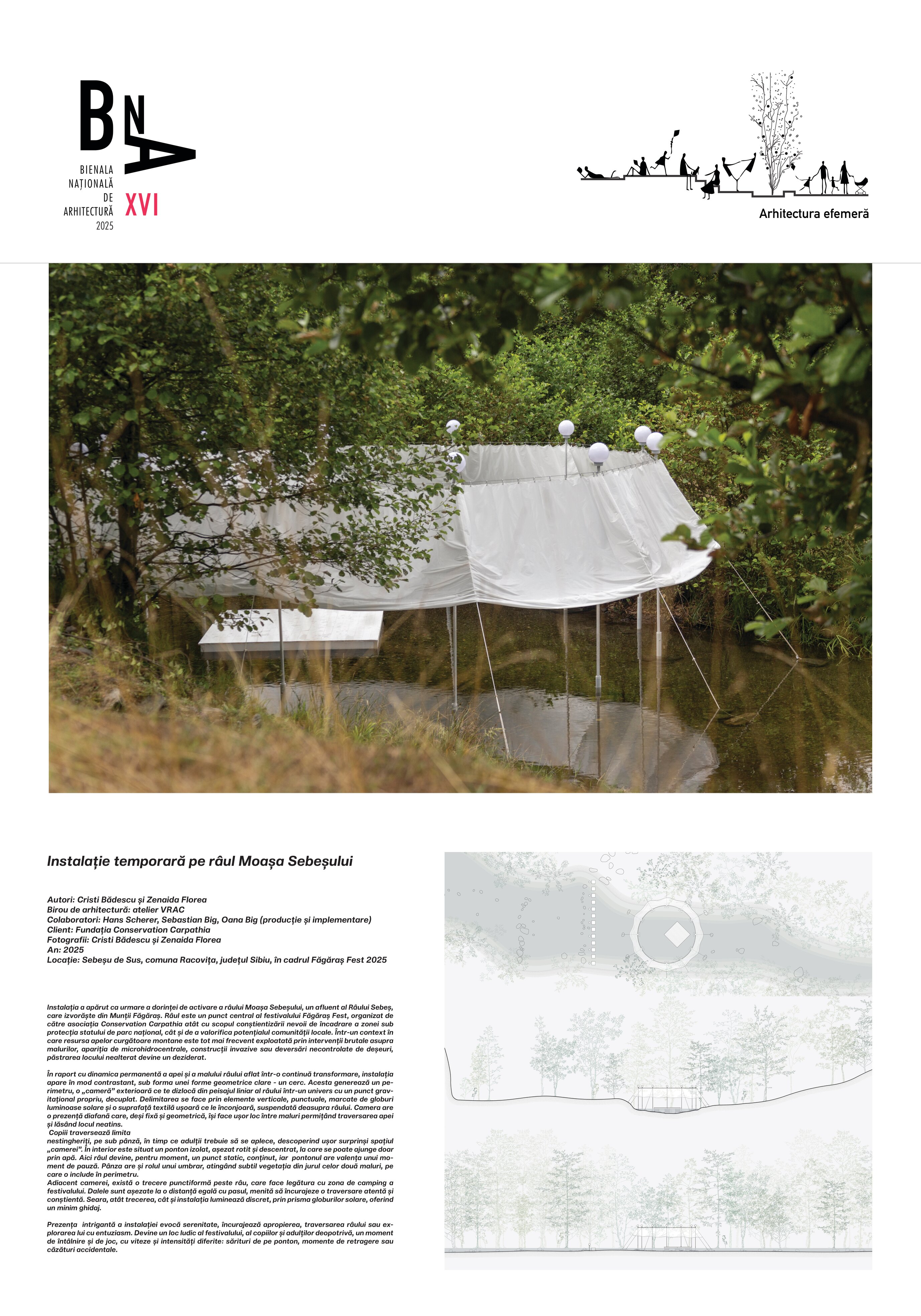 Prezența intrigantă a instalației evocă serenitate, încurajează apropierea, traversarea râului sau explorarea lui cu entuziasm. Devine un loc ludic al festivalului, al copiilor și adulților deopotrivă, un moment de întâlnire și de joc, cu viteze și intensități diferite: sărituri de pe ponton, momente de retragere sau căzături accidentale.