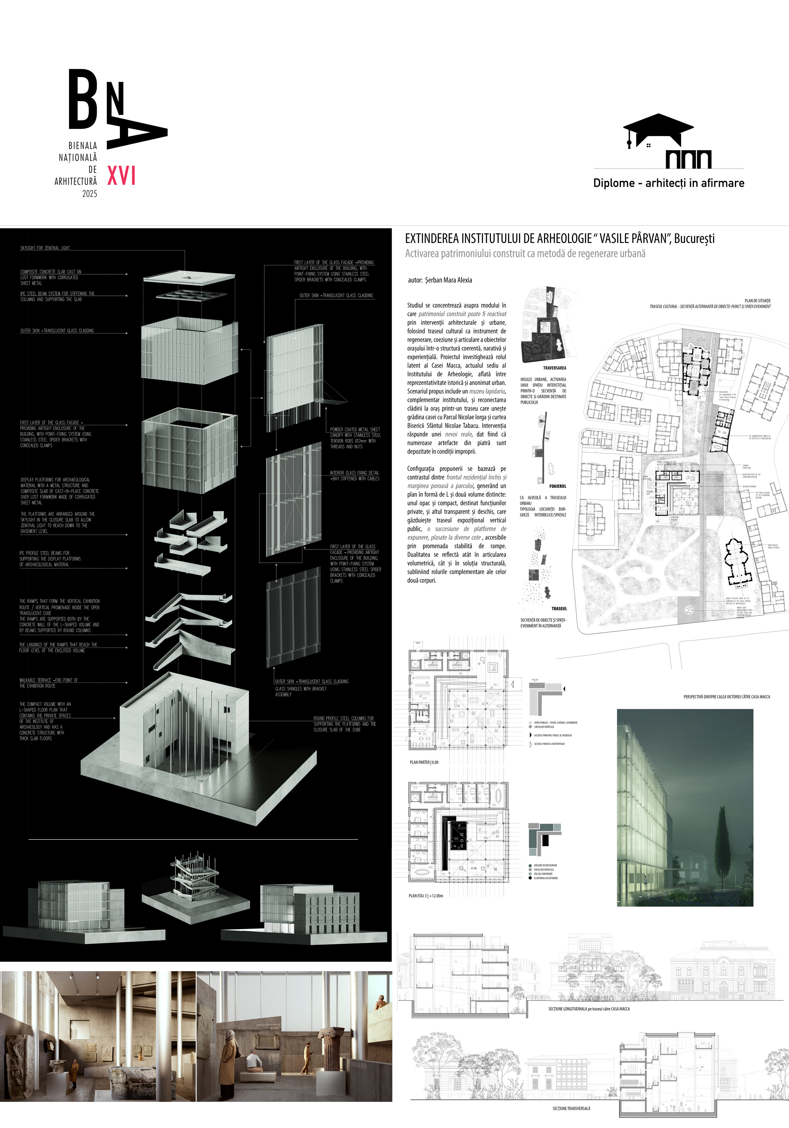 Studiul se concentrează asupra modului în care patrimoniul construit poate fi reactivat prin intervenții arhitecturale și urbane, utilizând traseul cultural ca instrument de regenerare și de articulare a obiectelor orașului într-o structură coerentă, narativă și experiențială. Se investighează rolul latent al Casei Macca, reședință aristocratică din secolul al XIX-lea, care, din 1931, adăpostește sediul Institutului de Arheologie „Vasile Pârvan”. Deși clădirea deține o valoare istorică semnificativă și ocupă o poziție urbană strategică, ea rămâne deconectată de traseul public. Mai mult, Casa nu dispune de spațiile necesare pentru laboratoare de cercetare, facilități de restaurare a materialului arheologic sau arhive pentru artefacte, iar numeroase piese litice antice (sarcofage, stele funerare, fragmente arhitecturale) nu beneficiază de condiții adecvate de depozitare sau expunere.