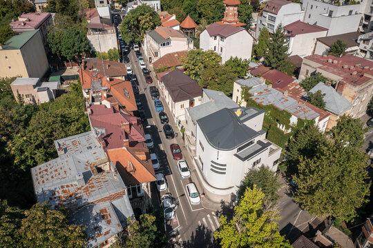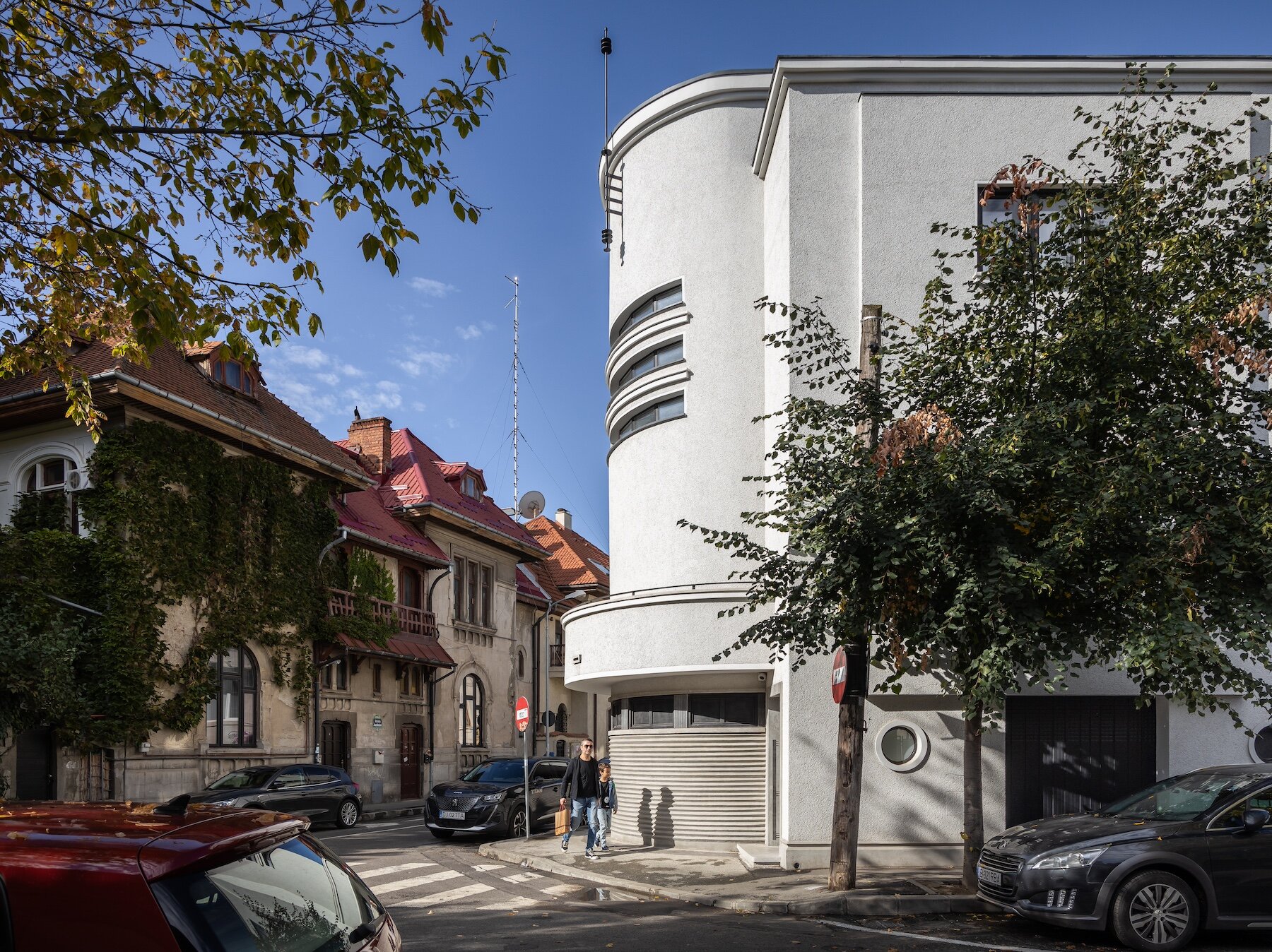 În anul 1932, arhitectul Sady Herivan a obținut autorizația de construire pentru o casă cu două etaje, amplasată pe colțul format de străzile Aurel Vlaicu și Iustinian. Clădirea, gândită într-un limbaj modernist cu accente art deco, se distinge printr-o siluetă elegantă și prin modul ingenios în care arhitectul a conceput relația dintre cele două fațade principale. Fiecare fațadă este tratată cu un set diferit de reguli compoziționale, rezultând două volume distincte care se articulează printr-un colț rotunjit. Această intersecție curbată marchează accesul principal în imobil și, în același timp, devine accentul vertical al ansamblului.