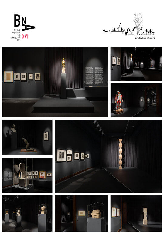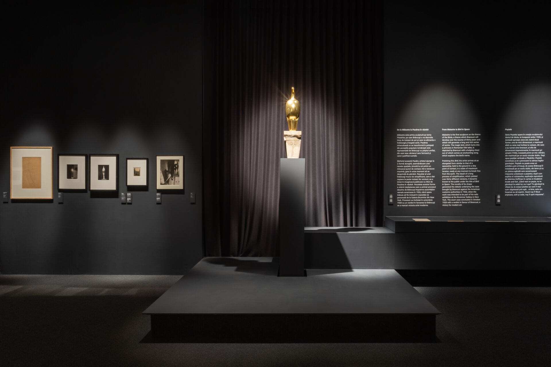 În acest cadru, conceptul arhitectural al expoziției a vizat în primul rând diminuarea acestor contraste și definirea unei ambianțe neutre, în care lucrările să fie cele care structurează experiența vizitatorului. Arhitectura sălilor, cu dimensiunile lor generoase, cu succesiunea de legături între spații, cu prezența puternică a ușilor și a ferestrelor, precum și cu nișele ce păstrează urmele circulațiilor zidite în timp, a impus o abordare bazată pe simplificare. Aceasta nu a urmărit ștergerea memoriei spațiului, ci crearea unui context coerent în care operele lui Brâncuși să poată fi receptate cu intensitate maximă.