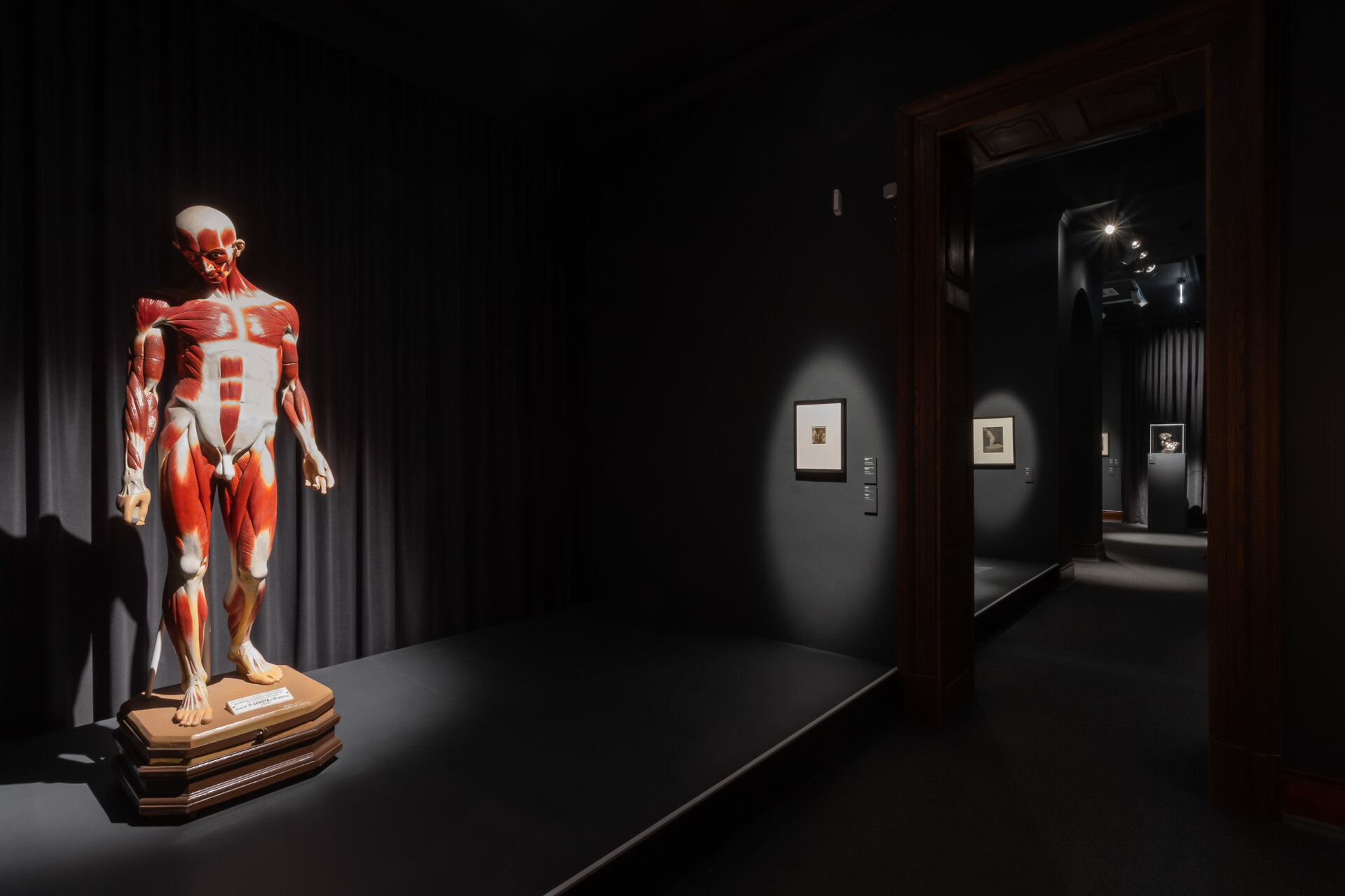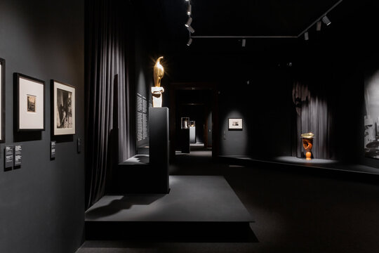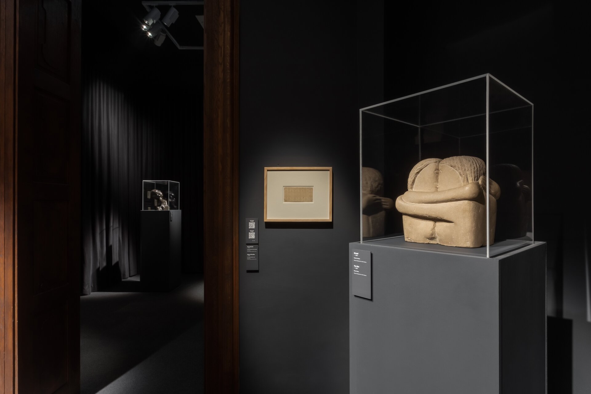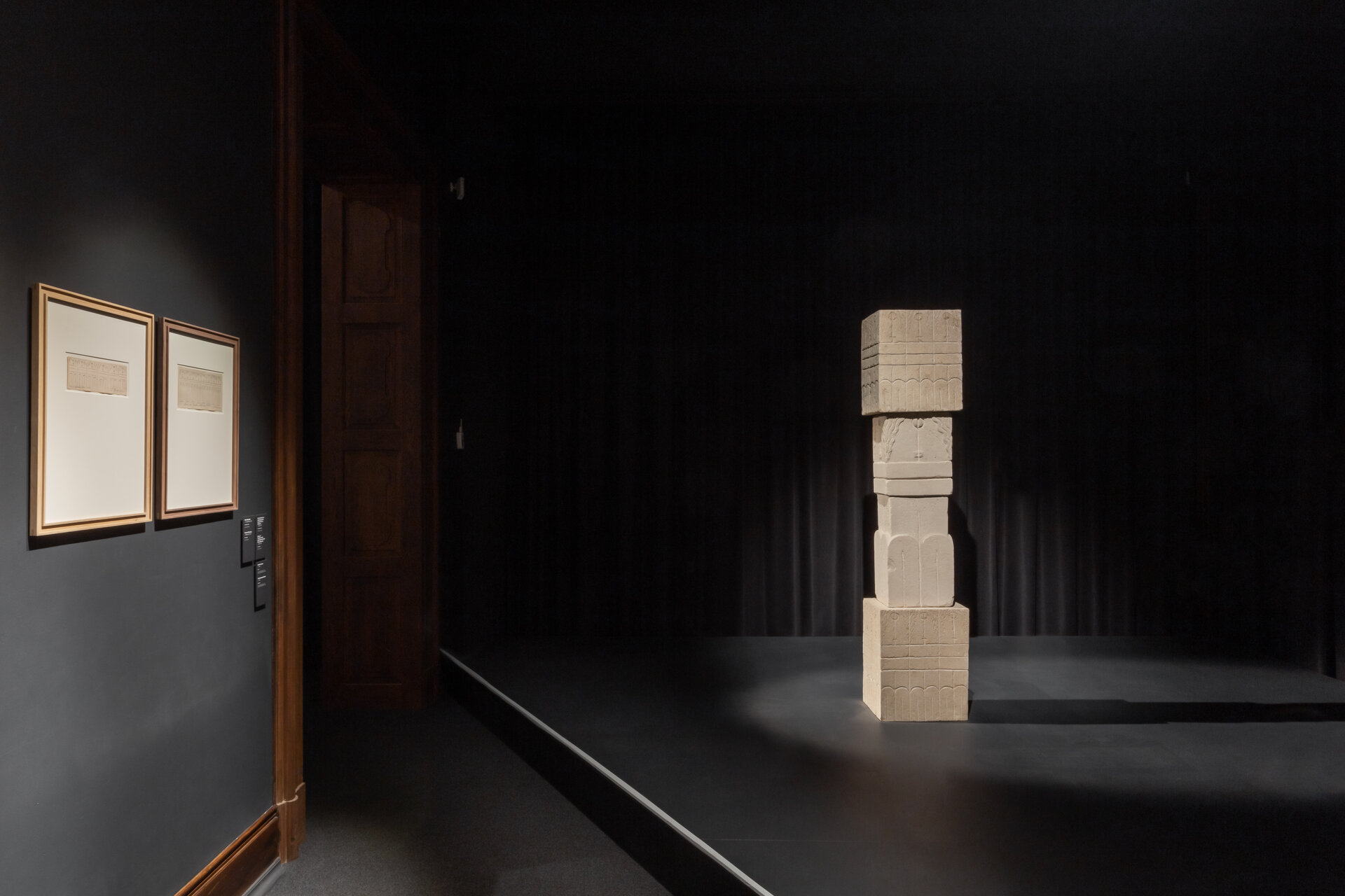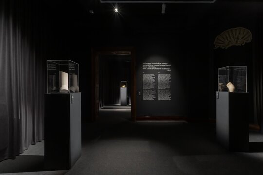 Pentru a transpune această viziune, primul pas a fost eliminarea tuturor elementelor vizuale secundare și transformarea sălilor într-un spațiu omogen, în care prezența arhitecturii existente să fie estompată. Spre deosebire de tradiționalul white cube, care oferă neutralitate prin albul pereților, aici s-a optat pentru o soluție radical diferită: vopsirea integrală a spațiului în negru. Această opțiune a absorbit lumina, a șters diferențele dintre suprafețe și a redus la minimum interferențele vizuale, construind un fundal compact, unificat.