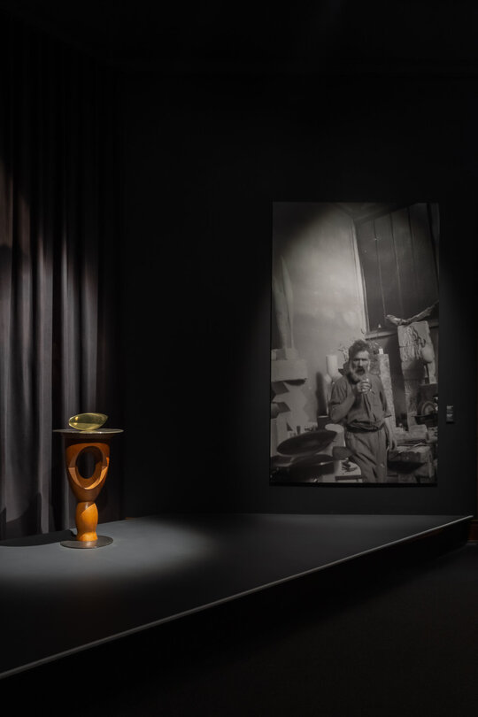 Decizia abordării arhitecturale, luată împreună cu cuatoarea Doina Lemny, expert Brâncuși din partea Centrului Pompidou, a fost aceea de a expune lucrările într-o formulă atipică, diferită de prezentările tradiționale ale sculptorului. Arhitectura expoziției s-a inspirat din fotografiile realizate chiar de Brâncuși, care surprind atmosfera atelierului său parizian. Artistul, care a învățat tehnica fotografiei de la Man Ray, folosea imaginea ca pe un instrument artistic complementar sculpturii, încercând să redea esența volumelor și să transmită emoția direct către privitor. Pentru a obține acest efect, Brâncuși prefera să excludă lumina naturală și încerca să controleze fiecare sursă de iluminat, eliminând elementele perturbatoare și concentrând atenția exclusiv asupra sculpturilor.