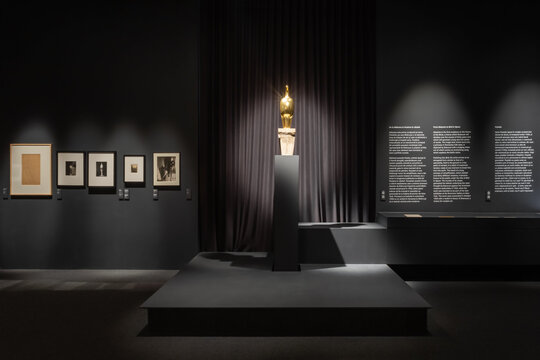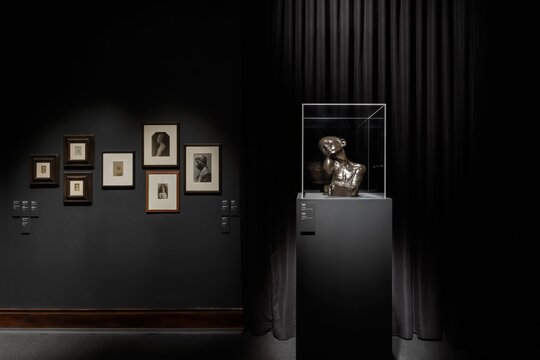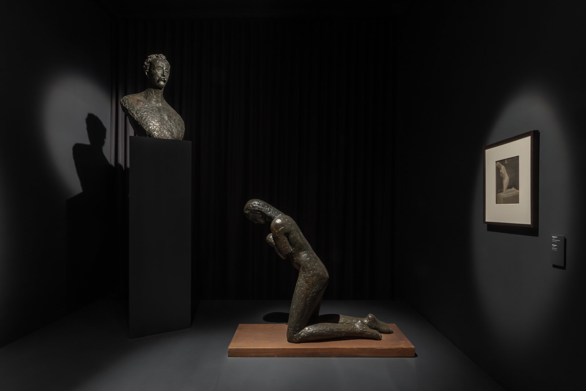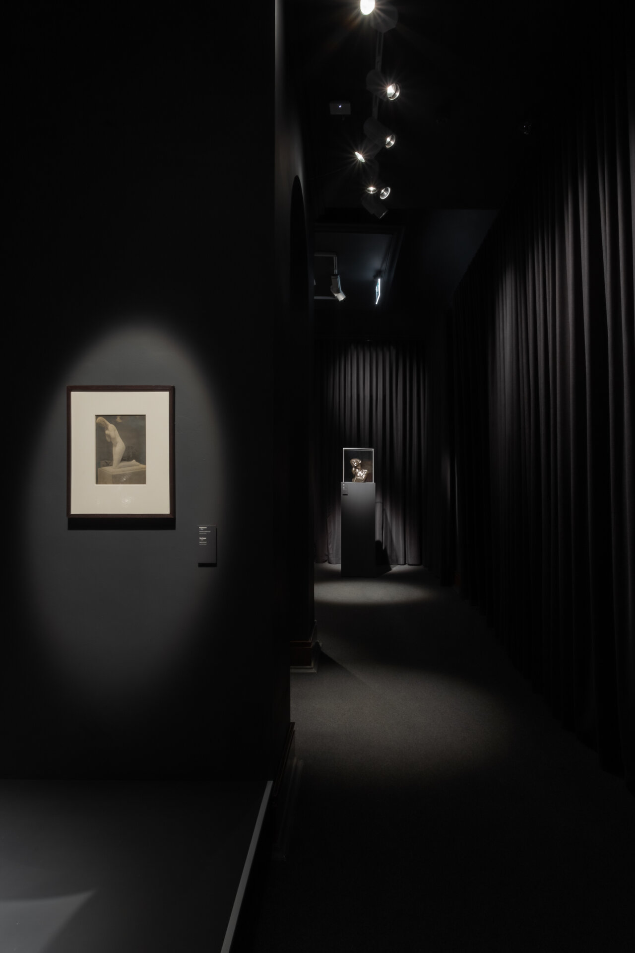 Iluminatul a fost, la rândul său, tratat cu rigurozitate. În locul unei lumini generale, difuze, fiecare lucrare a beneficiat de o sursă de lumină proprie, direcționată precis. Acest tip de iluminare punctuală a creat în jurul fiecărei sculpturi o aură proprie, izolând-o vizual și emoțional. Vizitatorul era invitat să intre într-un spațiu intim de contemplare, în care restul sălii se estompa în întuneric. Această strategie a favorizat o legătură directă și intensă între privitor și operă, aproape ca o întâlnire personală, în care nimic nu mai distrage atenția.