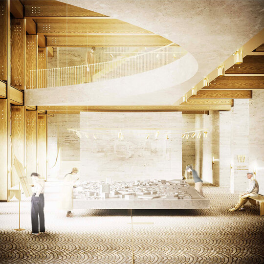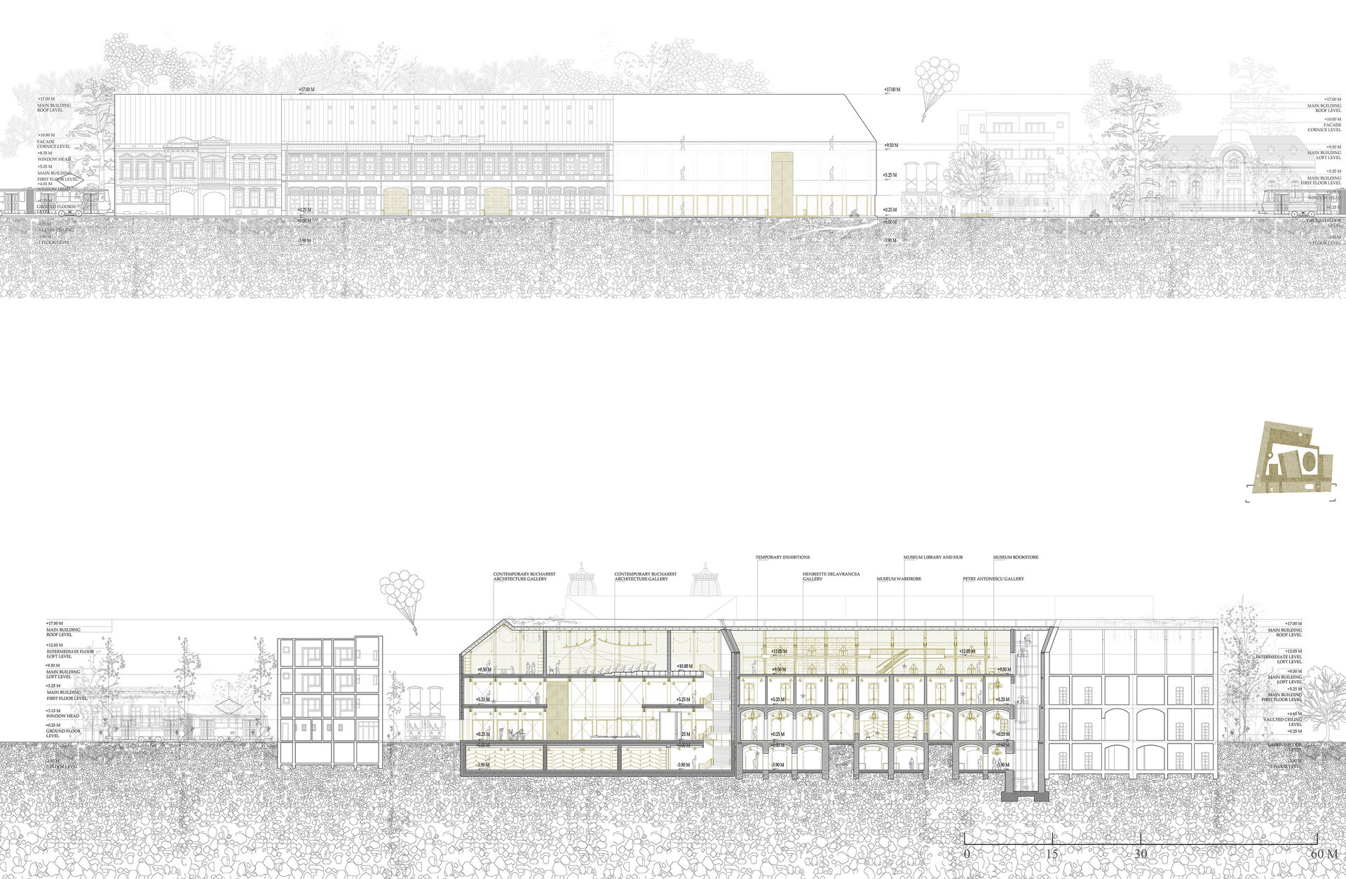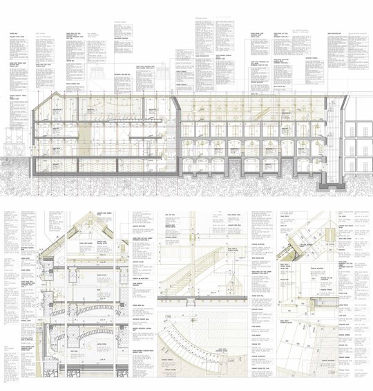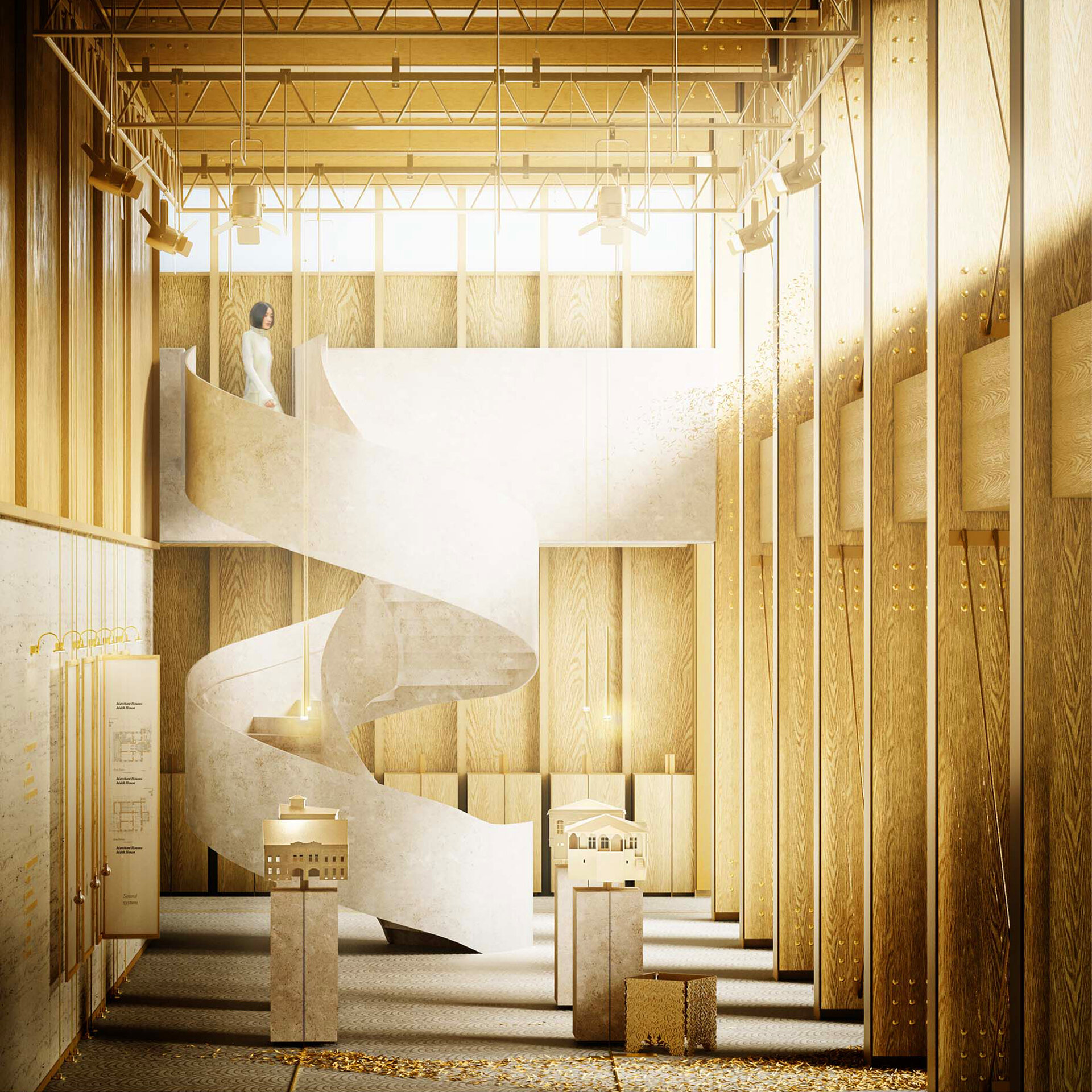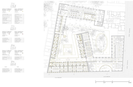 Forma fragmentată devine o curte interioară permeabilă cu țesutul prin extinderile reversibile inspirate din formele compacte ale caravanserailor și hanurilor. Noile structuri folosesc un sistem hibrid de lemn lamelar și coloane de oțel, pentru a onora influențele tradiționale ale sitului. Prin reimaginarea sitului, proiectul transformă Hanul Solacolu într-un centru cultural și educațional vibrant, care împletește conservarea patrimoniului cu soluțiile arhitecturii contemporane. Acesta servește ca un model durabil și estetic pentru revitalizarea ruinelor, nu ca artefact static, ci ca o infrastructură socială dinamică, concepută pentru nevoile actuale ale comunității.