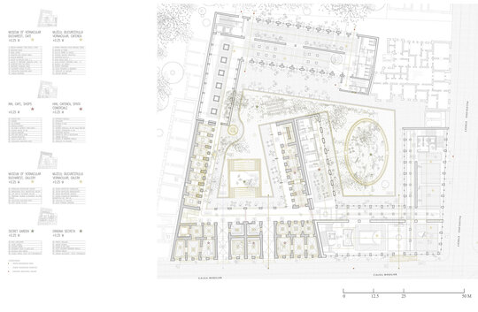 Mărturia ascunsă a Căii Moșilor, istorică și culturală deopotrivă, constă în juxtapunerea de straturi, a vieții de târg și popas, a locului încărcat cu pilde și povești. Suprapunerile istorice definesc caracterul unui palimpsest, fragmentat de multiple disfuncții la care propunerea răspunde: lipsa spațiului pietonal, de exemplu, este rezolvată prin pietonalizarea arterei, cu prezervarea unei linii de tramvai turistice. Spații abandonate unde astăzi se află parcaje ilegale pot fi reactivate în potențarea unui traseu cultural.