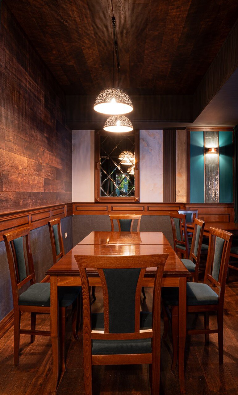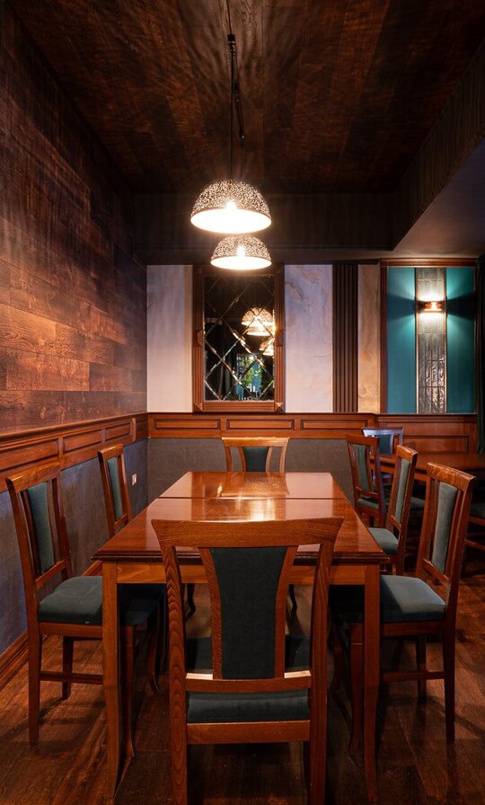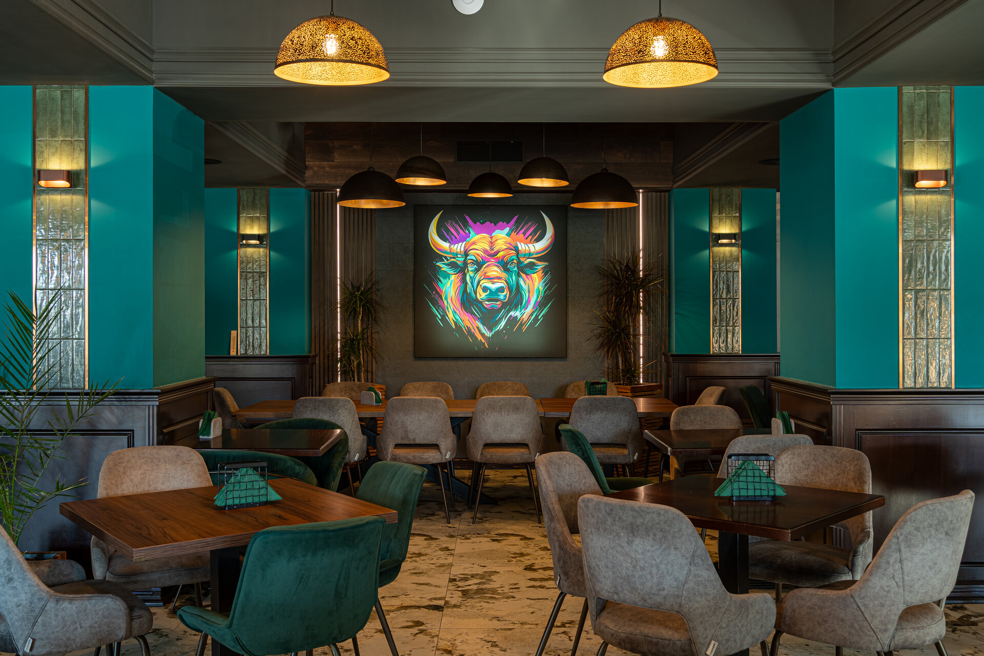 De asemenea, panourile din lemn masiv au fost folosite ca elemente decorative care conferă restaurantului un aer somptuos și elegant. Aceste detalii din lemn au fost integrate cu intenția de a adăuga un strat suplimentar de textură, contribuind la crearea unui ambient cald, dar și sofisticat. Fiecare detaliu, de la finisaje până la mobilier, a fost ales pentru a exprima personalitatea complexă a spațiului și a satisfice nevoile funcționale ale unui restaurant de carne de vită.