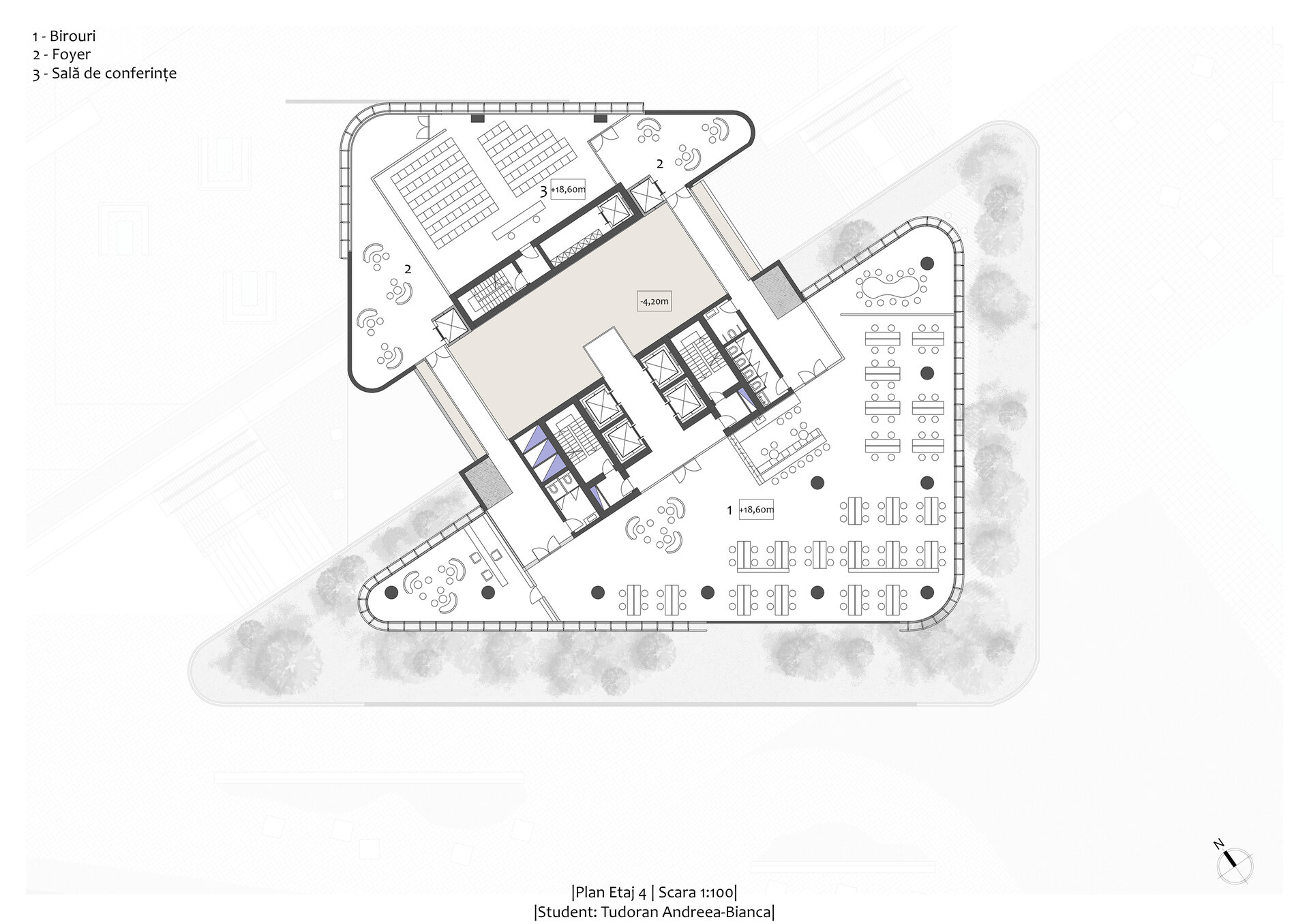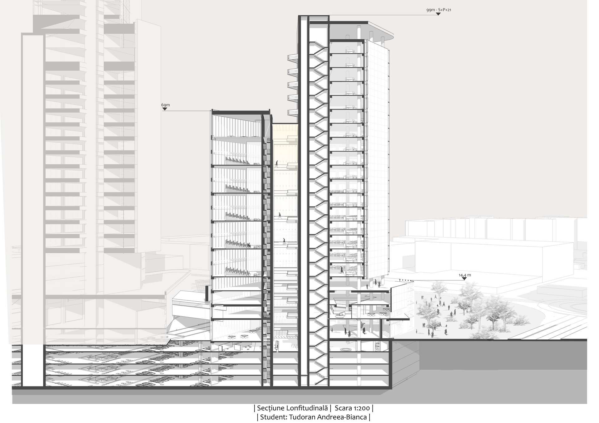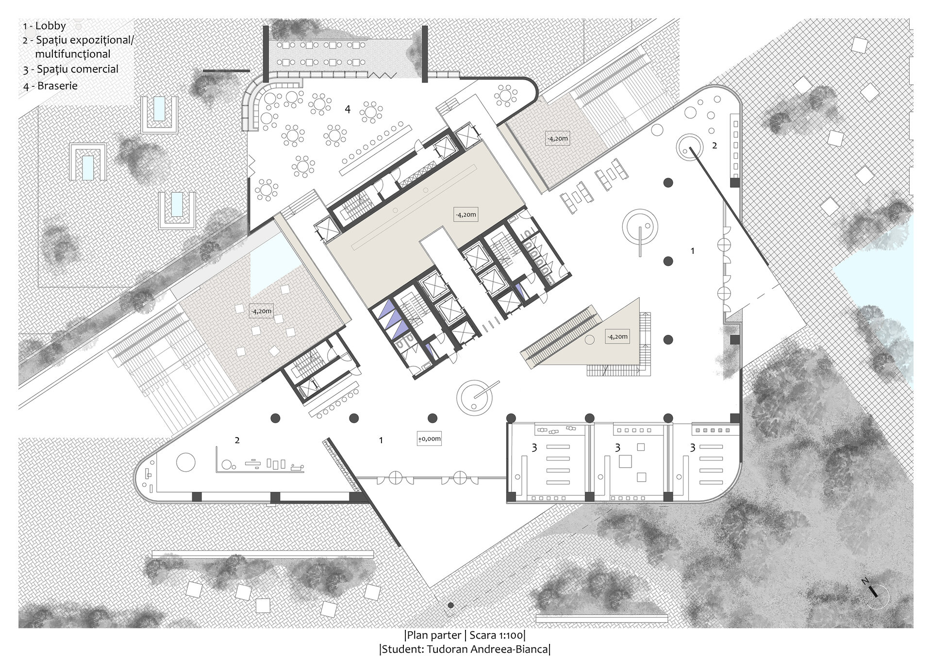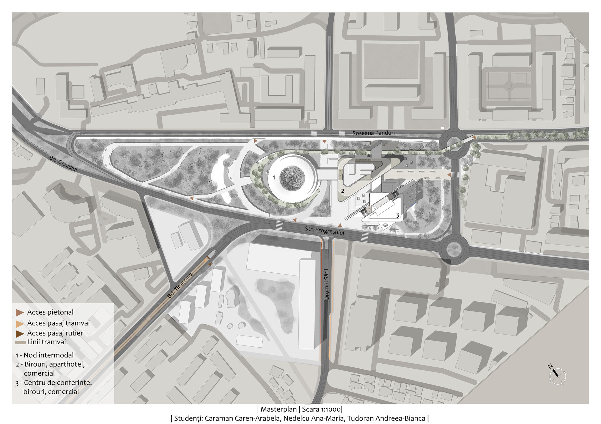 Concluzionând, ansamblul propus reinterpretează spațiul urban prin integrarea armonioasă a clădirilor multifuncționale și a zonelor verzi, creând un pol urban dinamic.