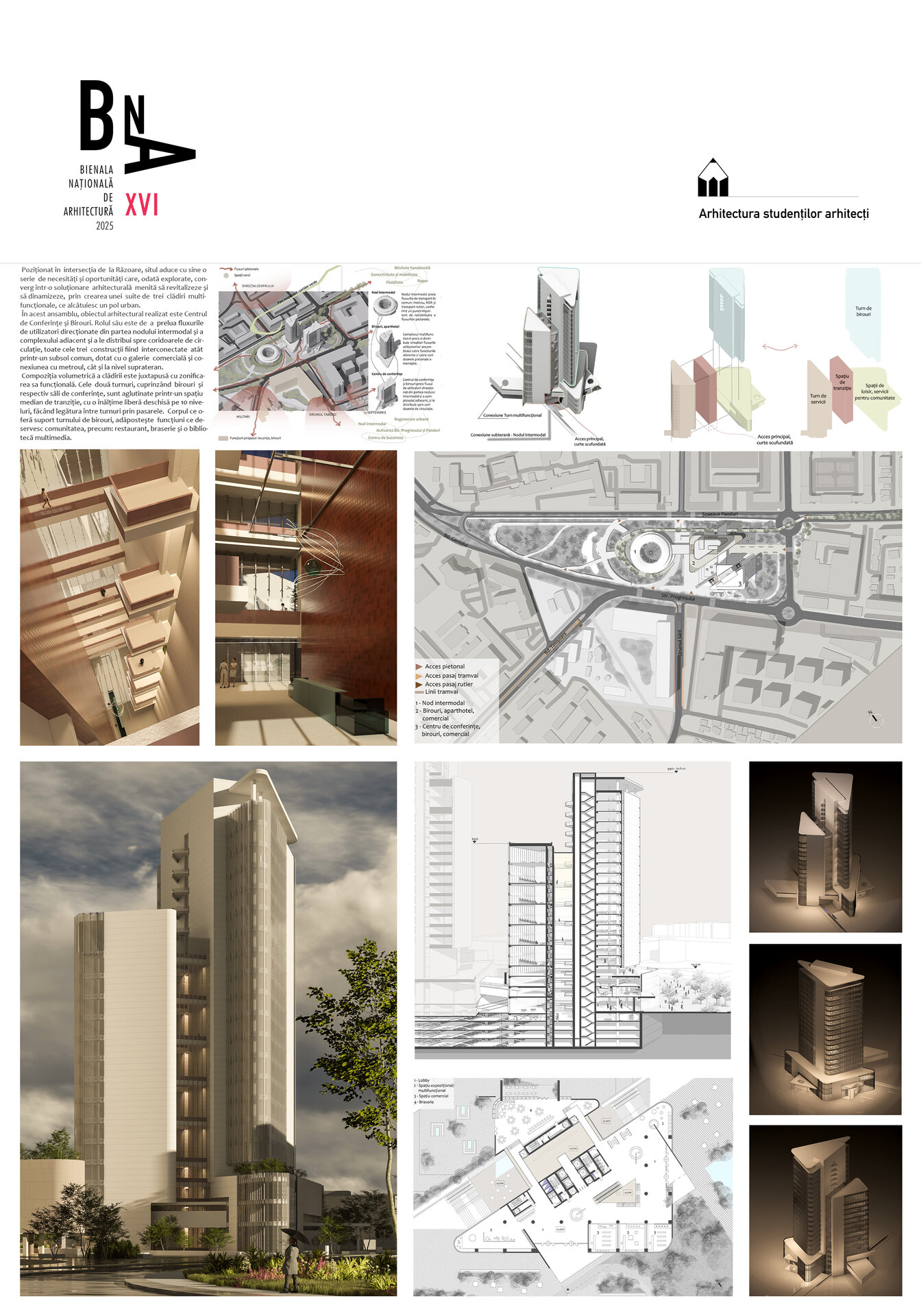 Poziționat în intersecția de la Răzoare, situl aduce cu sine o serie de necesități și oportunități. Acestea, odată explorate, converg într-o soluționare arhitecturală menită să revitalizeze și să dinamizeze, prin crearea unei suite de trei clădiri multifuncționale, anume Nodul Intermodal, Clădirea de Birouri și Aparthotel și Centrul de Afaceri și Conferințe, alcătuind un pol urban.