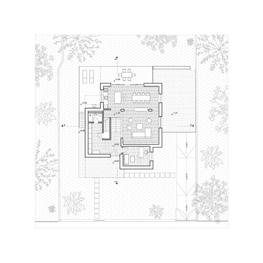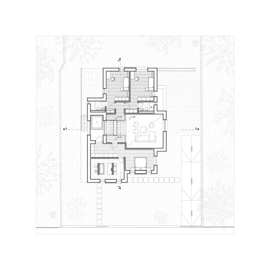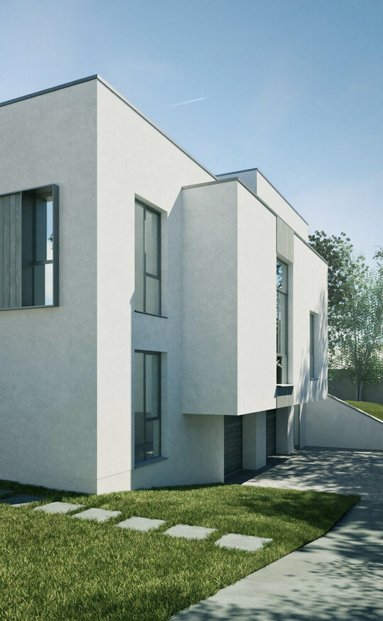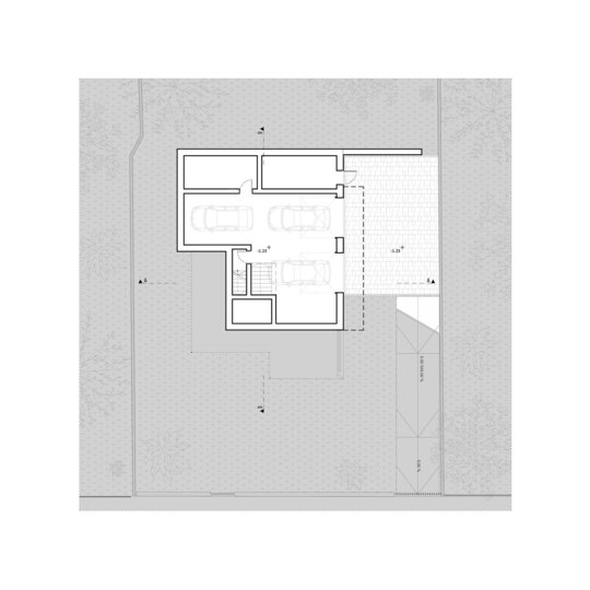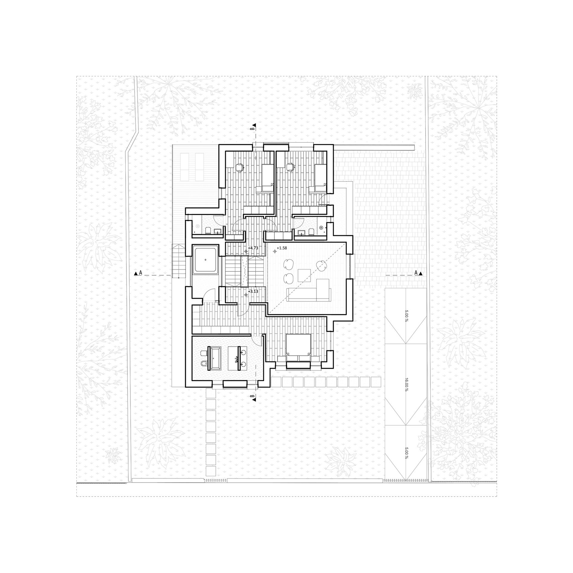 Subsolul adăpostește parcajul și spațiile tehnice, permițând parterului să rămână complet dedicat vieții de familie. Terasele și grădina extind interiorul spre exterior și creează o continuitate firească între locuit și natură.